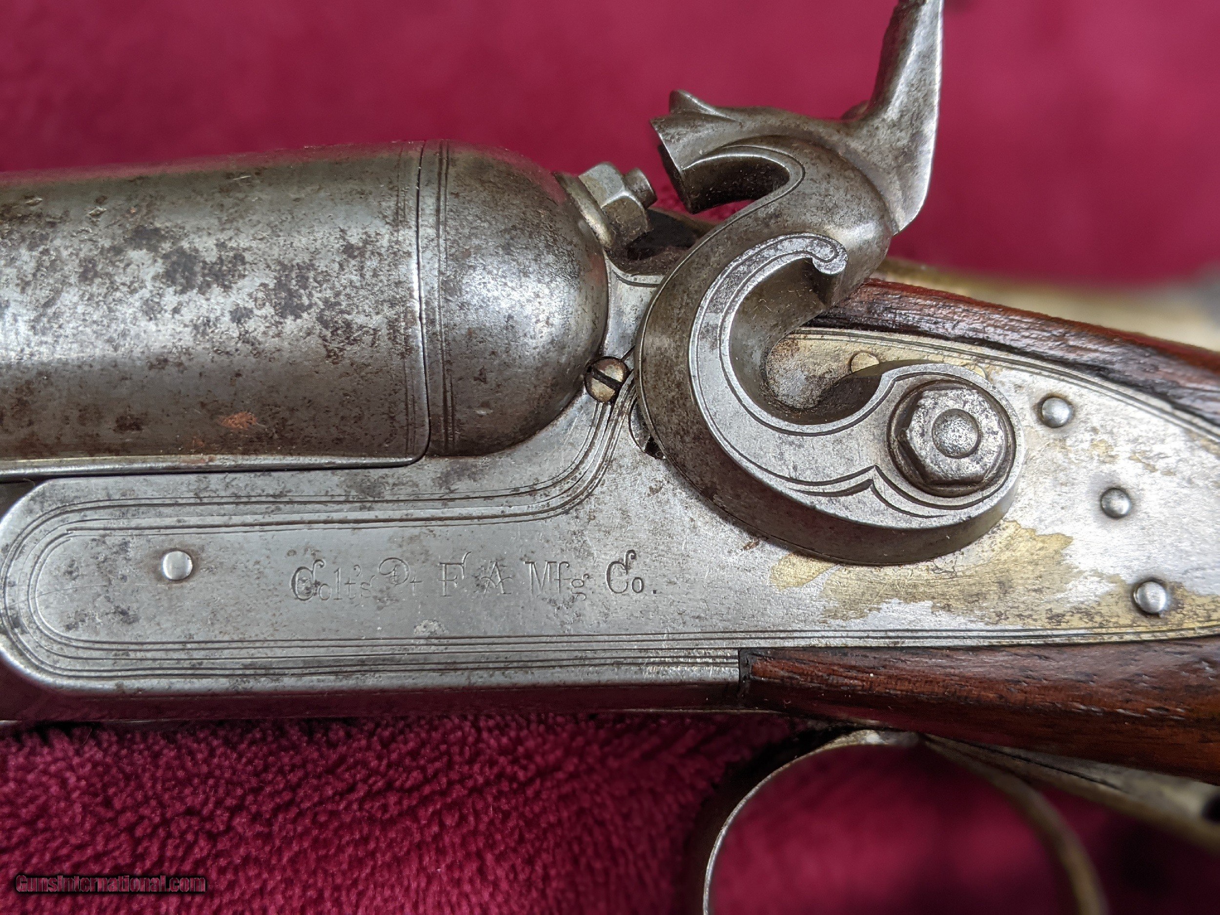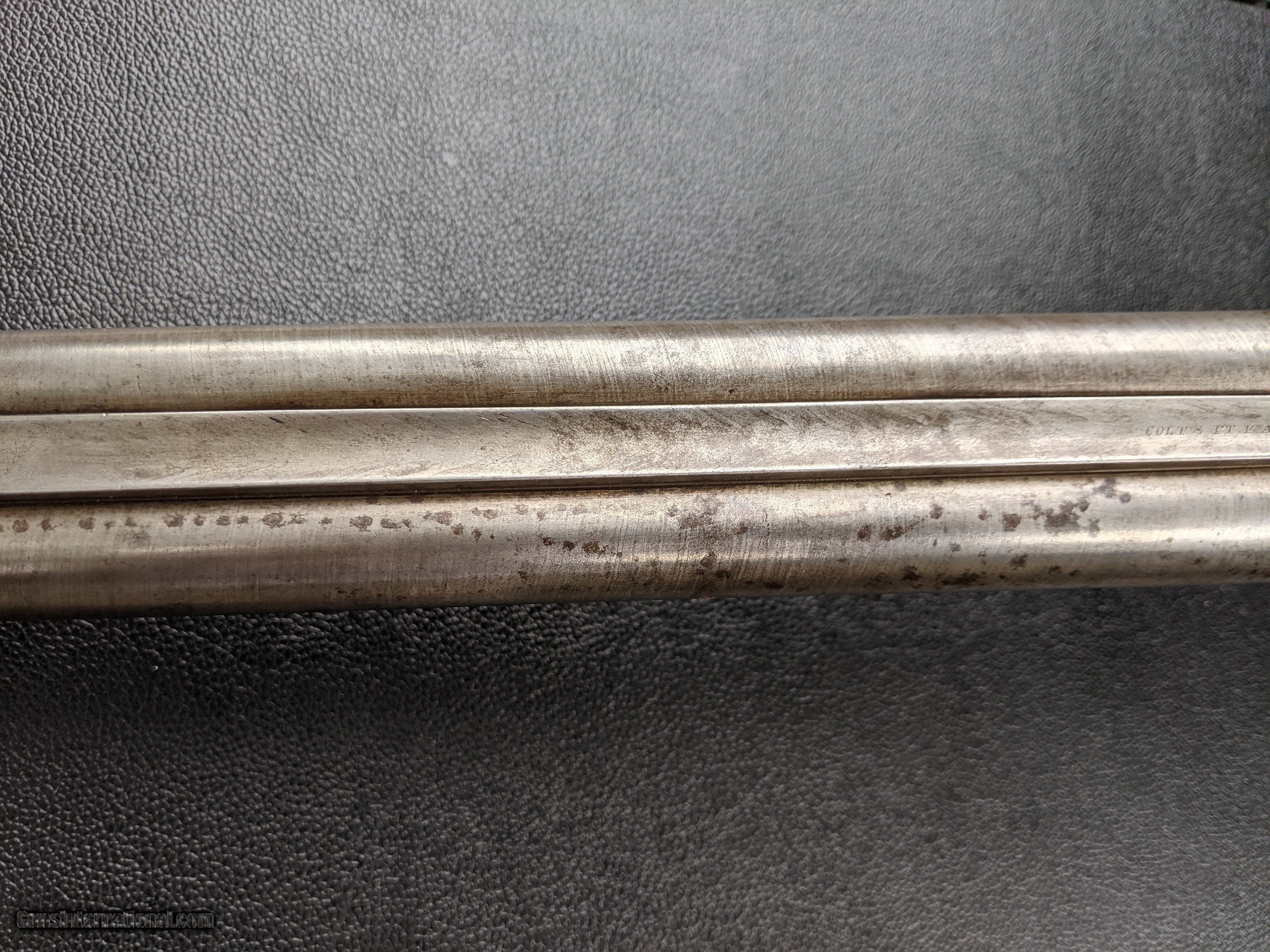 Description: REDUCED PRICE! WILL ACCEPT OFFERS. For sale is a handsome Colt 1878 side by side hammer shotgun. Matching serial #2061, date of manufacture is 1879. 12 gauge, barrel length is 27 11/16". Overall condition is fair but with good mechanics. Some oxidation on the barrels but with a decent percentage of twist still visible. Photos were taken in daylight for the most detail to give an honest depiction of this shotgun. Please ask questions if you're interested in this classic Colt shotgun, and thanks for looking. SOLD Antique: Yes Shotgun Gauge: 12 Gauge Manufacturer: Colt Model: 1878 Serial Number: 2061 Barrel Length: 27 11/16 Condition: Fair Metal Condition: Fair Wood Condition: Fair Bore Condition: Good Action: Very Good |