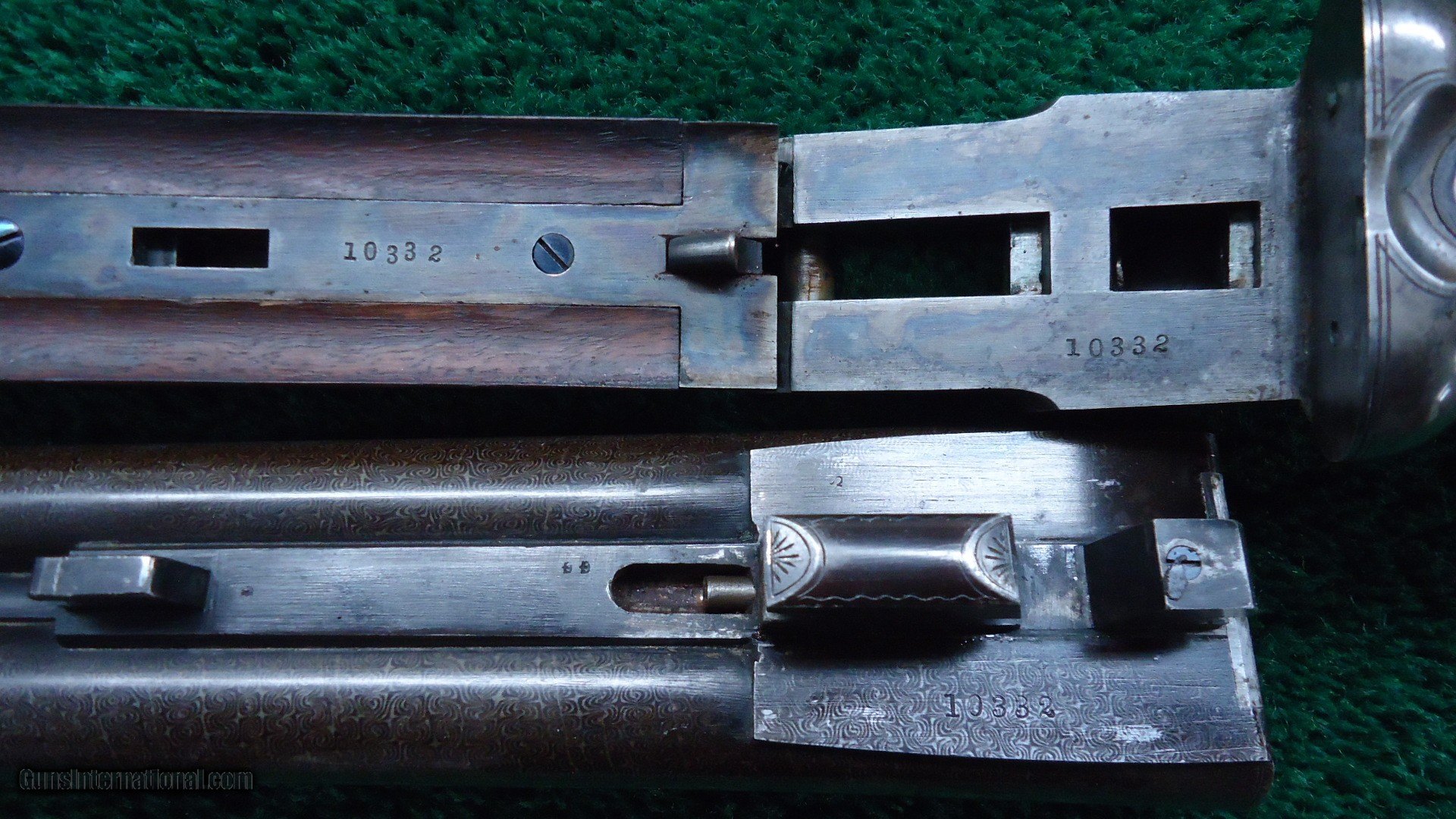 Description: Gun is in excellent condition with LOP about 13-3/4 inches. Barrels are 30 inches with excellent bores. Gun retains about 75-80% Damascus pattern. It looks as if someone put shellac over the barrels to bring out the color. Receiver has about 75% original case color. Vivid in protected areas and thinning on the bottom. Wood is in fine condition with sharp checkering. Nice original gun except where noted. Leroy Merz Antique Firearms specializes in antique and vintage Winchesters and other fine American firearms. Since 1965 Mr. Merz has taken part in the world of firearms and has been a contributor to many well known reference books. We have hundreds of additional guns in every price range at our home online. Search for Merz Antiques in google. SOLD Antique: Yes Shotgun Gauge: 12 Gauge |