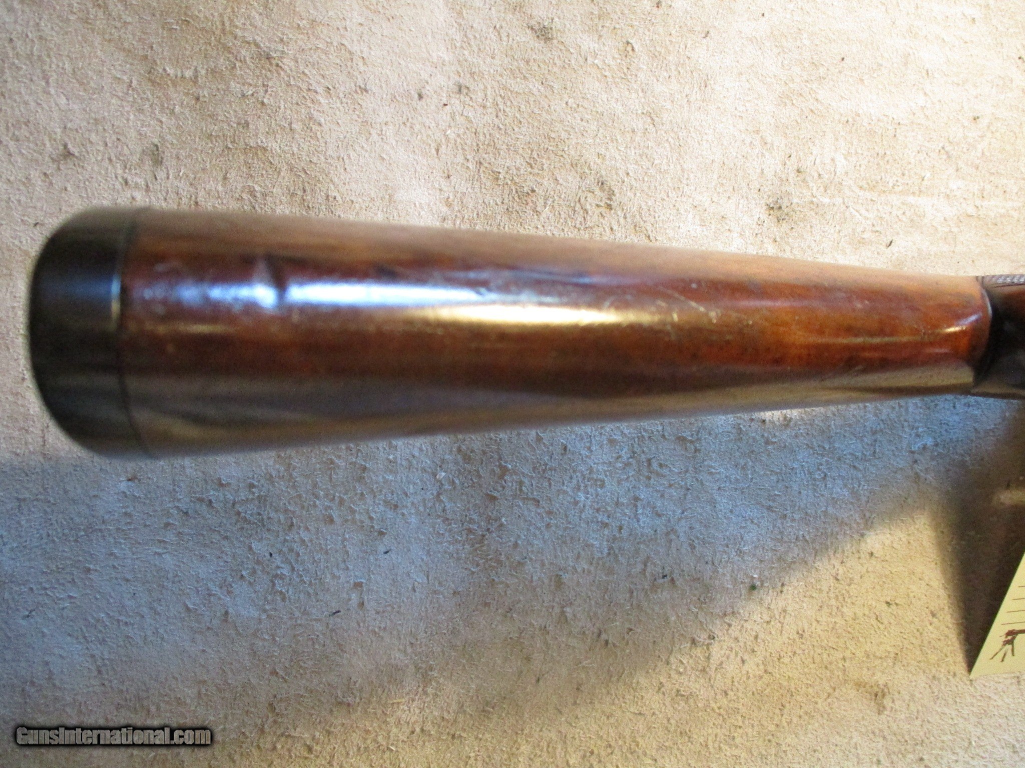Description: Colt 1883 side by side, 12ga, 30" barrels. Double triggers, damascus barrels with GREAT patterns! Bores are also in great shape. Tight and on face. SN is 4775, all numbers match. Made in 1890. Factory finish on both wood and metal, factory butt plate. Hard to find one this nice! We will trade for silver and gold. We accept personal check, any certified funds, Venmo or Zelle. We can also take your credit card, +3%. Email me if you would like these pictures sent to you, they will come through bigger and better than on the listing page here. We do offer Layaway. Our standard terms are 25% down, 90 days. Initial deposit is not refundable. Email me with any questions. Please check your local laws to confirm it is legal to own in your state! Buyer pays $50 shipping and insurance to your FFL in the lower 48. AK, HI or PR is extra. I will ship to California, as long as it is legal, NO PROBLEM! All my guns come with a non-firing, 3 day unconditional return privilege, from the day UPS delivers to your dealer. Buyer pays shipping both ways if the gun comes back. Please make sure to make it to your FFL to inspect within the 3 days. If your gun doesn't have a box or case we can add a new hard case by PLANO for secure shipping for $30 if the buyer wishes (highly recommended, cheap insurance, really helps keep the UPS monster from eating my guns!). I am a licensed FFL, and will include a copy of my FFL with the gun for your dealer’s records. I will ship to a C&R if the gun is eligible. I will ship to California, but you need to confirm the gun is legal where you are, California or other. WE BUY AND CONSIGN GUNS AND GUN COLLECTIONS! We will travel to pick up collections! I am always looking for good clean, old original Winchesters to buy, consign, or trade, especially Pre '64's model 70's and model 54's. WE ALSO TRADE FOR CLASSIC CARS AND TRUCKS! We also trade for gold and silver. SOLD Shotgun Gauge: 12 Gauge Manufacturer: Colt Model: 1883 Barrel Length: 30 Condition: Used |
