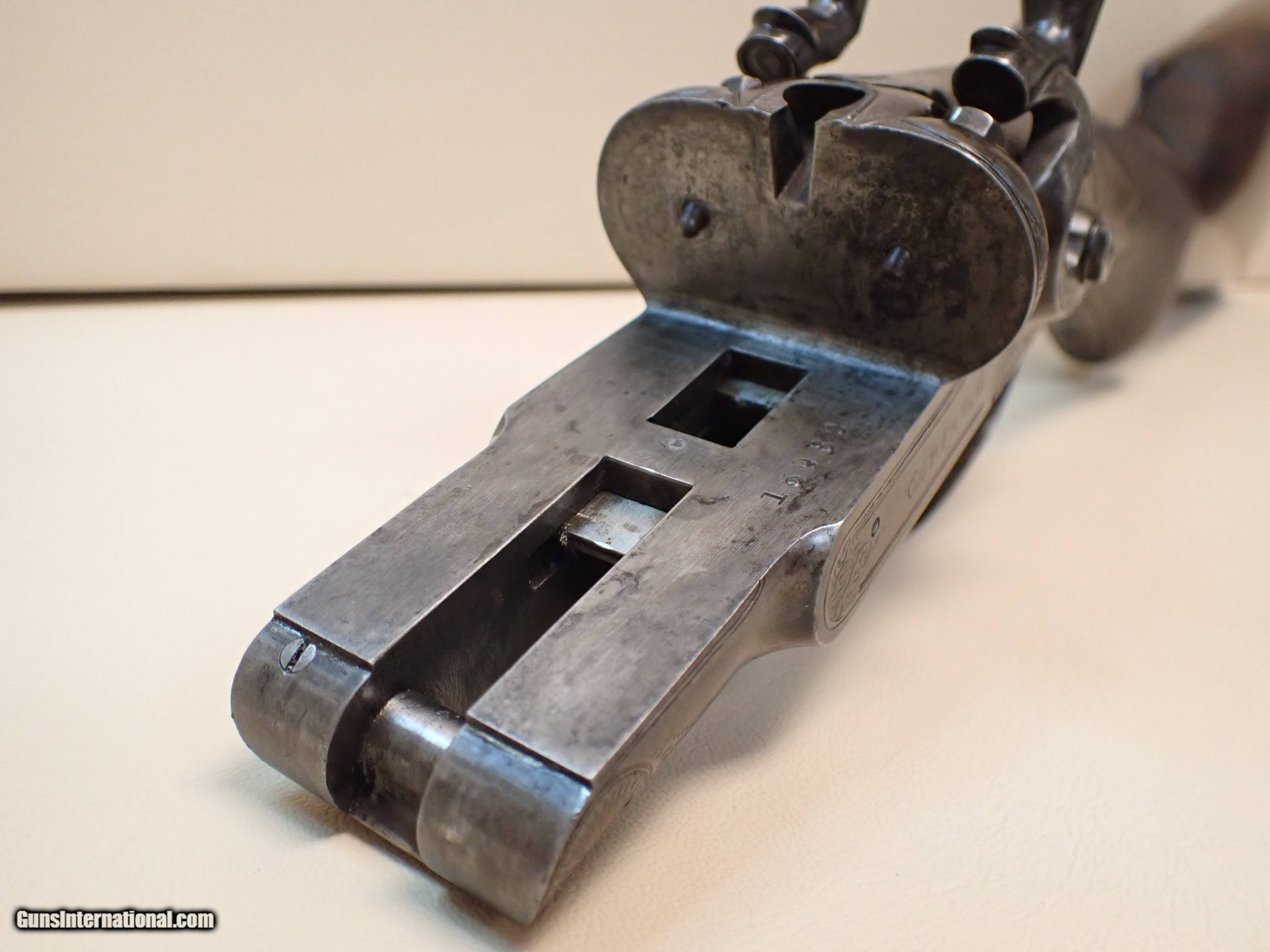 Description: ***SOLD*** Colt Model 1878 Hammer Shotgun 12ga side-by-side, dated to 1883. This shotgun features the timeless classic workmanship of Colt craftsman, with finely cut checkering on the walnut funriture, which appears to have its unaltered original finish, along with a silver cartouche on the underside of the stock. The metal hardware has lost most of its finish and patina'd a bit over the years, and there are a few small areas where a wire wheel may have been used, particularly on the left barrel by the receiver, and on one of the barrels locking lugs. Otherwise, the receiver, lock assemblies are sporting a beautiful floral engraving pattern, along with the outer surfaces of the trigger guard and forend iron. The shotgun is in excellent working order, with loud ringing barrels, a rock-solid barrel-to-receiver fit, and very crisp and solid hammer locking mechanisms. The bores look to be in good shape with a few spots of minor pitting in areas of the surface, which is to be expected with a gun of this vintage. Please refer to the photos to further assess the condition of the shotgun. Chokes modified and improved modified, 14" LOP. A must-have for a lover of old Colts, or antique guns in general! No FFL required. SOLD Antique: Yes Manufacturer: Colt Model: 1878 Serial Number: 15980 Caliber Info: 12 |