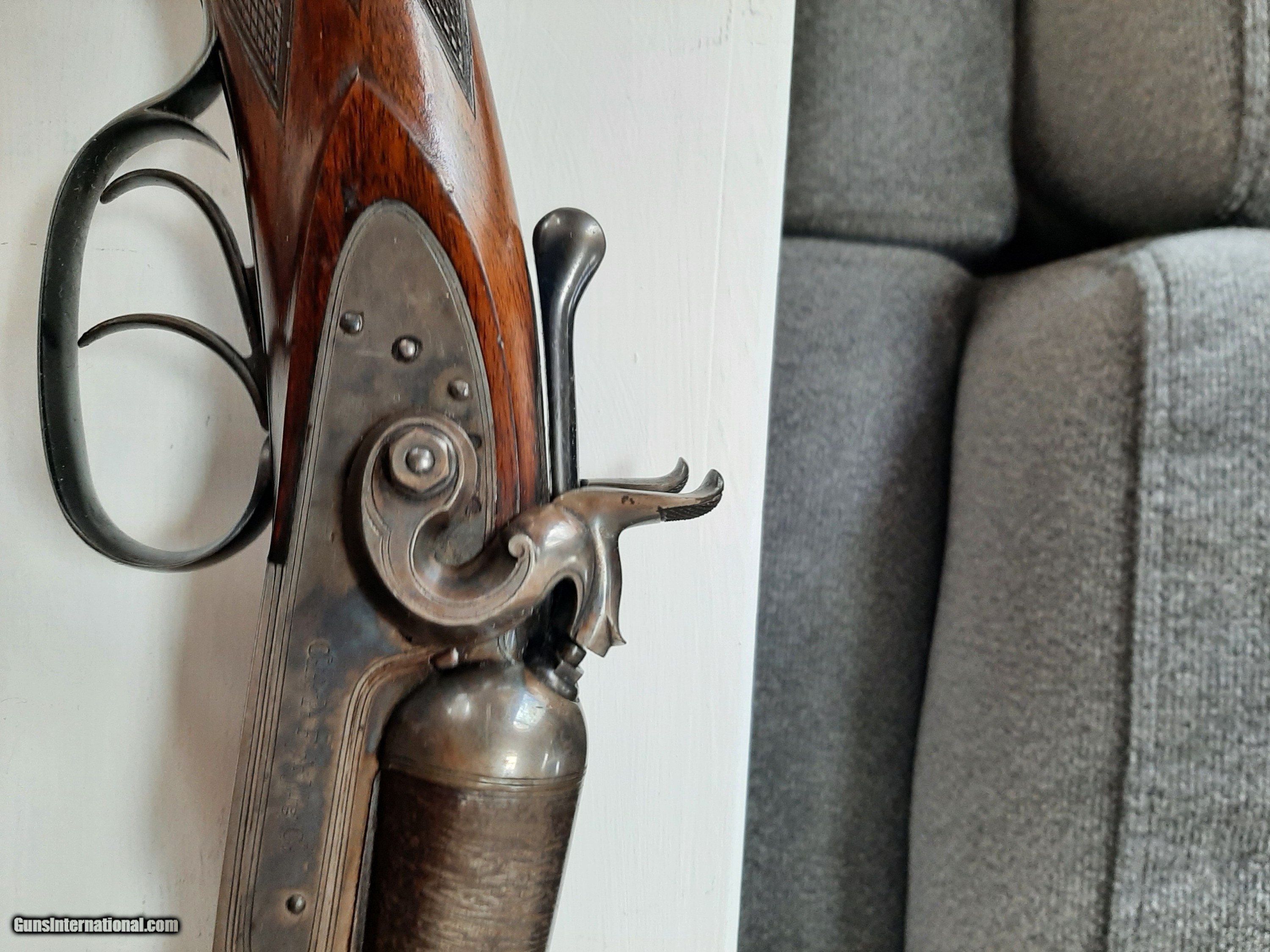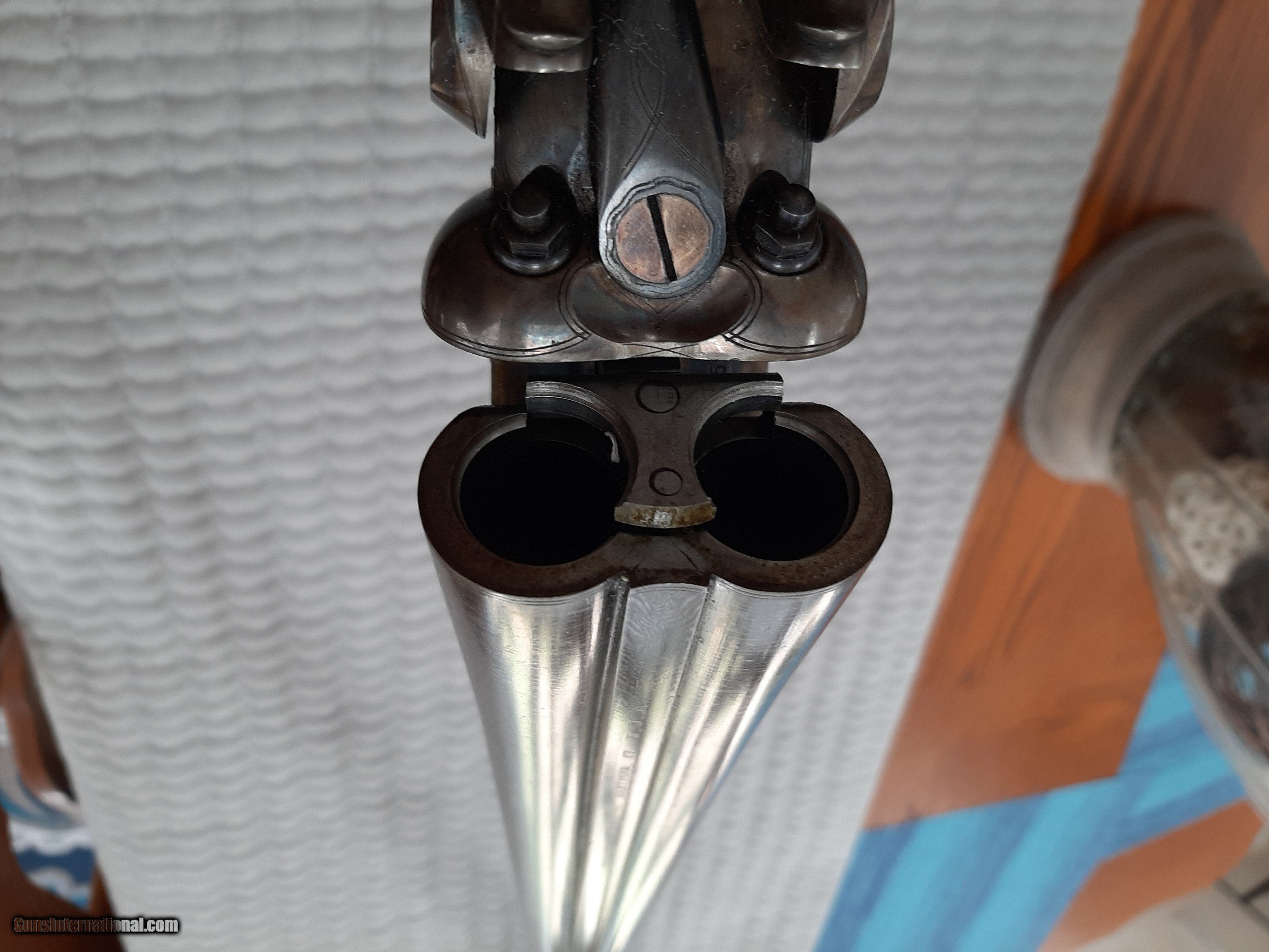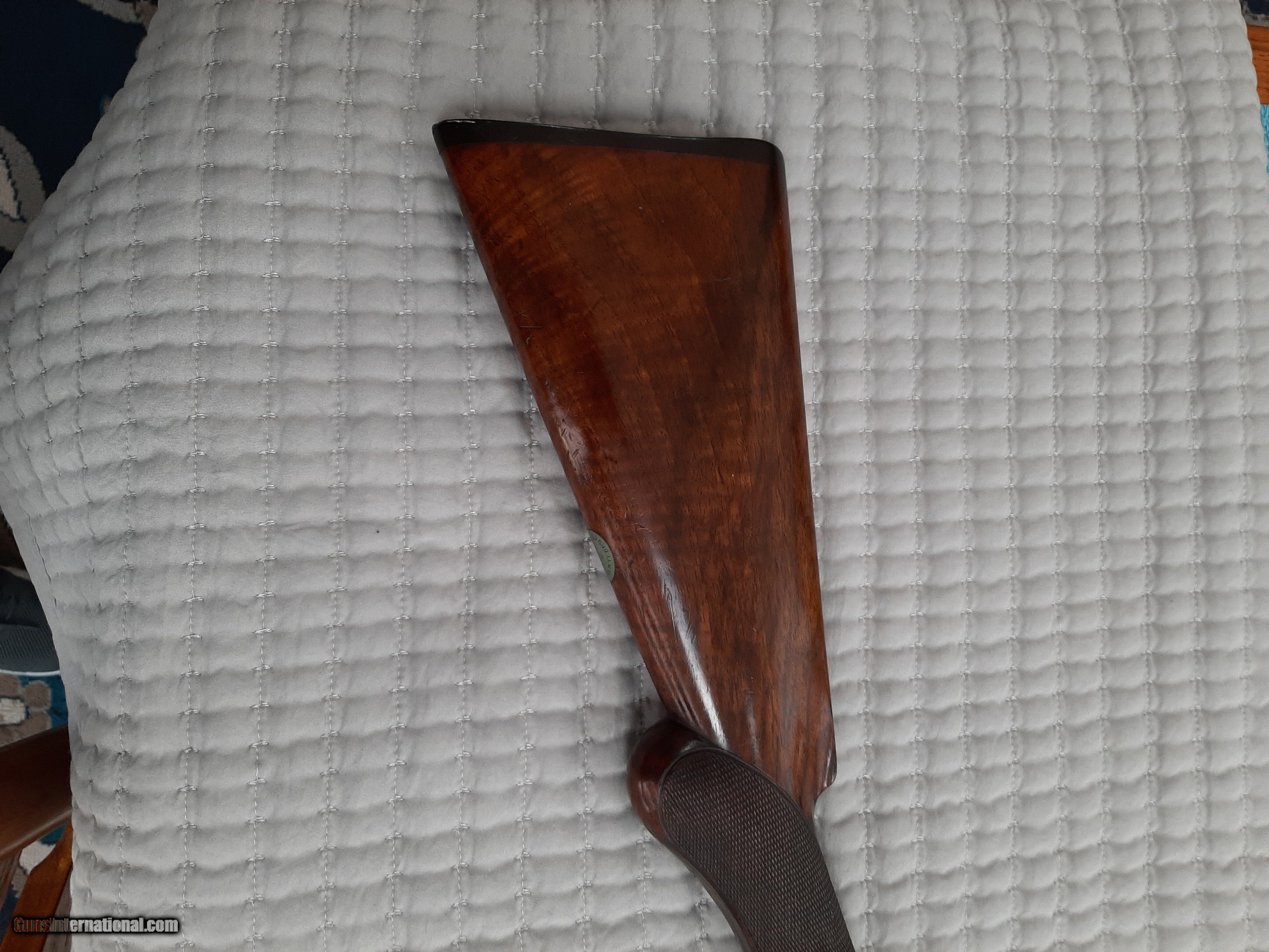 Description: This gun is for the buyer who wants only the best. 100% Damascus pattern showing, all original varnish remaining on stock, barrels are bright and clean. The only way can be told from new are a few impressions on stock. This gun is probably the nicest in existence. SOLD Antique: Yes Shotgun Gauge: 12 Gauge Manufacturer: Colt Serial Number: 10456 Barrel Length: 30 inch |