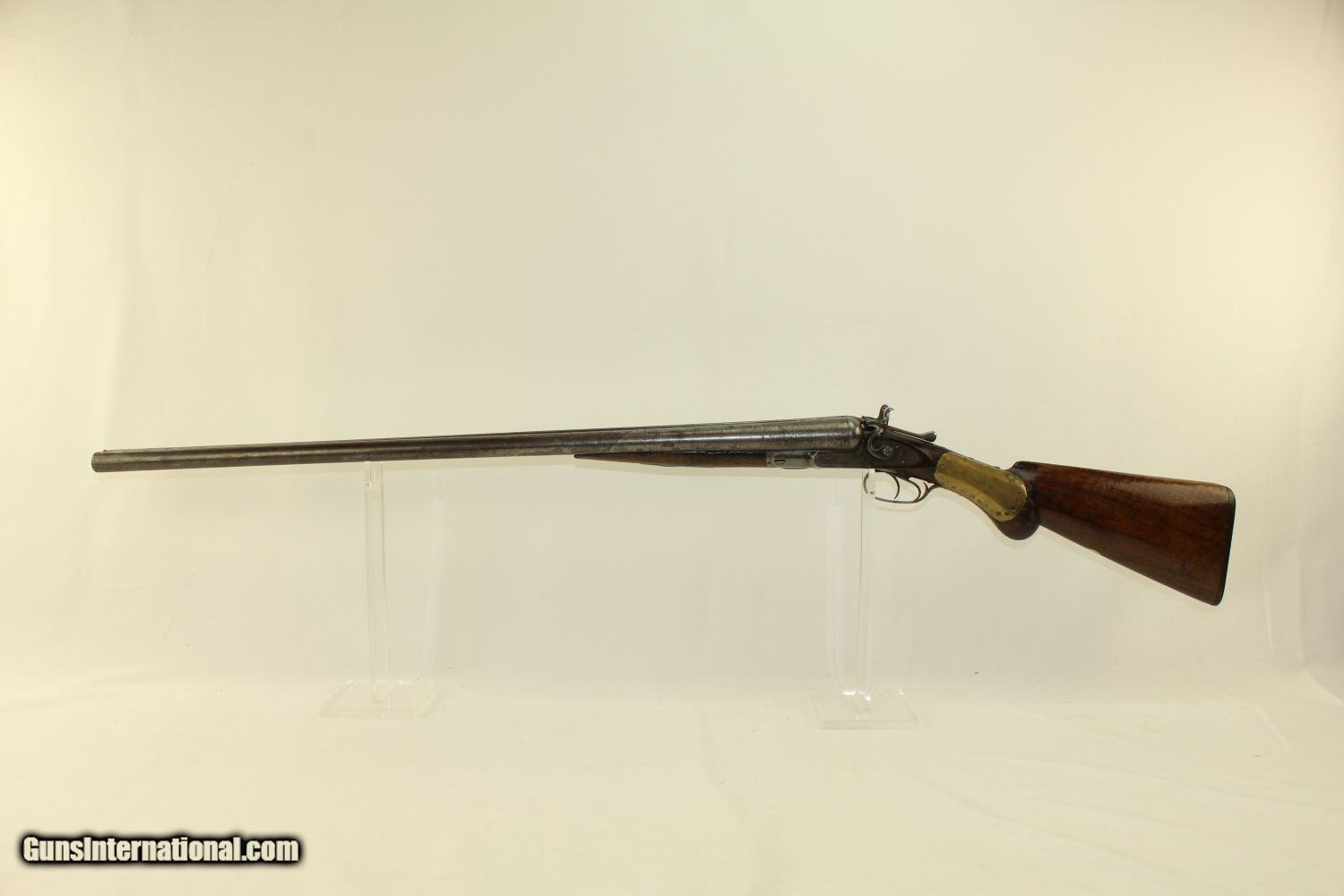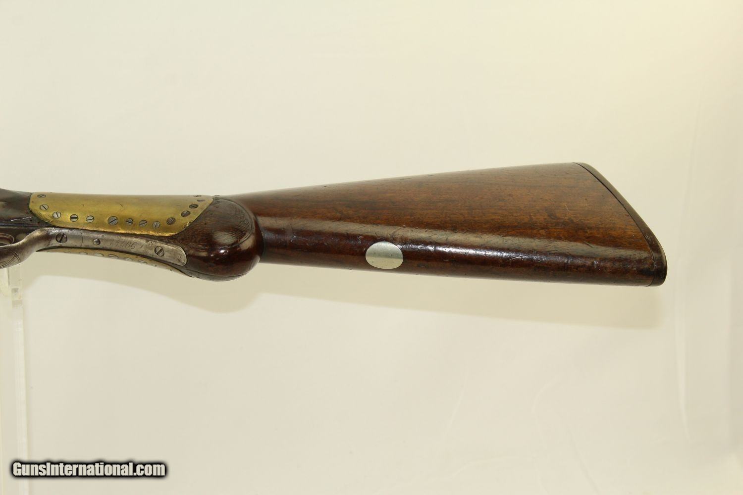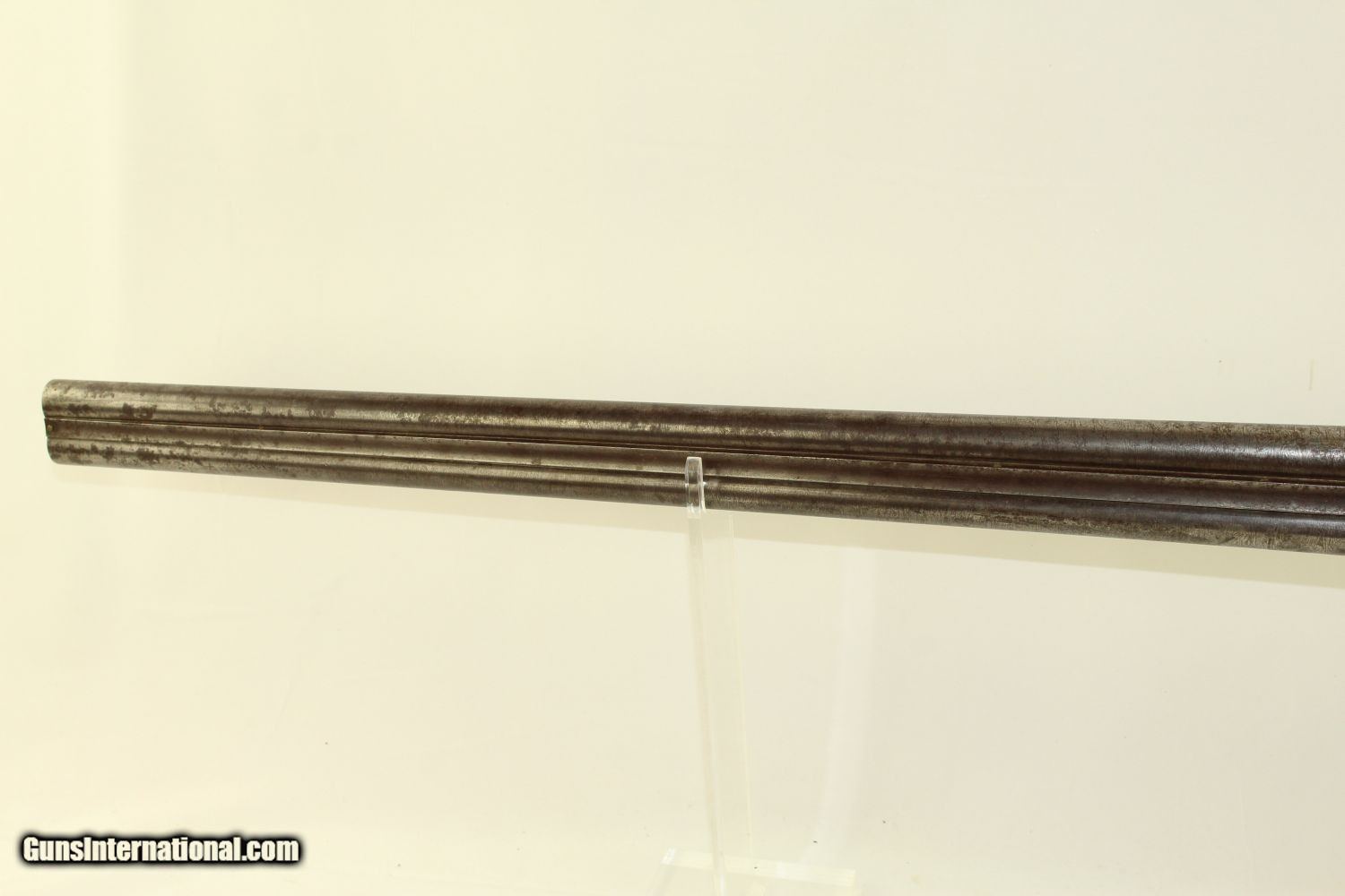 Description: Scarce Antique COLT Model 1878 SxS Hammer SHOTGUN Double Barrel Made in 1882 with Damascus Barrels Here we present an antique Colt Model 1878 Double Barrel Hammer Shotgun in 10 Gauge, manufactured in Hartford, Connecticut in 1882. The Model 1878 was made from 1878 to 1889, with approximately 22,683 guns manufactured. These double barrel shotguns were an exposed hammer double gun that competed closely with high-end Parkers. The Colt Model 1878 Double-Barrel Hammer Shotgun is considered to be, if not the finest, one of the finest American double-barrel shotguns ever made. The Model 1878 Shotgun was the highest priced item in the Colt line and was available in almost any grade as a special order item. According to one source, “The Model 1878 Hammer Gun ranks among the best grade doubles produced in the entire American arms trade. The limited number completed and the great pains devoted to handling specific orders from often fussy shooters means that a considerable degree of quality and variety is evident in the Model 1878 series.” This one was obviously used and kept running with that neat old repair along the wrist. The repair consists of two thick brass sheets screwed the entire way round. Brass was chosen for its malleability so that it would conform to the stock but also be strong enough to make the repair hold. The iron parts have a gray patina. The markings are clear. The numbers match. The bores are in very good condition, smooth and semi-bright. The actions remain strong. Here is a fantastic 10 gauge shotgun that would have taken many a duck or goose in the marsh, fantastic for mounting on the wall above the fireplace! Own the original! This is a legitimate antique and not a reproduction. Barrels are 32 inches. Caliber: 10 Gauge Chambers: 3 inches LOP: 14-1/4 inches Chokes: Cylinder/Cylinder Overall condition as seen in photos. Very Fast. Very Safe. FREE SHIPPING WORLDWIDE. Delivered directly to your door by express mail! Guaranteed AUTHENTIC & Includes CERTIFICATE OF AUTHENTICITY. ancestryguns $1400 #191025 SOLD Antique: Yes |