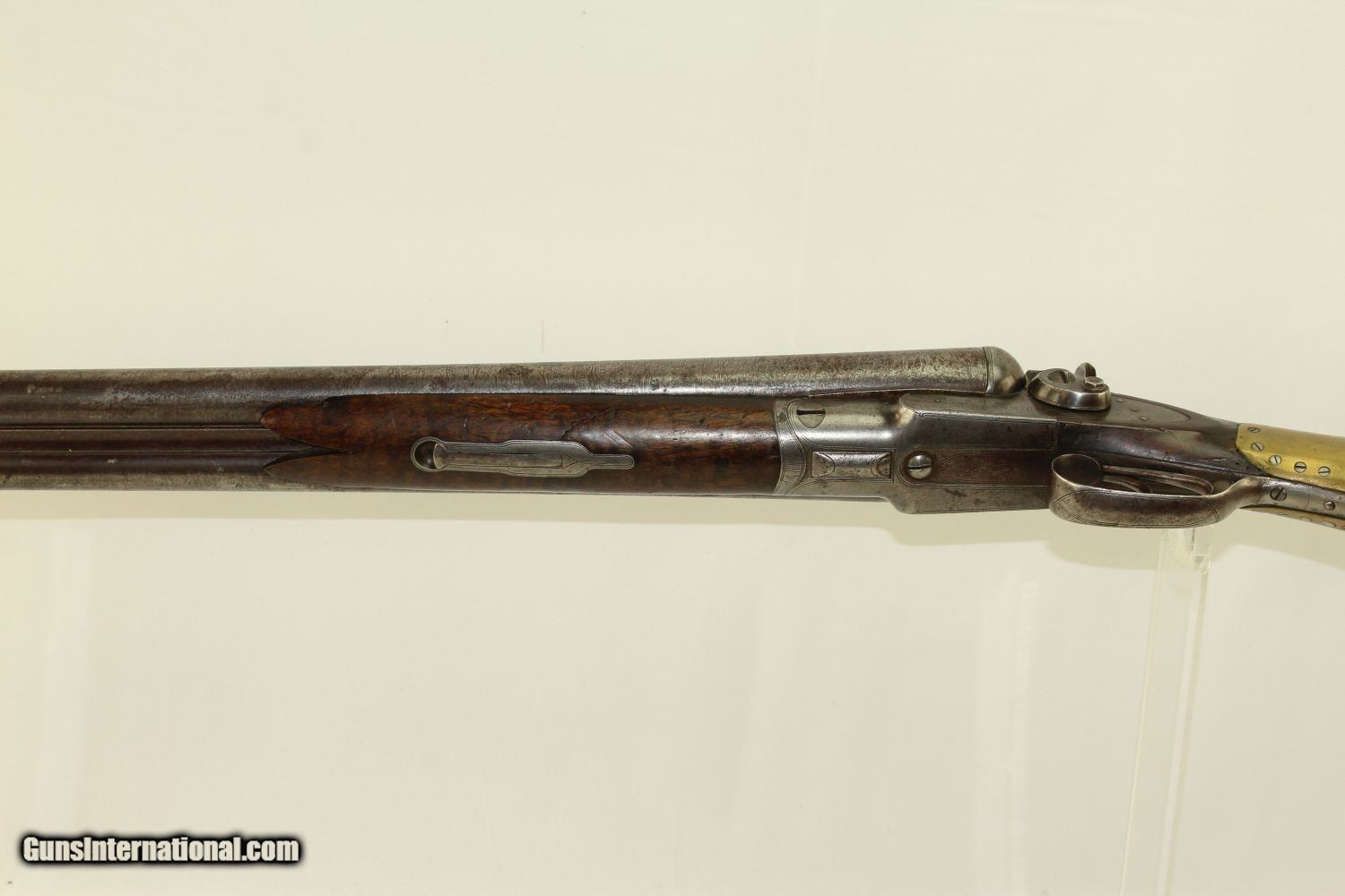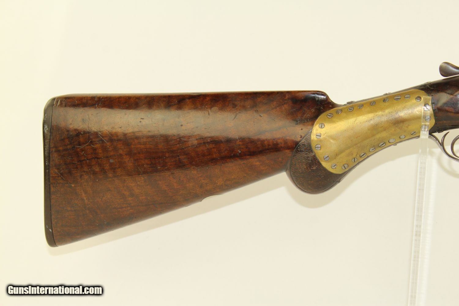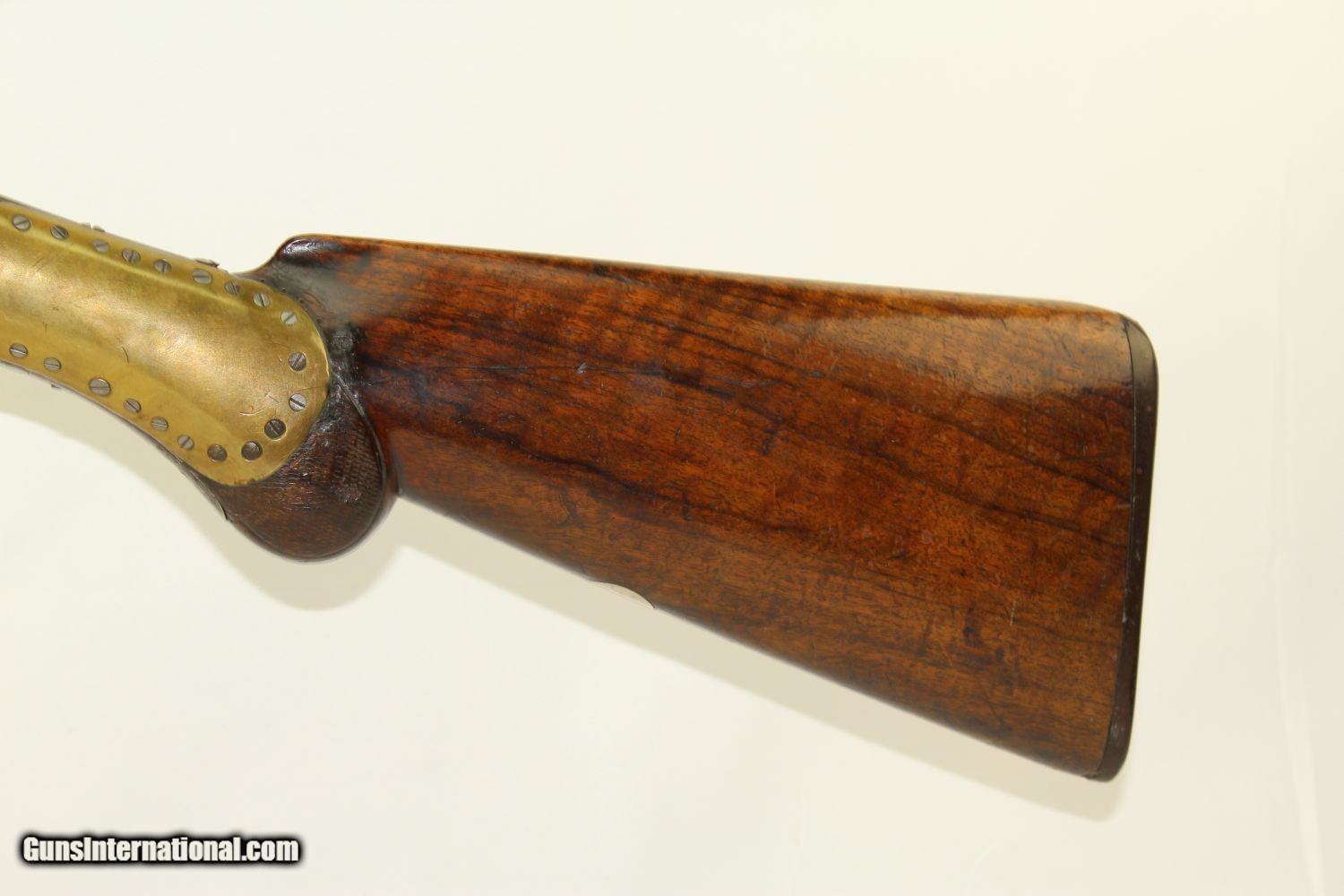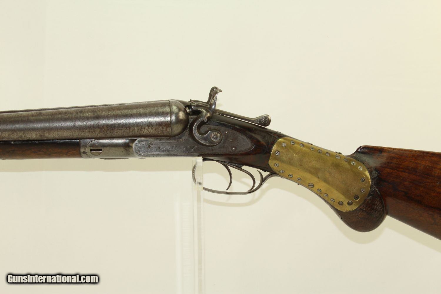 Description: Scarce Antique COLT Model 1878 SxS Hammer SHOTGUN Double Barrel Made in 1882 with Damascus Barrels Here we present an antique Colt Model 1878 Double Barrel Hammer Shotgun in 10 Gauge, manufactured in Hartford, Connecticut in 1882. The Model 1878 was made from 1878 to 1889, with approximately 22,683 guns manufactured. These double barrel shotguns were an exposed hammer double gun that competed closely with high-end Parkers. The Colt Model 1878 Double-Barrel Hammer Shotgun is considered to be, if not the finest, one of the finest American double-barrel shotguns ever made. The Model 1878 Shotgun was the highest priced item in the Colt line and was available in almost any grade as a special order item. According to one source, “The Model 1878 Hammer Gun ranks among the best grade doubles produced in the entire American arms trade. The limited number completed and the great pains devoted to handling specific orders from often fussy shooters means that a considerable degree of quality and variety is evident in the Model 1878 series.” This one was obviously used and kept running with that neat old repair along the wrist. The repair consists of two thick brass sheets screwed the entire way round. Brass was chosen for its malleability so that it would conform to the stock but also be strong enough to make the repair hold. The iron parts have a gray patina. The markings are clear. The numbers match. The bores are in very good condition, smooth and semi-bright. The actions remain strong. Here is a fantastic 10 gauge shotgun that would have taken many a duck or goose in the marsh, fantastic for mounting on the wall above the fireplace! Own the original! This is a legitimate antique and not a reproduction. Barrels are 32 inches. Caliber: 10 Gauge Chambers: 3 inches LOP: 14-1/4 inches Chokes: Cylinder/Cylinder Overall condition as seen in photos. Very Fast. Very Safe. FREE SHIPPING WORLDWIDE. Delivered directly to your door by express mail! Guaranteed AUTHENTIC & Includes CERTIFICATE OF AUTHENTICITY. ancestryguns $1400 #191025 SOLD Antique: Yes |