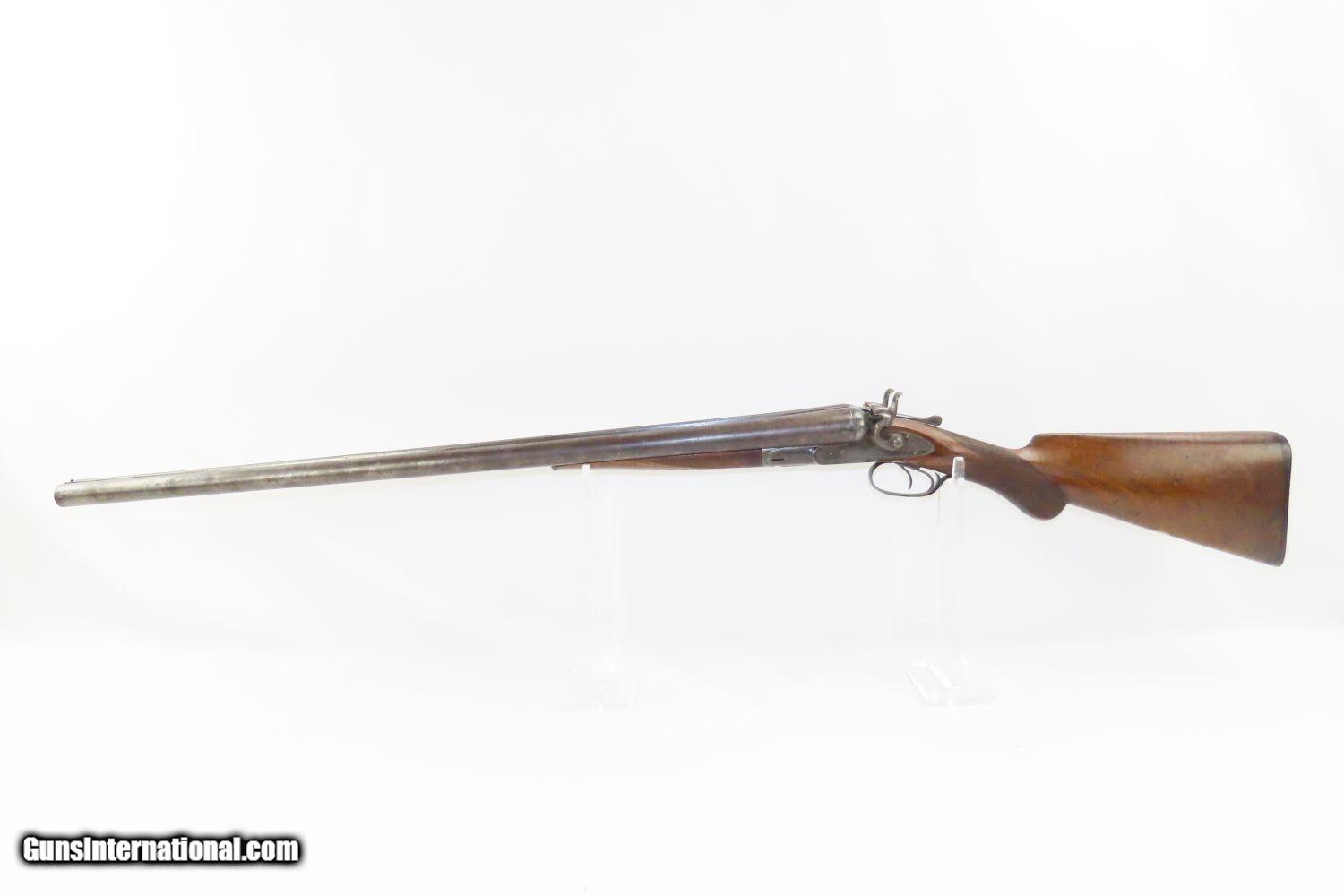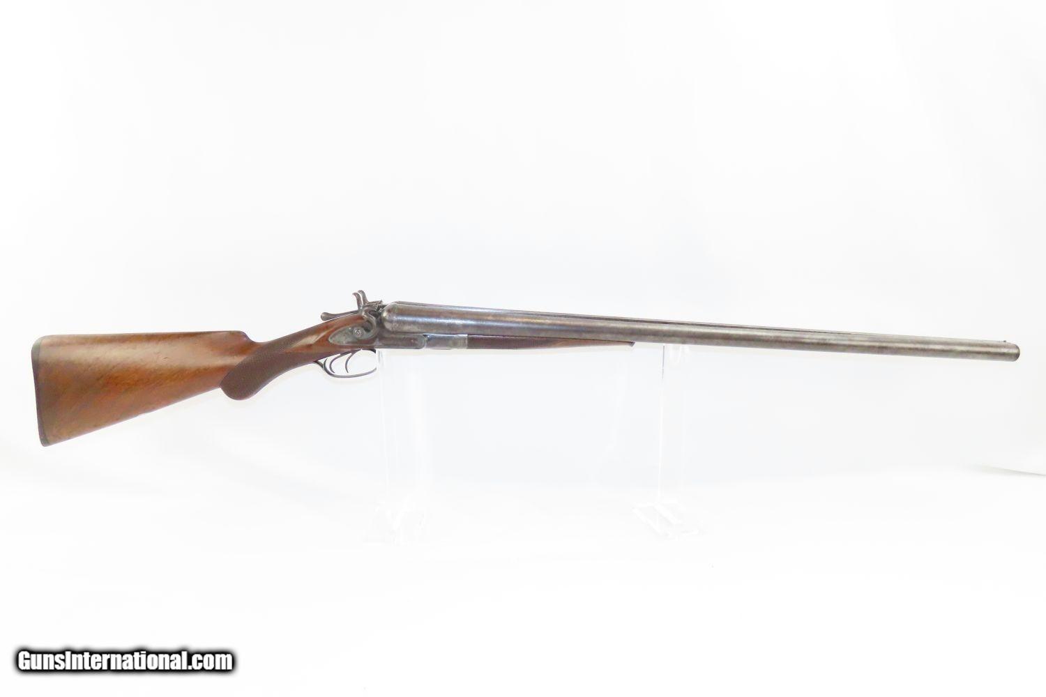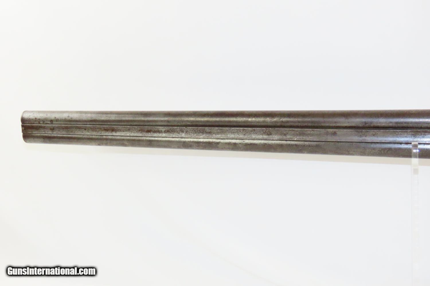 Description: SCARCE Engraved Antique COLT Model 1878 10 Gauge Side x Side HAMMER SHOTGUN Double Barrel Made in 1881 with Damascus Barrels Here we present an antique Colt Model 1878 Double Barrel Hammer Shotgun, manufactured in Hartford, Connecticut in 1881. The Model 1878 was made from 1878 to 1889, with approximately 22,683 guns manufactured. These double barrel shotguns were an exposed hammer double gun that competed closely with high-end Parkers. The Colt Model 1878 Double-Barrel Hammer Shotgun is considered to be, if not the finest, one of the finest American double-barrel shotguns ever made. Manufactured from 1878-1889, the Model 1878 Shotgun was the highest priced item in the Colt line and was available in almost any grade as a special order item. This double trigger shotgun is a 10 gauge solid rib with 30 inch barrels. According to one source, “the Model 1878 Hammer Gun ranks among the best grade doubles produced in the entire American arms trade. The limited number completed and the great pains devoted to handling specific orders from often fussy shooters means that a considerable degree of quality and variety is evident in the Model 1878 series.” The overall condition is good+. The actions are strong. Nice Damascus pattern remains on the barrels and some case colors are yet visible on the locks. The bores are bright and reflective, but the right barrel does contain slight pitting towards the breech. This example has it all, beautiful wood grain, Damascus barrels, engraved receiver, and the Colt name. Don’t miss this addition for the collection! Own the original! This is a legitimate antique and not a reproduction. Barrels are 30 inches. Caliber: 10 Gauge Overall condition as seen in photos. Very Fast. Very Safe. FREE SHIPPING WORLDWIDE. Delivered directly to your door by express mail! Guaranteed AUTHENTIC & Includes CERTIFICATE OF AUTHENTICITY. ancestryguns $1925 #200960 SOLD Antique: Yes |