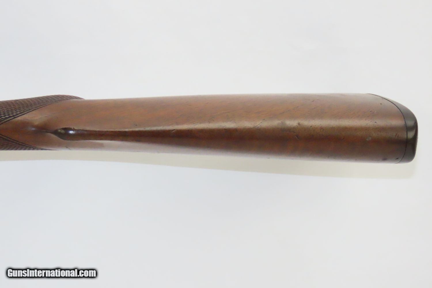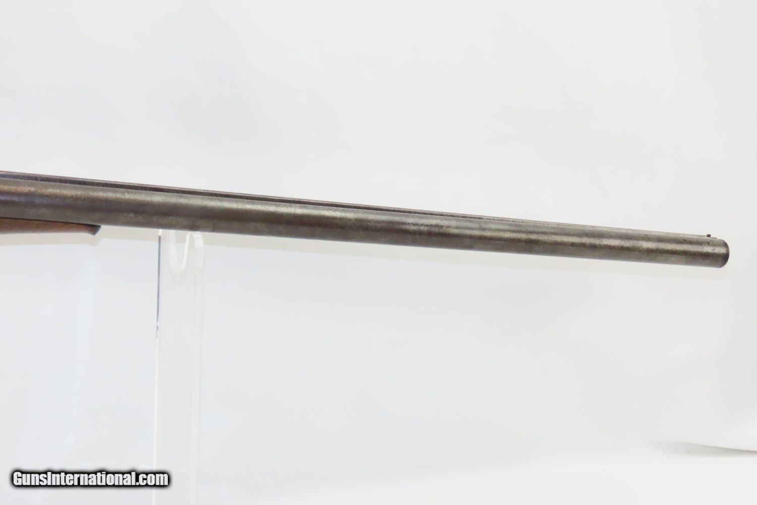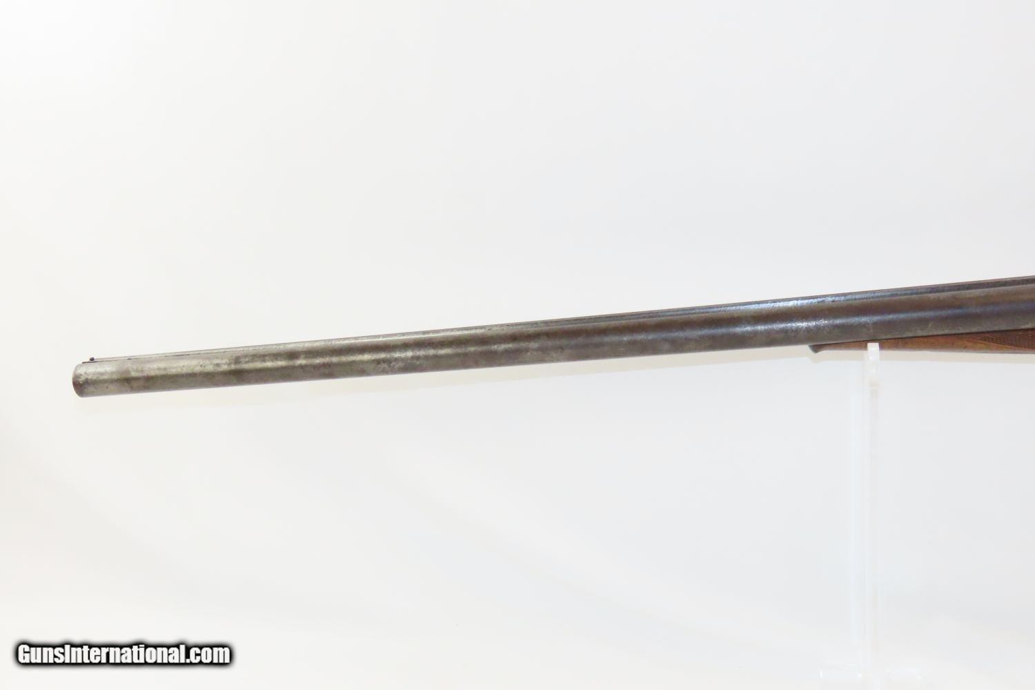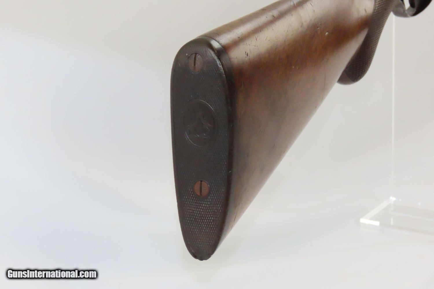 Description: SCARCE Engraved Antique COLT Model 1878 10 Gauge Side x Side HAMMER SHOTGUN Double Barrel Made in 1881 with Damascus Barrels Here we present an antique Colt Model 1878 Double Barrel Hammer Shotgun, manufactured in Hartford, Connecticut in 1881. The Model 1878 was made from 1878 to 1889, with approximately 22,683 guns manufactured. These double barrel shotguns were an exposed hammer double gun that competed closely with high-end Parkers. The Colt Model 1878 Double-Barrel Hammer Shotgun is considered to be, if not the finest, one of the finest American double-barrel shotguns ever made. Manufactured from 1878-1889, the Model 1878 Shotgun was the highest priced item in the Colt line and was available in almost any grade as a special order item. This double trigger shotgun is a 10 gauge solid rib with 30 inch barrels. According to one source, “the Model 1878 Hammer Gun ranks among the best grade doubles produced in the entire American arms trade. The limited number completed and the great pains devoted to handling specific orders from often fussy shooters means that a considerable degree of quality and variety is evident in the Model 1878 series.” The overall condition is good+. The actions are strong. Nice Damascus pattern remains on the barrels and some case colors are yet visible on the locks. The bores are bright and reflective, but the right barrel does contain slight pitting towards the breech. This example has it all, beautiful wood grain, Damascus barrels, engraved receiver, and the Colt name. Don’t miss this addition for the collection! Own the original! This is a legitimate antique and not a reproduction. Barrels are 30 inches. Caliber: 10 Gauge Overall condition as seen in photos. Very Fast. Very Safe. FREE SHIPPING WORLDWIDE. Delivered directly to your door by express mail! Guaranteed AUTHENTIC & Includes CERTIFICATE OF AUTHENTICITY. ancestryguns $1925 #200960 SOLD Antique: Yes |