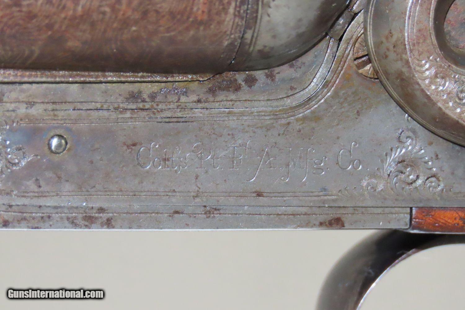 SCARCE Engraved Antique COLT Model 1878 10 Gauge Side x Side HAMMER SHOTGUN Double Barrel Made in 1881 with Damascus Barrels