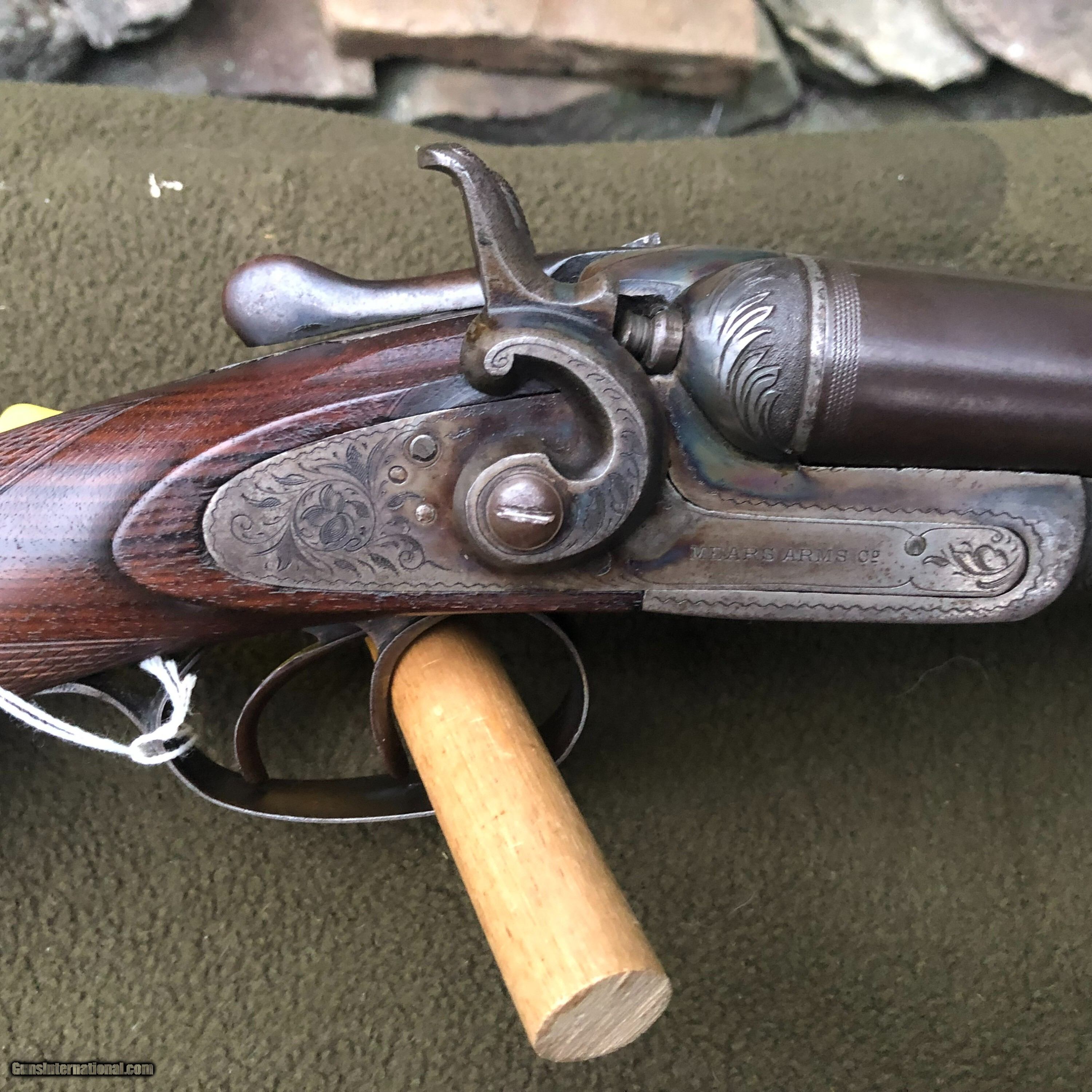 Description: SIGNED MEARS ARMS COMPANY SXS 12ga.EXTERIOR HAMMERS APPROX 31.25 LENGTH DAMASCUS BARRELS MARKED BELGIUM .MATCHING NUMBERS.EXTRACTORS WORK ,LEVER LOCKS UP CORRECTLY CORRECT PROOF MARKS DOUBLE TRIGGER ACTION WORKS NICE BROWN PATINA ON THE BARRELS BORES ARE SHINY WOOD IS SOLID.REFINISHED STOCK. FOREPIECE LOCKS UP CORRECTLY FROM THE SAME RESTORERS ESTATE AS SEVERAL OTHER FIRARMS I HAVE LISTED. ALWAYS OPEN TO OFFERS ON MULTIPLE BUYS Curio/Relic: Yes Shotgun Gauge: 12 Gauge Price: $995.00 Buy Now Contact Seller |