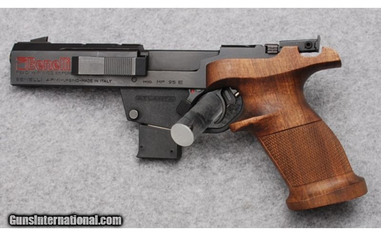 Description: This is a Benelli MP95E Atlanta Target Pistol in .32 Wad Cutter. This pistol is in Very Good to Excellent condition with a shiny bore. It comes with the factory hard case and 2 extra magazines. SOLD Caliber Info: .32 Wad Cutter Metal Condition: Very Good to Excellent with light handling marks Wood Condition: Target Style Wood Grips are Very Good to Excellent Bore Condition: Bright and shiny Barrels: 4 1/4 Sights: Adjustable Target Style Extras: Factory hard case with 2 extra magazines Item Location: Reno, NV |