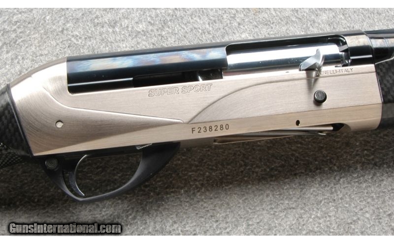 Description: This Benelli Super Sport is very close to new looking. The carbon finish stock is free from any marks and the blue receiver and barrel look like new. This shotgun has been fired a little but not a lot from the looks of it. The shotgun comes with the case and 2 extra chokes. SOLD Caliber Info: 12 Gauge. Chambers: 2 3/4 and 3 inch semi-auto. Metal Condition: Excellent. Wood Condition: The stock is like new. Bore Condition: Bright and shiny. Barrels: 30 Inch blue with porting and a vent rib. Triggers: Single. Stock: Black synthetic Comfor-tec with a checkered pistol grip and a carbon fiber finish. Stock Dimensions: 14 1/8 Inch LOP. Fore End: Matching with checkering and finger grooves. Butt Pad: Benelli black rubber butt pad. Weight: 7 Lbs 5 Oz. Sights: Mid and front beads on the vent rib. Chokes: Screw in, Full, IM and IC. Extras: Comes with the case, extra chokes, choke tube wrench, plug, shim kit and factory paperwork. Item Location: Owatonna, MN |