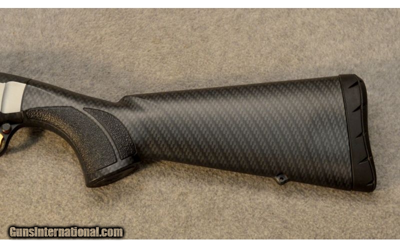 Description: This is a new Browning Maxus Sporting Carbon Fiber in 12 gauge with a 28” barrel. Combining reliability, speed and accuracy, the Browning Maxus Shotguns are some of the finest autoloaders on the market. With a lightweight profile, the flat, ventilated-rib steel barrel features 742-back-bored technology, a Vector Pro lengthened forcing cone and five Invector-Plus choke tubes to maximize pattern uniformity and consistency. The Power Drive Gas System works together with the Inflex Technology recoil pad to drastically reduce felt recoil and muzzle jump. The Lightning Trigger System offers a smooth, crisp feel with minimal travel. The Speed Lock Forearm allows you to remove the forearm in just a few seconds. The receiver and barrel sport a carbon-fiber finish, and the durable composite stock with its Dura-Touch coating provide a solid grip in all temperatures and weather conditions. It also features a HiViz Pro-Comp fiber-optic front sight and white mid bead sight, two 1/4" stock spacers, and an ABS case. SOLD Manufacturer: 2014 Caliber Info: 12 Gauge Chambers: 3” Metal Condition: New. Wood Condition: New. Bore Condition: New. Barrels: 28” Triggers: Lightning Trigger System. Stock: Carbon fiber dipped composite stock with textured grip panels, and Dura-Touch Armor Coating. Stock Dimensions: 14 ¼” LOP Fore End: Carbon fiber dipped composite forearm with textured grip panels, and Dura-Touch Armor Coating. Butt Pad: Inflex Technology recoil pad with hard heel insert. Weight: 7 lbs. Sights: HiViz Pro-Comp fiber-optic front sight with white mid bead. Chokes: Invector-Plus system. Extras: New in box. Item Location: Glendale, AZ |