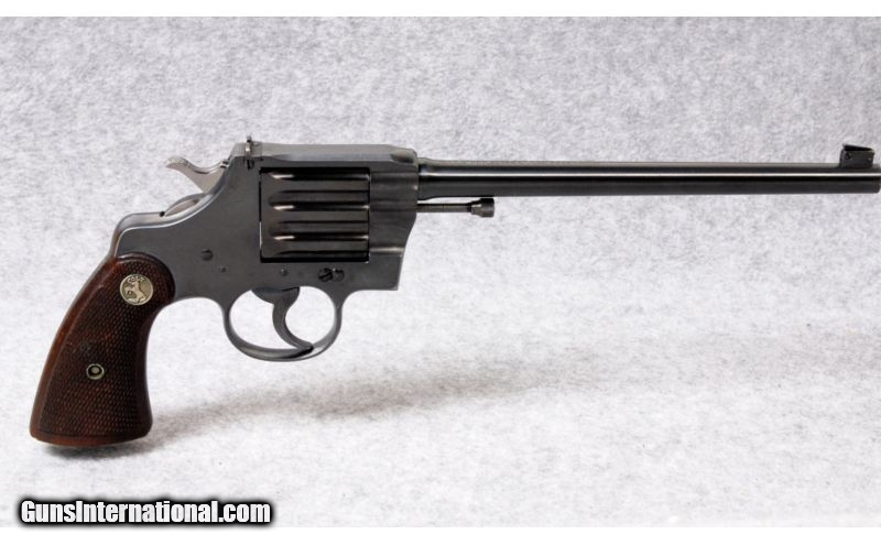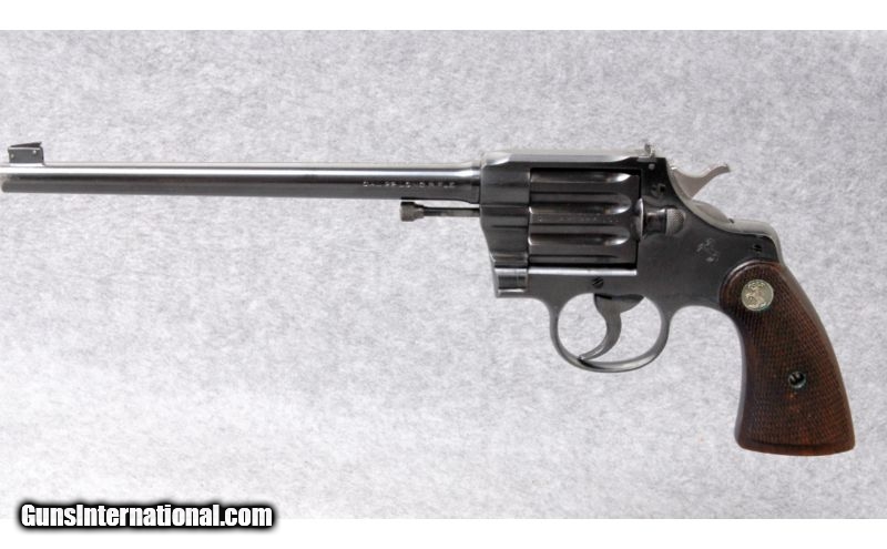 Description: SOLD Caliber Info: .22 long rifle. Metal Condition: 95% original gun. Blue is 95% with minor cylinder pin wear and light muzzle wear. Wood Condition: Minor mar on the bottom edge of the left grip. Bore Condition: Excellent. Barrels: 10" round barrel with a flat, fluted cylinder. Triggers: Royal blue. Stock: Original checkered walnut grips with circle medallions. Sights: Pinned front blade and windage rear. Extras: Comes with a wood Camp Perry, 50 round, ammo box. Item Location: Kansas City, KS |
