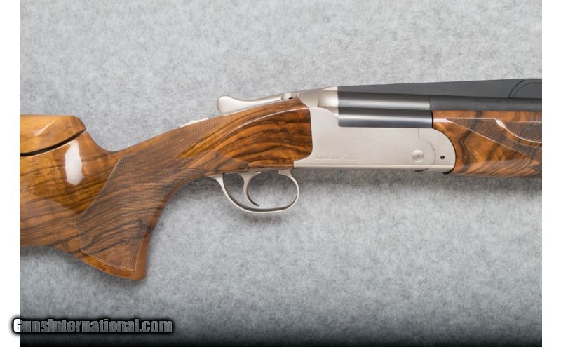 Description: A Quality trap gun in excellent condition! SOLD Caliber Info: 12 gauge Chambers: 2 3/4 inches Metal Condition: Very good; a few light scuffs on rib Wood Condition: Excellent; a few light handling marks Bore Condition: Clean and bright Barrels: 34 Triggers: Smooth; plated Stock: Checkered walnut with pistol grip; palm swell and adjustable comb Stock Dimensions: LOP - 15 inches Fore End: Checkered walnut Butt Pad: Black rubber pad Weight: 9 lbs. 13 oz. Sights: White Bradley front; silver mid bead Chokes: Choke tubes Extras: Original Kolar hard case; (3) chokes; tools and accessories. Item Location: Sun Prairie, WI |