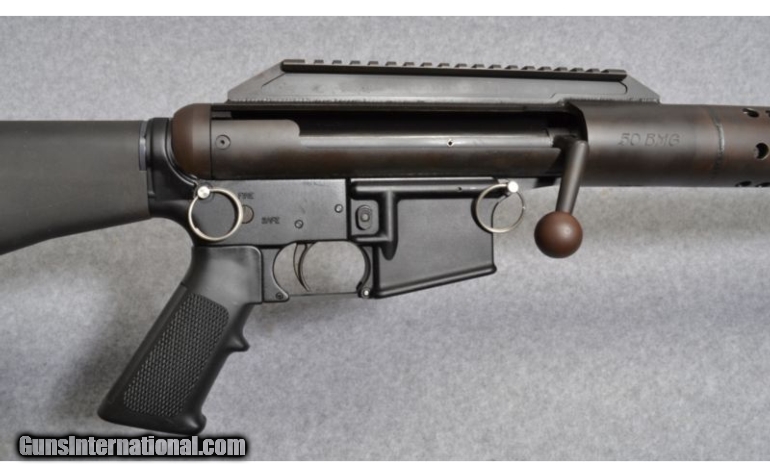 Description: Custom built. Great choice for entry into a Para-military collection. SOLD Manufacturer: SN: MUR0048 Caliber Info: .50 Bmg. Metal Condition: Shows original finish with light handling marks and scabbard wear. Wood Condition: Shows original finish with light handling marks and field use. Bore Condition: Clean with sharp lands. Barrels: 42" with muzzle brake Triggers: custom attached to AR lower Stock: Full synthetic with pistol grip. Stock Dimensions: 13 5/8" LOP. Fore End: Skeletonized fore end. Butt Pad: Hard plastic butt plate. Weight: 26 lbs 4 oz. Sights: None. Item Location: Anchorage, AK |
