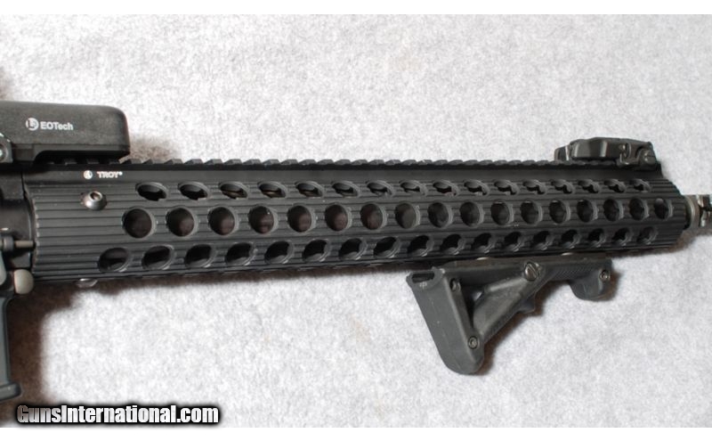 Description: SOLD Caliber Info: 5.56 NATO / .223 remington Metal Condition: Bluing worn and faded, some scratches Wood Condition: Some handling marks Bore Condition: Shiny, rifling sharp Barrels: 18 Stock: Adjutable, synthetic Fore End: Troy monolithic rail Butt Pad: Rubber Weight: 7 1/2 lbs. Sights: EOTech Holosight, Magpul BUIS Extras: Case, EOTech Holosight. Item Location: Rapid City, SD |