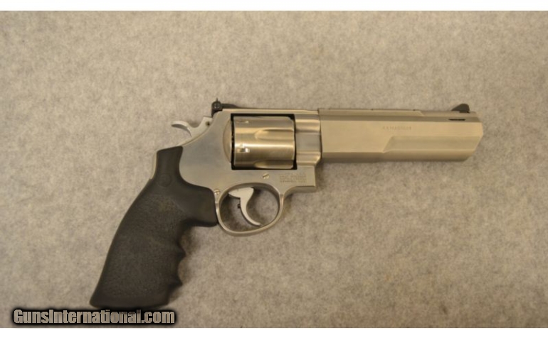 Description: Great revolver. Built to Smith & Wesson's legendary standards of performance. Great choice for a target shooting revolver. Good choice for entry into a Revolver or Smith & Wesson collection. SOLD Manufacturer: SN: NPC0007 Caliber Info: .44 MAG. Metal Condition: Shows original finish with light handling marks. Wood Condition: Grips are free from chips, cracks, and tears. Bore Condition: Clean with sharp lands. Barrels: 6 Triggers: Double action. Stock: Smith & Wesson logo black rubber grips with texturing. Weight: 24 oz. Sights: Open sights. Extras: With case and extra weights. Item Location: Anchorage, AK |