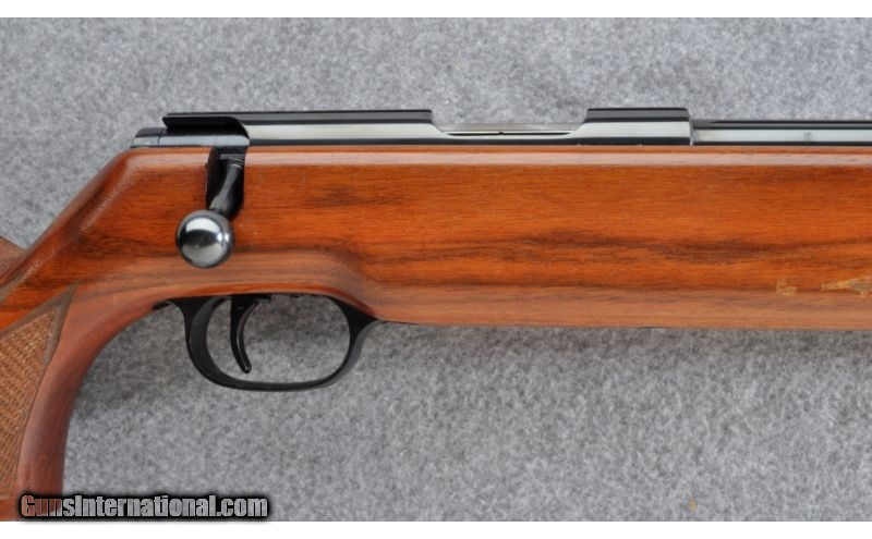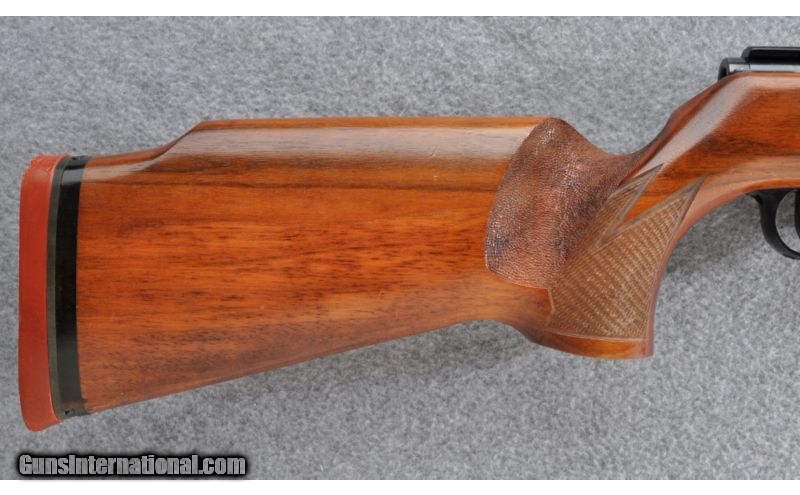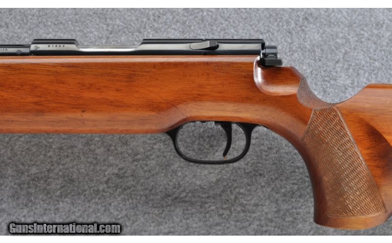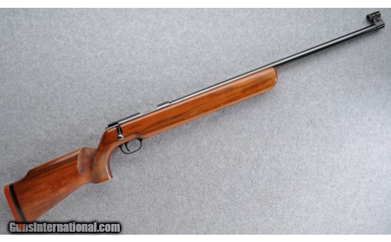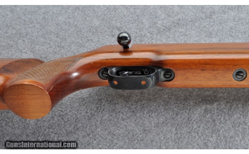 Description: SOLD Caliber Info: .22 Long Rifle Metal Condition: Bright blue showing slight wear on bolt handle. A few small dings on the trigger guard Wood Condition: A few small dents and scratches Bore Condition: Clean and bright with strong rifling Barrels: 25 1/2" Target Contour Triggers: Adjustable Match Grade Stock: Checkered Target style Stock Dimensions: 14" LOP Fore End: Uncheckered with bottom rail for palm stop or other device Butt Pad: Red Rubber cracked Weight: 8 lbs 8 oz Sights: Hooded front sight with insert, No Rear sight, Grooved receiver and Barrel for scope mounting Item Location: Grand Junction, CO |
