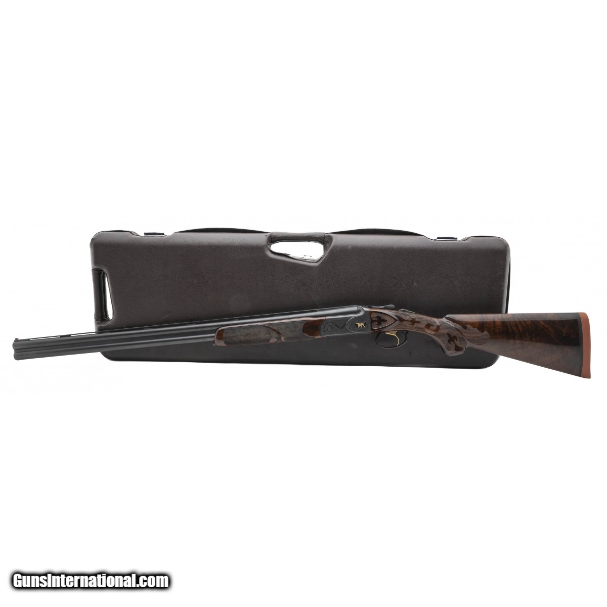 SN: W50300. Modern production 20ga with 28"" barrels. Premium grade over/under field gun. Outstanding craftmanship with elaborate engraving and gold inlays and carved and checkered exhibition grade walnut. LOP is 14 1/8"" over a Winchester pad. Comes with factory hard case. Overall excellent condition.