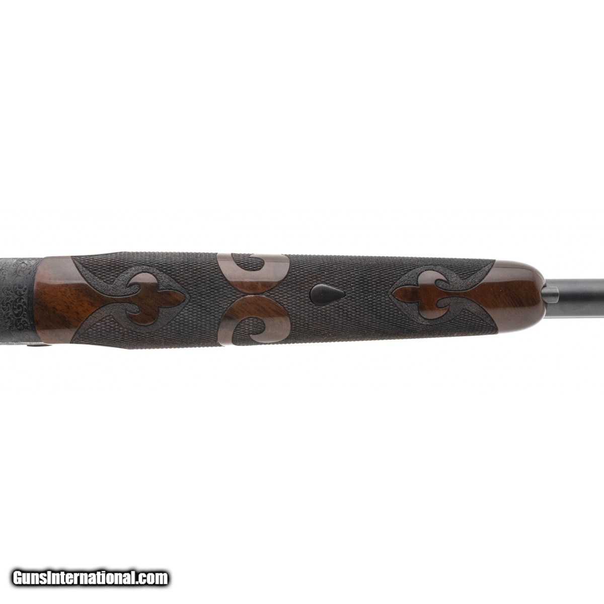 Description: " SN: W50300. Modern production 20ga with 28"" barrels. Premium grade over/under field gun. Outstanding craftmanship with elaborate engraving and gold inlays and carved and checkered exhibition grade walnut. LOP is 14 1/8"" over a Winchester pad. Comes with factory hard case. Overall excellent condition. SOLD |