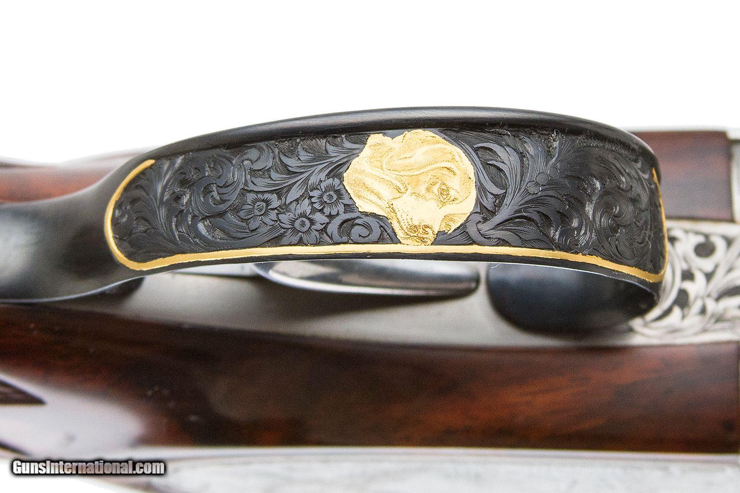 Description: CREMINI ENGRAVED SCALED FRAME 27" SOLID RIB FULL AND FULL 3" CHAMBERS SINGLE TRIGGER EJECTORS BOSS STYLE FOREARM PISTOL GRIP WITH ENGRAVED GRIP CAP 5LBS 9 OZ 2 1/4 DAH 1 5/8 DAC 14 1/4 LOP WITH CHECKERED BUTT ANS ENGRAVED SKELETON BUTT PLATE NEW UN FIRED IN MAKERS CASE SOLD |
