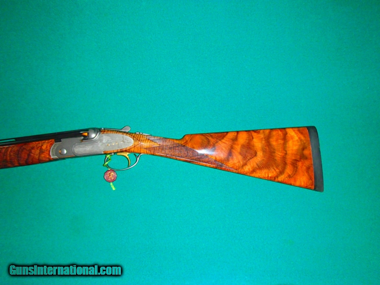 Description: Platinum grade A10 28 Ga. This gun was the first Ntl. Grouse Assoc. commissioned A10 With a serial # A10-RGS1. The grouse is one of the rarest of engravings. It has an English style exhibition grade 3d feathered California English walnut stock with custon hand rubbed highly polished true oil finished . It has Grouse and Bob White engraved on the sides and Retriever with grouse on the bottom. Check out the photos. This gun is new in the factory hard case with all chokes, towels and keys. You won't find a better looking A10!! This is a 21,000.00 gun for one from the factory with a standard sn. . SOLD |