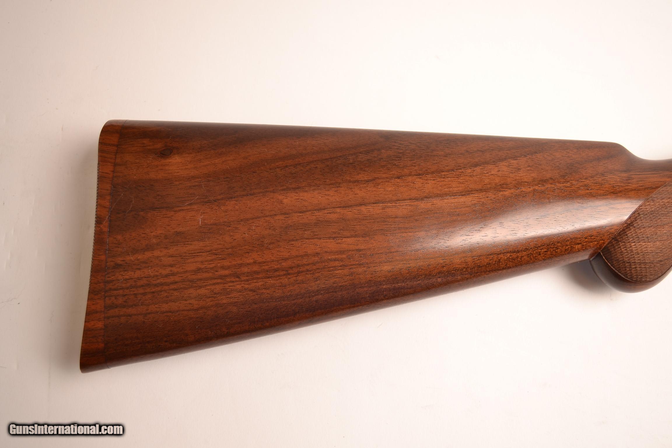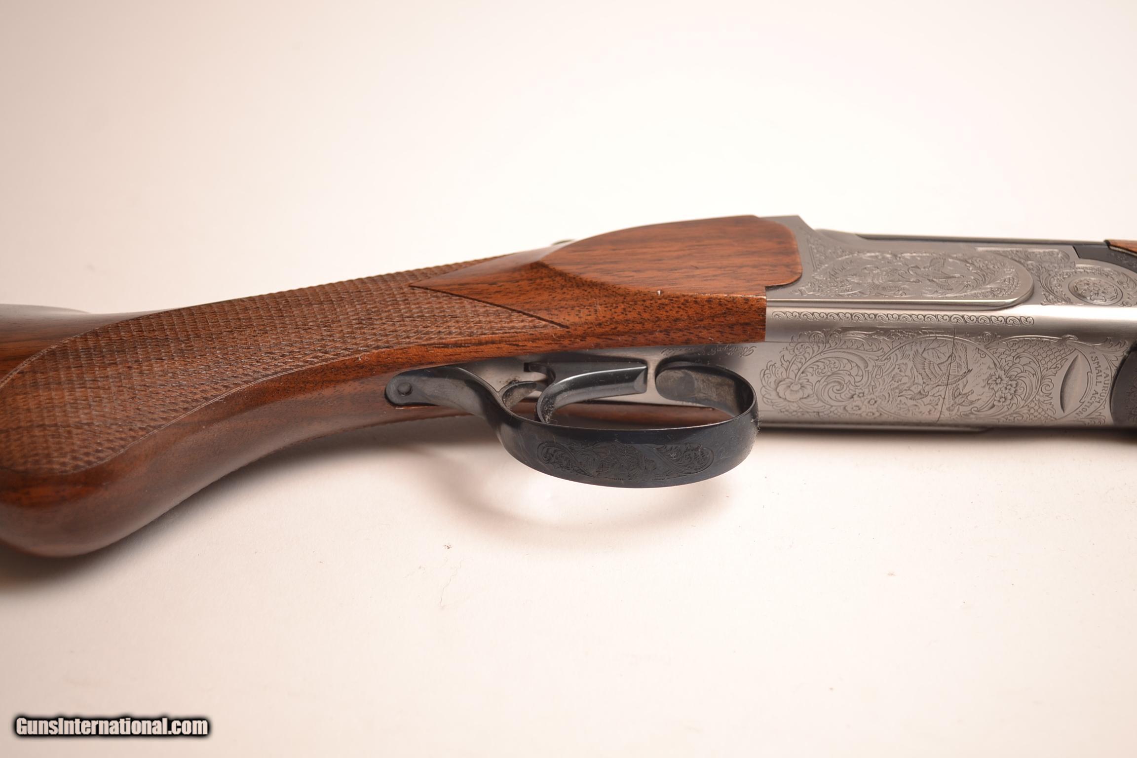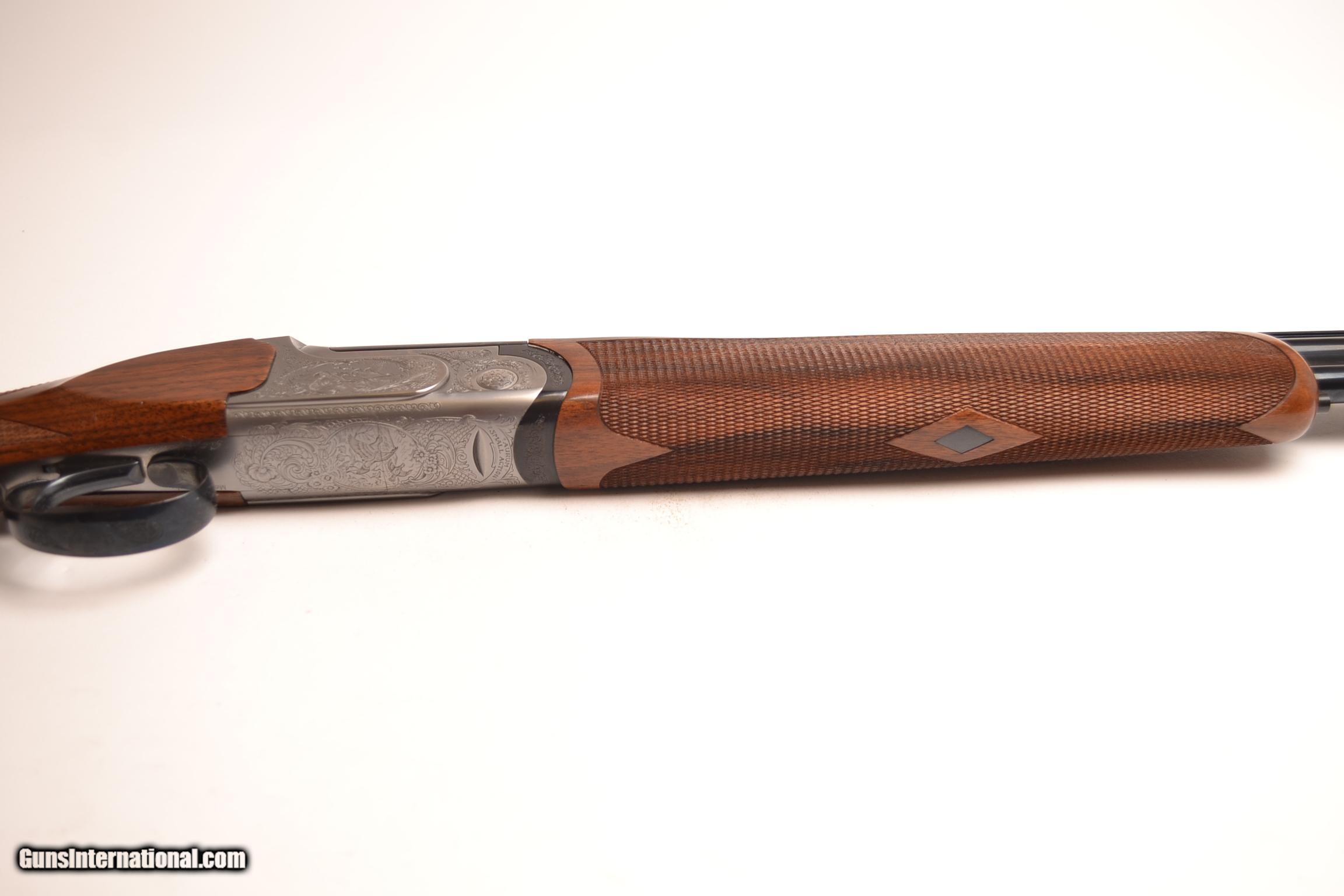 Description: B. Rizzini Aurum Small Action .410ga, 28” barrel, screw in chokes, European walnut stock with a Prince of Wales round knob grip and a wooden butt plate, hunting forearm, oil finish, blued single selective trigger, automatic ejectors, vent rib, non-auto safety, splendid game scene engraving on a coin finish receiver, S&H-$35.00, 100% new and unfired available for immediate delivery. The gun includes makers’ case. Inv# 12427 6 lbs. 1 oz. 14 1/2” X 1 ½” X 2 ¼” $2,525.00 SOLD |