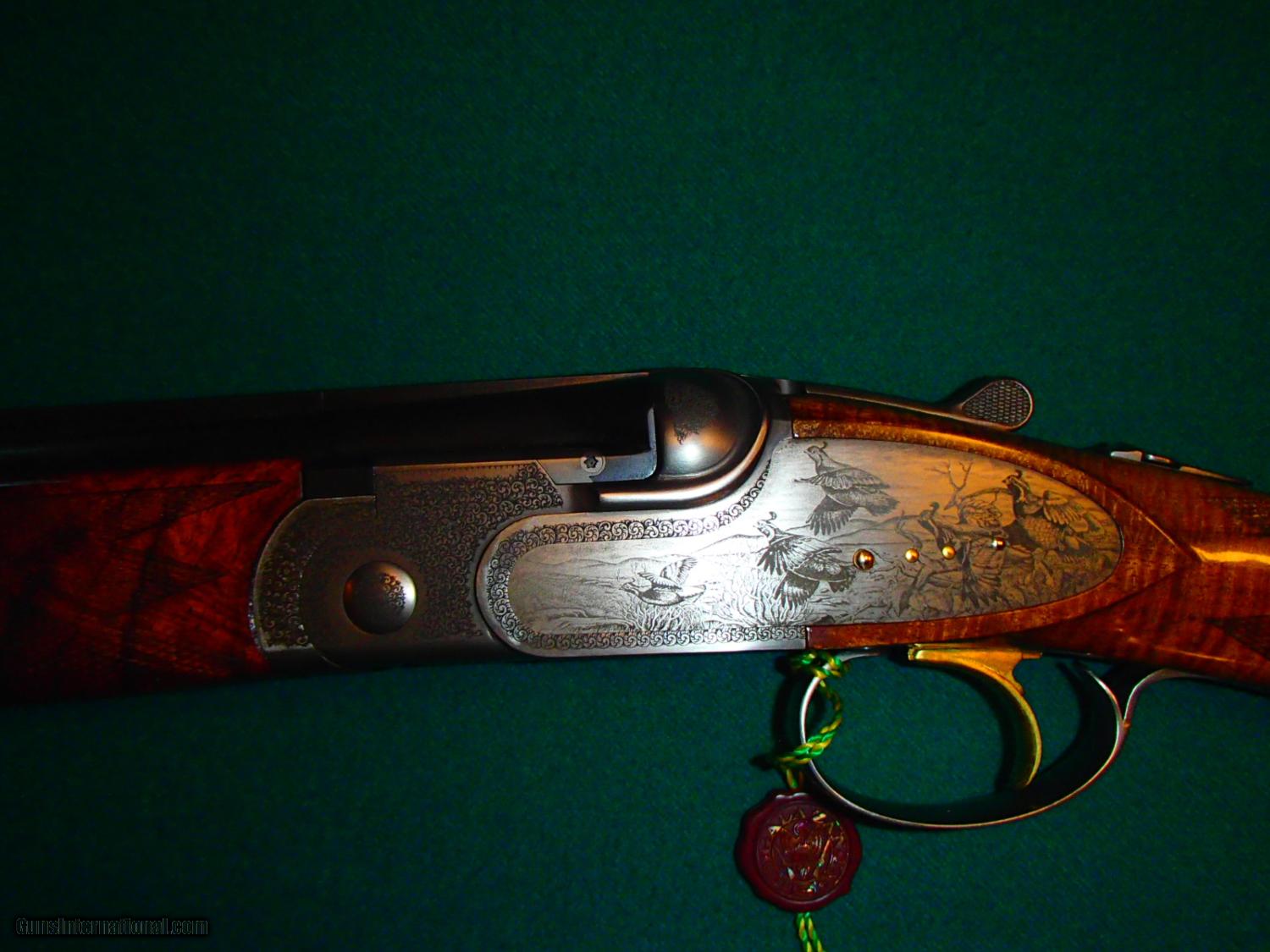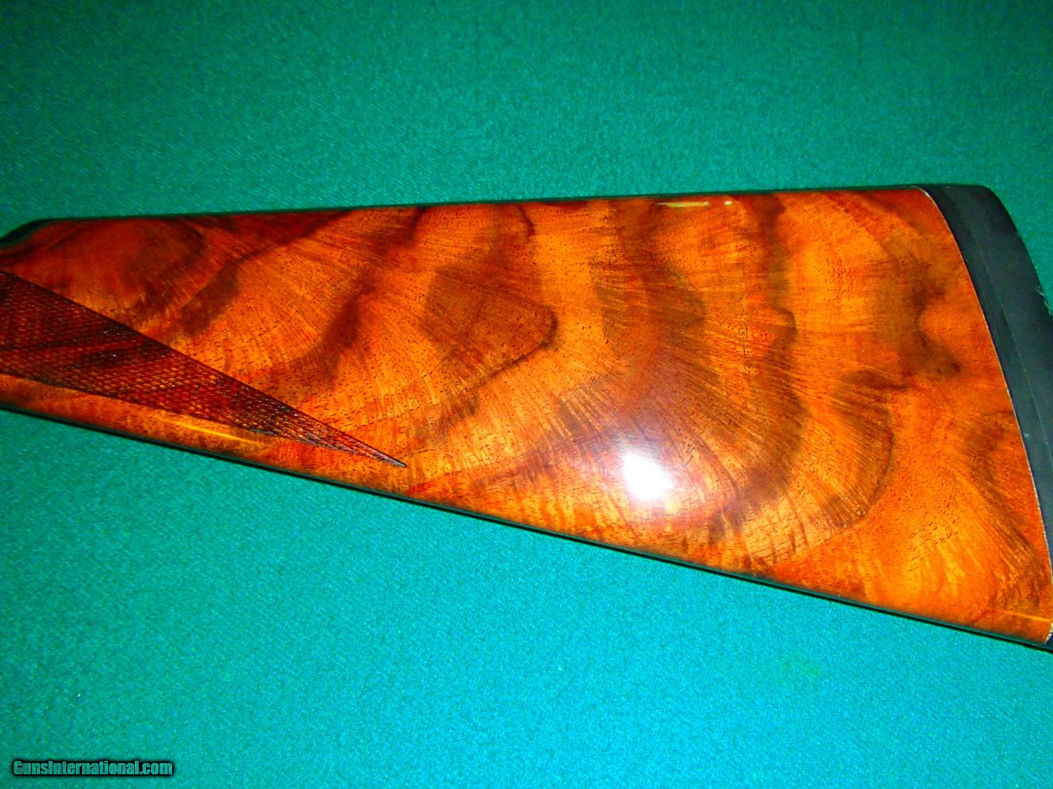 Description: Platinum grade A10 28 Ga. This gun was the first Ruffed Grouse Society commissioned A10 With a serial # A10-RGS1. This is one of the first A-10s made acording to the factory.The grouse is one of the rarest of engravings. It has an English style exhibition grade 3d feathered California English walnut stock with custon hand rubbed highly polished true oil finished . It has Grouse and Bob White engraved on the sides and Retriever with grouse on the bottom. Check out the photos. This gun is new in the factory hard case with all chokes, towels and keys. You won't find a better looking A10!! This is a 21,000.00 gun for one from the factory with a standard sn SOLD Manufacturer: Connecticut Shotgun A-10 Platinum Model: A-10 custom Serial Number: RGS-1 Condition: new Barrels: 29 Gauge Info: 28 |