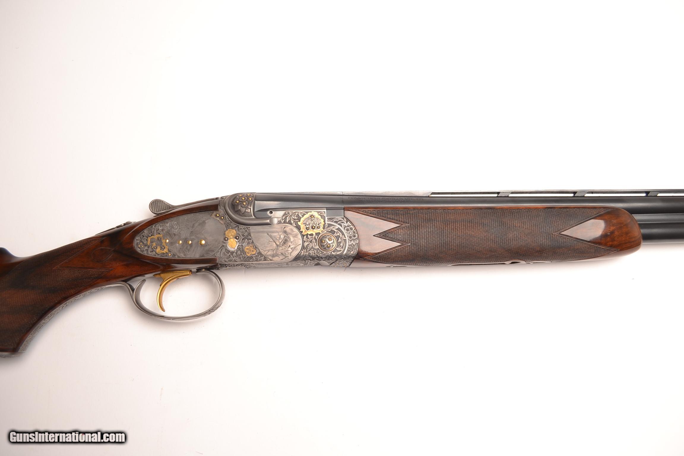 Description: CSMC A10 Exhibition Grade - 20ga. 30” barrels with screw in choke tubes, highly figured exhibition Turkish Circassian walnut, capped Pistol grip with a long tang trigger guard, checkered butt, Tru-Oil finish, hunting forend, drop points, vent rib, automatic ejectors, automatic safety, single selective trigger, full sidelock shotgun with hand detachable locks. Inv# 31053 14 1/4” x 1 3/8” x 2 1/8” 6lbs. 2oz. $38,995.00 SOLD |