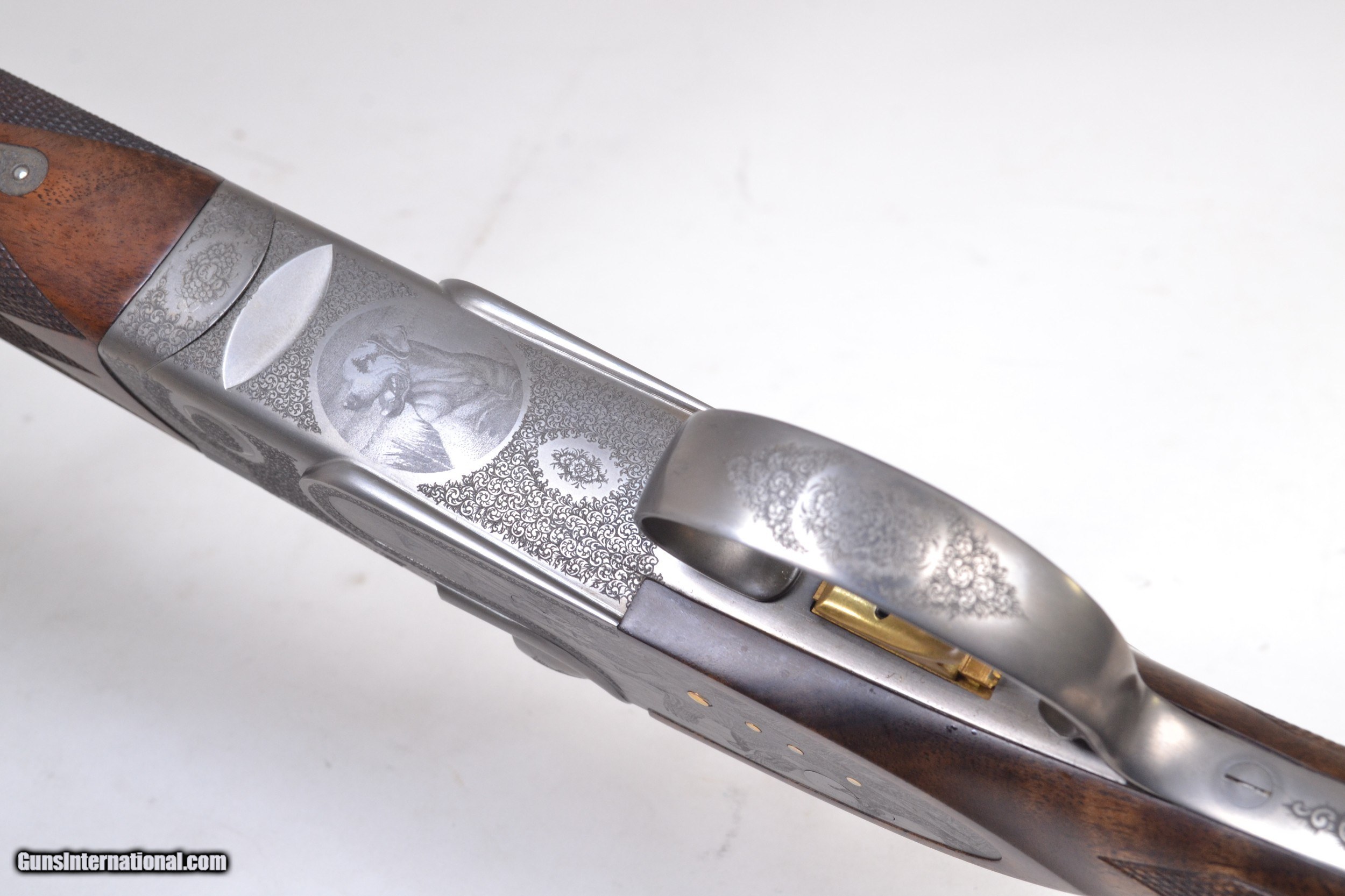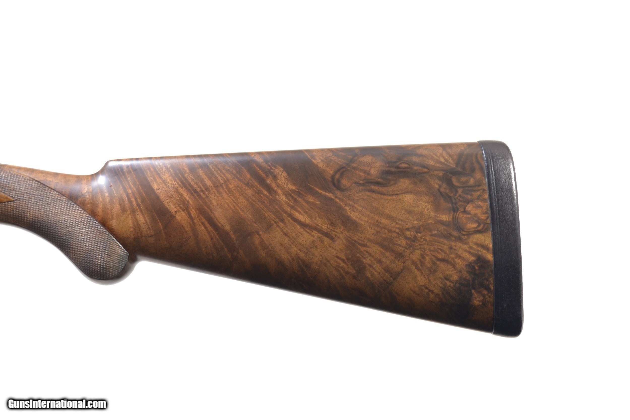 Description: CSMC - A10, Platinum, 28ga. 30” Barrels. Factory hidden screw in chokes, beautiful full feathercrotch American black walnut round grip stock with long tang, Truoil finish, field forend, automatic ejectors, automatic safety, single selective trigger, adjustable position trigger, Leather covered recoil pad, vent rib, full sidelock shotgun with hidden fastener hand detectable locks, incredibly elegant yet robust shotgun which Connecticut Shotgun has become known for, magnificent highly detailed bulino game scenes of pheasant and quail surrounded by full coverage miniature scroll over a French grayed plasma nitride hardened finish, made in the USA by the finest gunsmiths in the world, if you desire the very best look no further. Base Price - $24,000.00, Options Include: Exhibition American Black Walnut - $900.00, TruOil Finish - $500.00, Leather Covered Pad - $550.00, Long Tang - $700.00, S&H - $50.00.00. Cased, available for immediate delivery, we take trades. Inv: 34448 6 lbs. 10 oz. 14 ¼” - 14 ¾” x 1 ½” x 2 3/8” $26,700.00 SOLD |