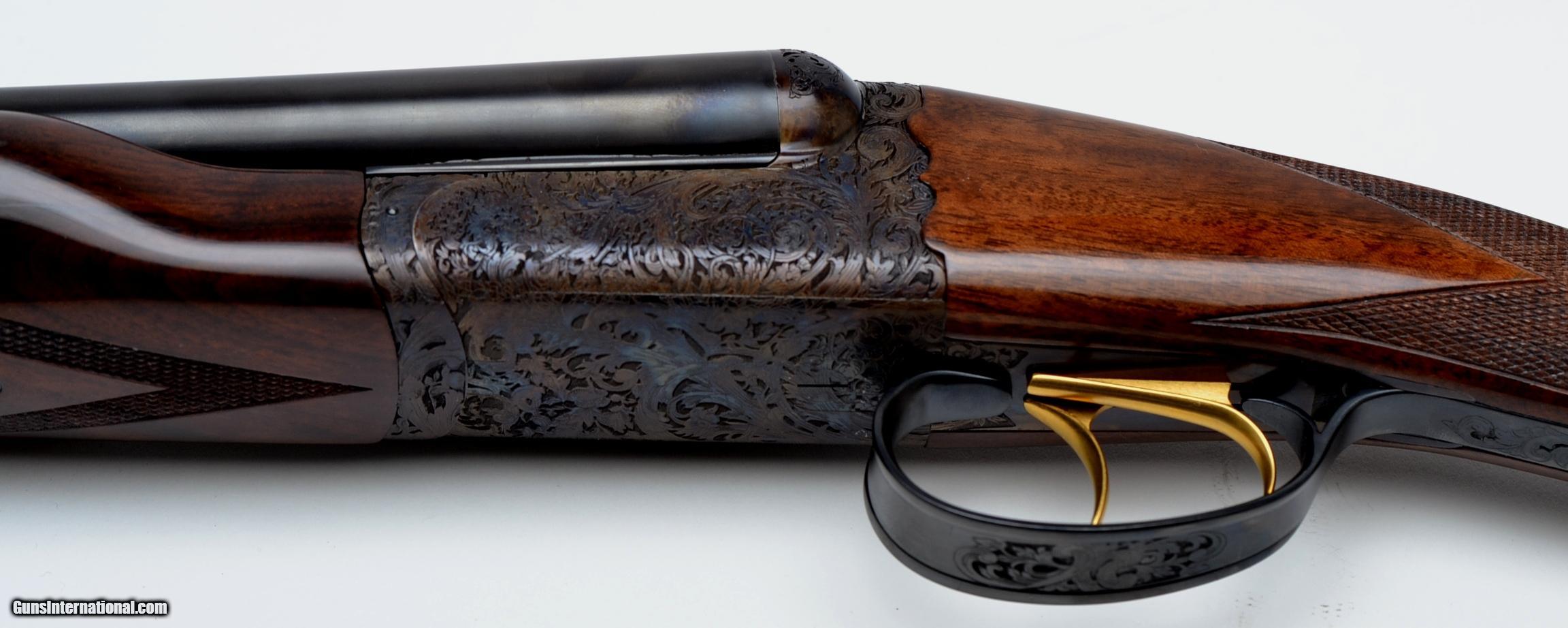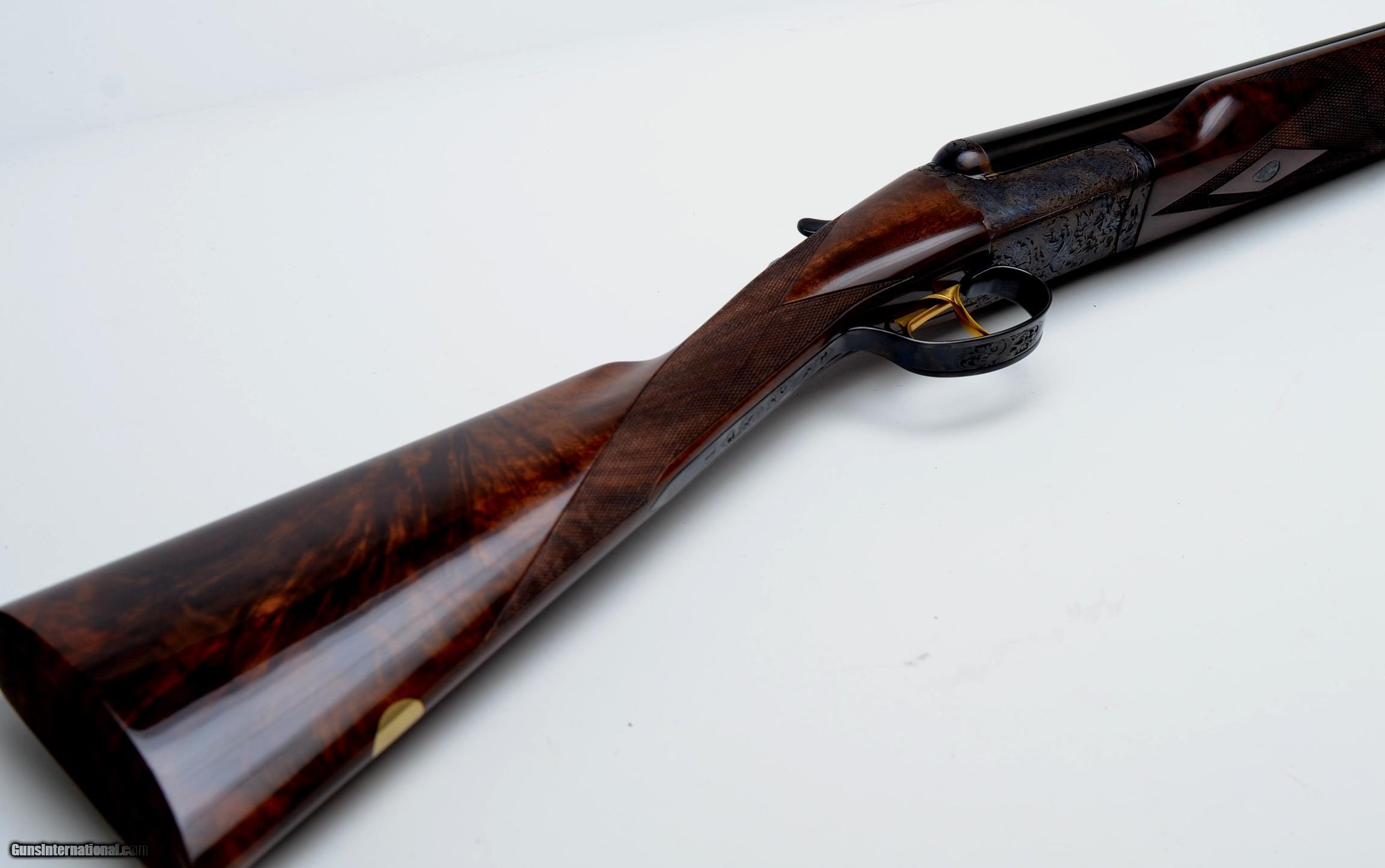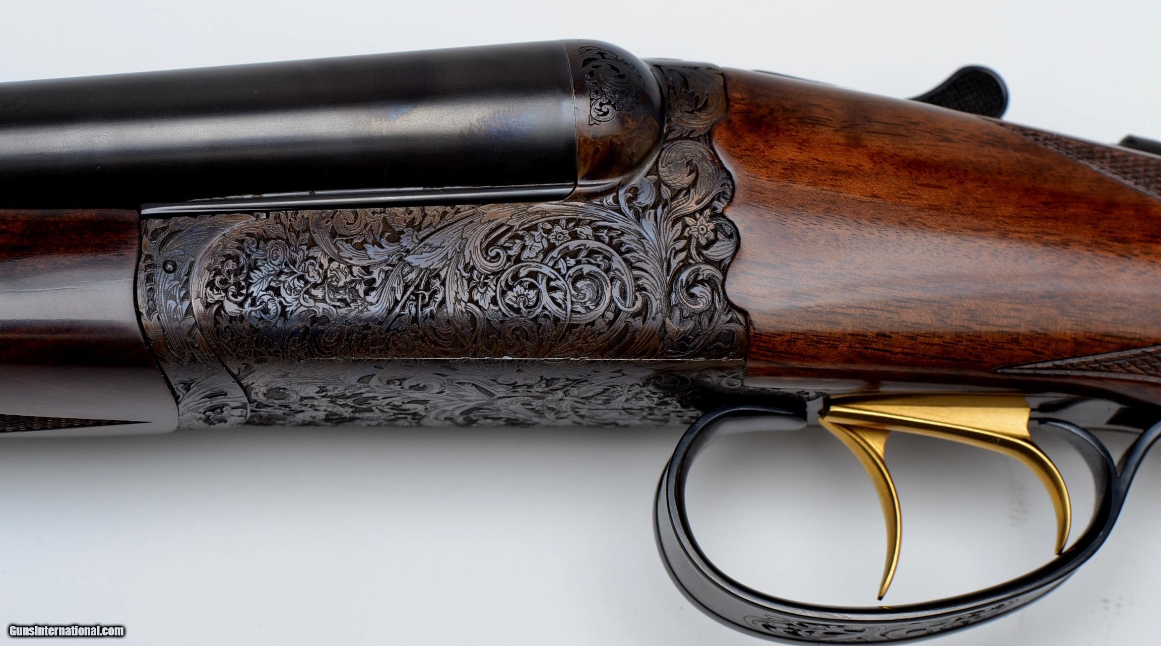 Description: CSMC Christian Hunter, 20ga., 30” barrel with TruLock choke tubes, a detachable floor plate, straight grip exhibition wood to a checkered butt, magnificently executed miniature Rose & Scroll engraving that has bulino details that is just at the highest level of very intricate Rose & Scroll pattern. Mind blowing piece of fully engulfed old growth black American walnut, feather crotch. Double Trigger, Auto Ejector, 3” chamber. This gun comes with a lifetime warranty designed and built by CT shotgun. Based on the true Anson & deeley system without any modern methods. This is a true high grade, handmade shotgun. Inventory # 37230 14 3/4" x 1 1/2" x 2 3/8" 6lbs., 4 oz $14,850.00 SOLD |