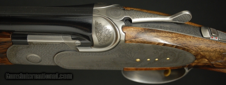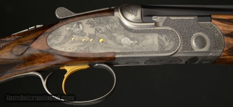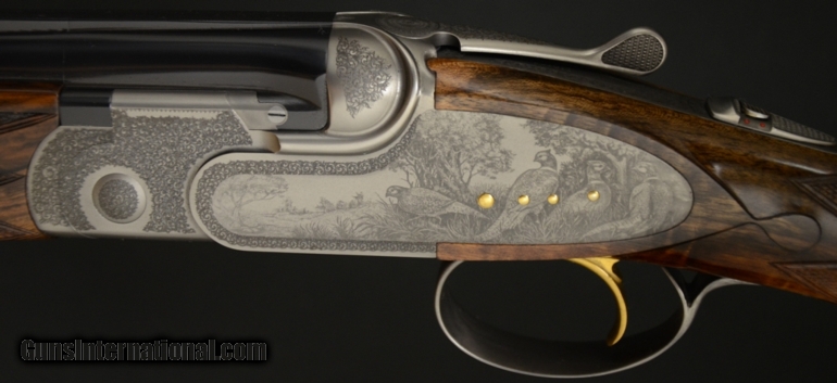 Description: CSMC- Christian Hunter- Platinum 20ga. 30” barrels with screw in choke tubes, the finest piece of exhibition Turkish walnut available, Prince of Wales long tang grip, drop-point stock, flat-top checkering, grip cap, checkered butt, hunting forend, gold oval, vent rib, automatic ejectors, automatic safety, single selective trigger, and many other unique features which are found on our new Christian Hunter guns, full side lock shotgun with hand detachable locks on the smallest, shallowest, lightweight frame available, receiver is engraved in miniature English scroll pattern with the very highest detailed Bulino engraving featuring pheasants on both lock plates and a Labrador on the bottom of the receiver, the frame is French grayed and plasma hardened, Base Price- $21,000.00, Small Frame- $500.00, Exhibition Turkish Walnut- $2,500.00, Custom Shop- $1,000.00, Flat Top Checkering- $1,500.00, Long Tang- $700.00, Checkered Butt- $350.00, Gold Oval- $350.00, S&H- $50.00.
