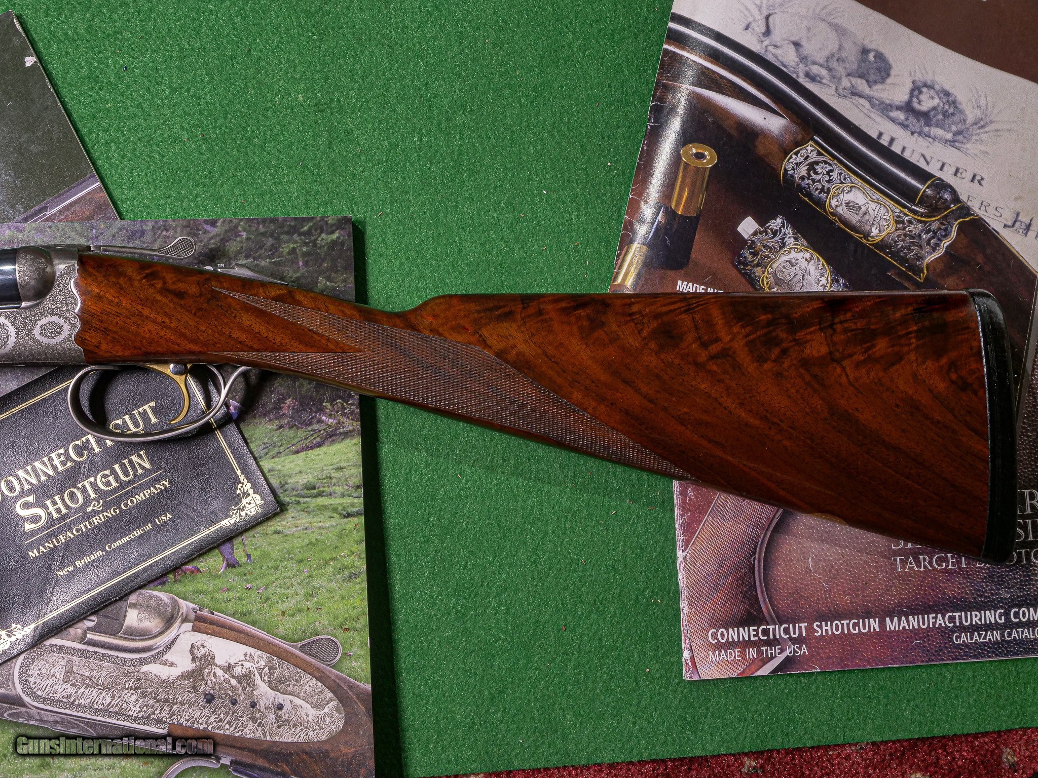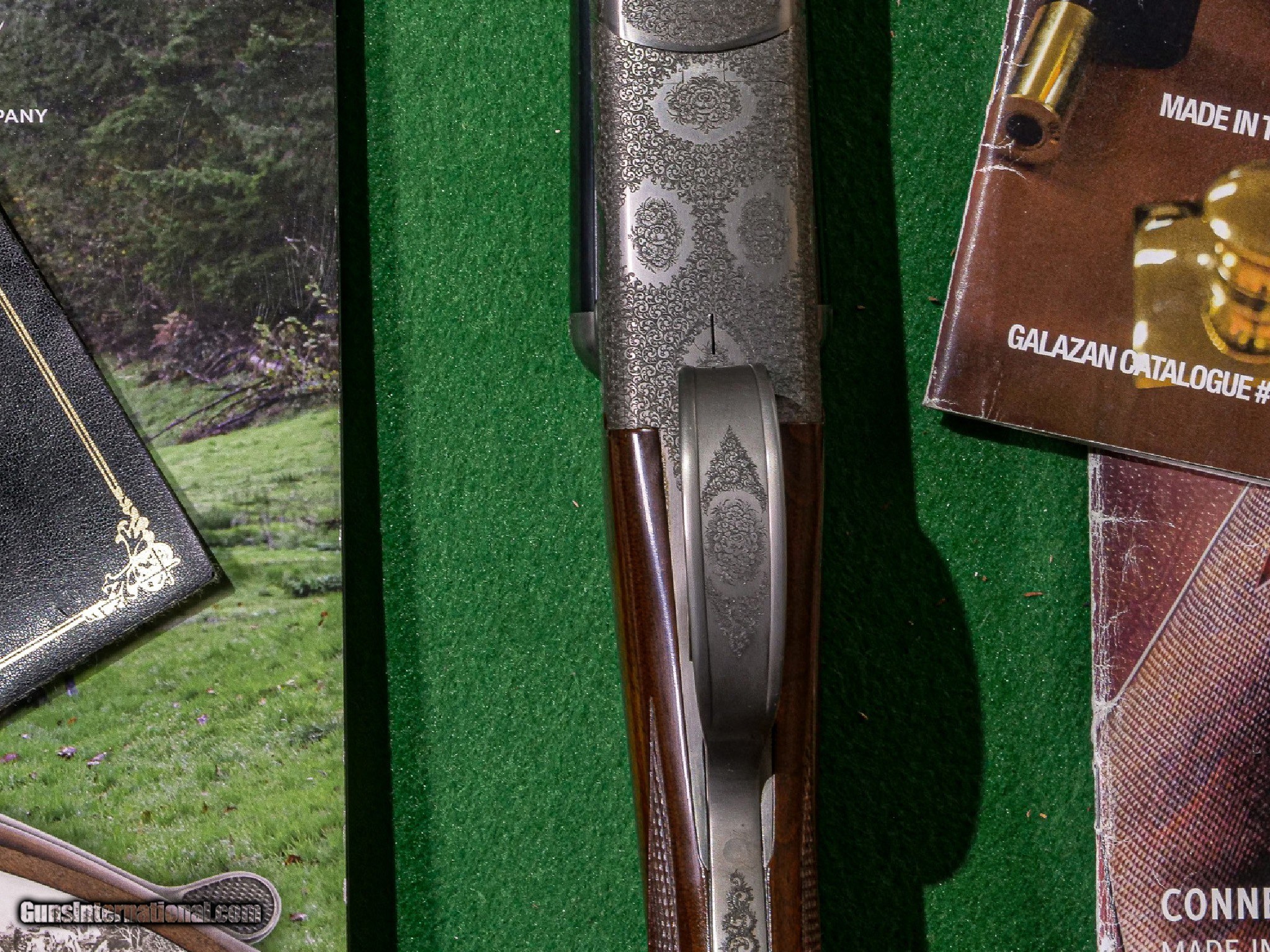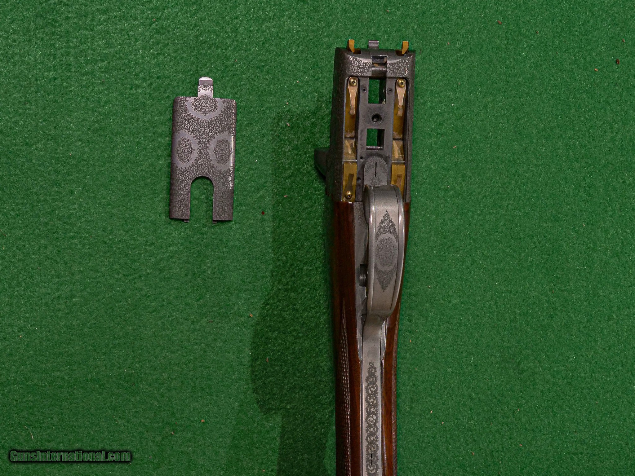 Factory hidden screw-in choke tubes, nicely figured American black walnut straight grip stock, TruOil finish, leather covered recoil pad, gold oval, long tang, single selective trigger, full coverage miniature rosette and scroll over a coin finish, beavertail forend, this gun comes with a lifetime warranty, available for immediate delivery.