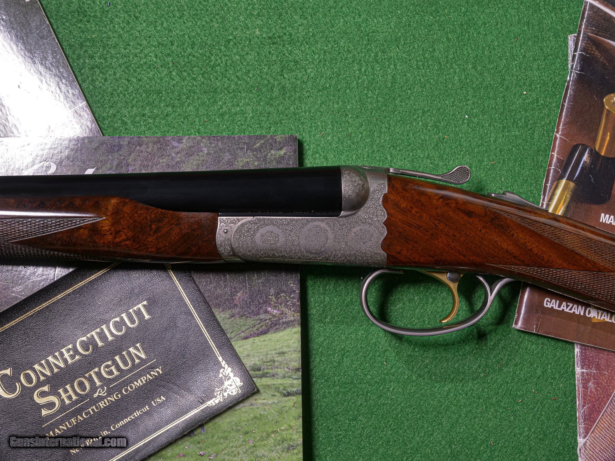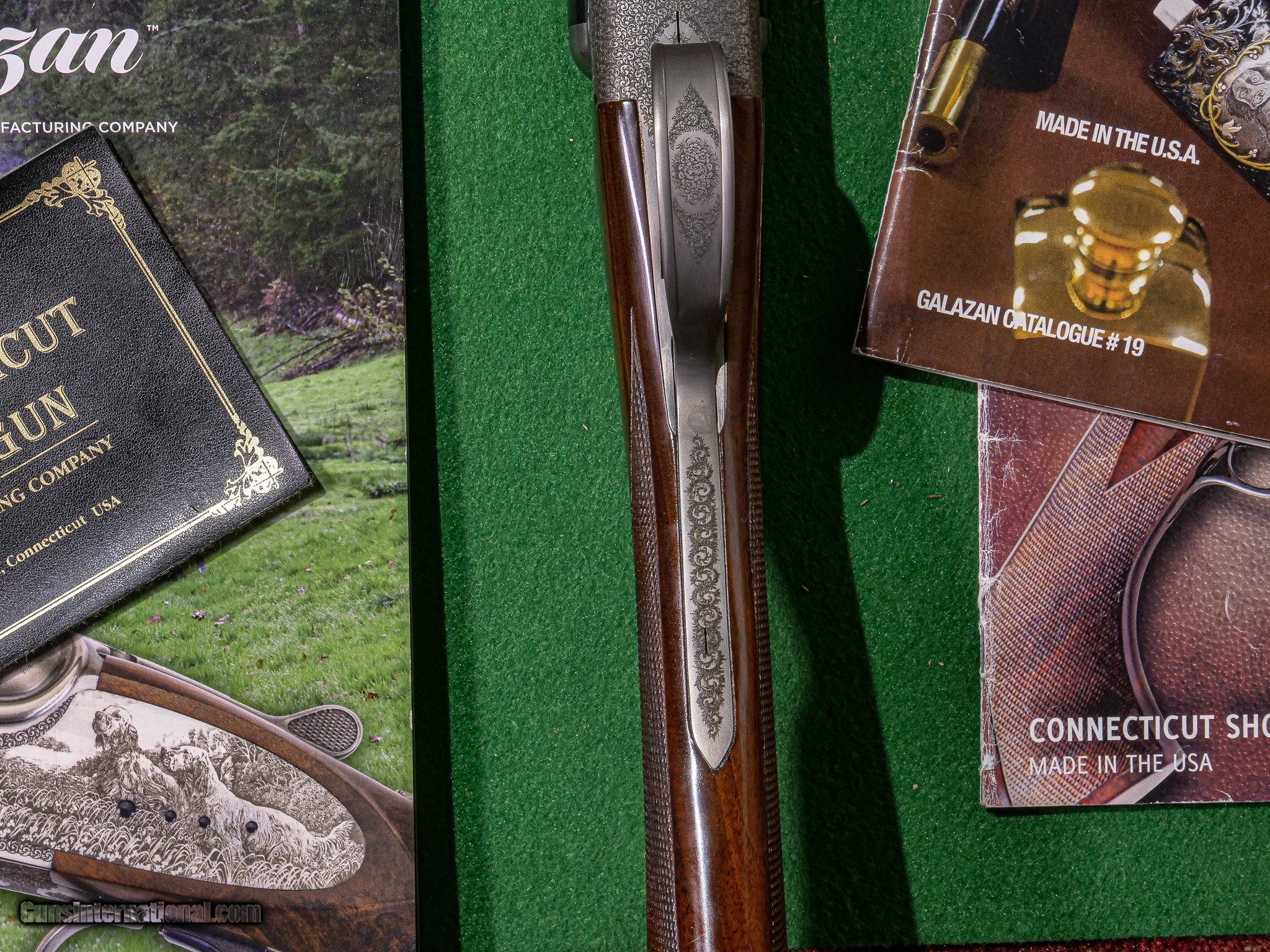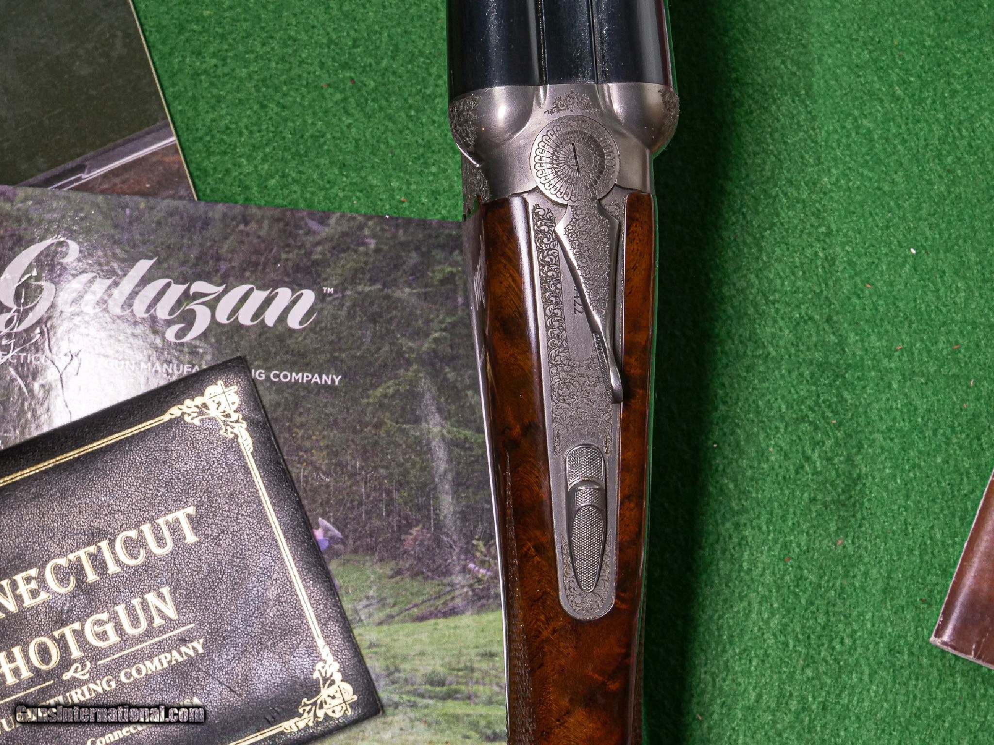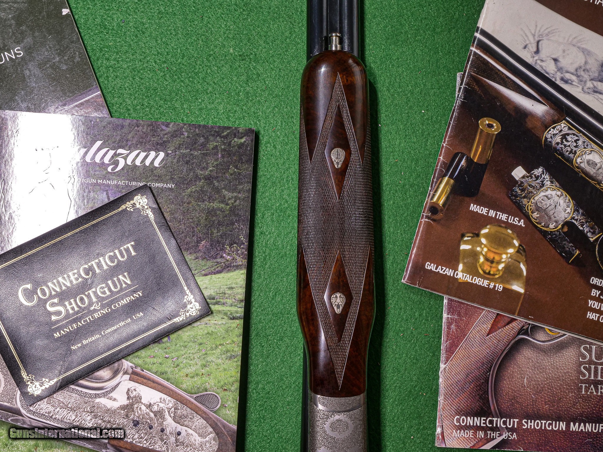 Factory hidden screw-in choke tubes, nicely figured American black walnut straight grip stock, TruOil finish, leather covered recoil pad, gold oval, long tang, single selective trigger, full coverage miniature rosette and scroll over a coin finish, beavertail forend, this gun comes with a lifetime warranty, available for immediate delivery.