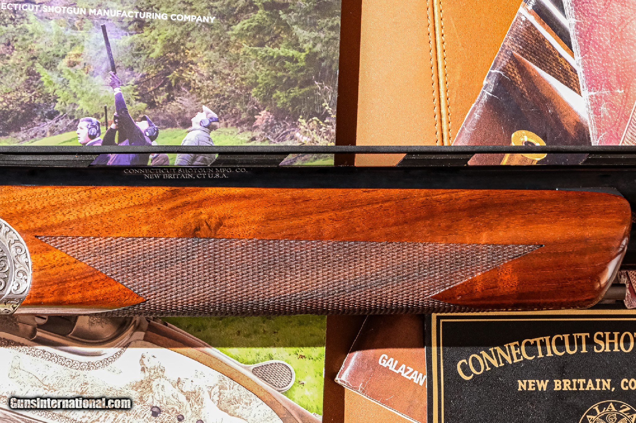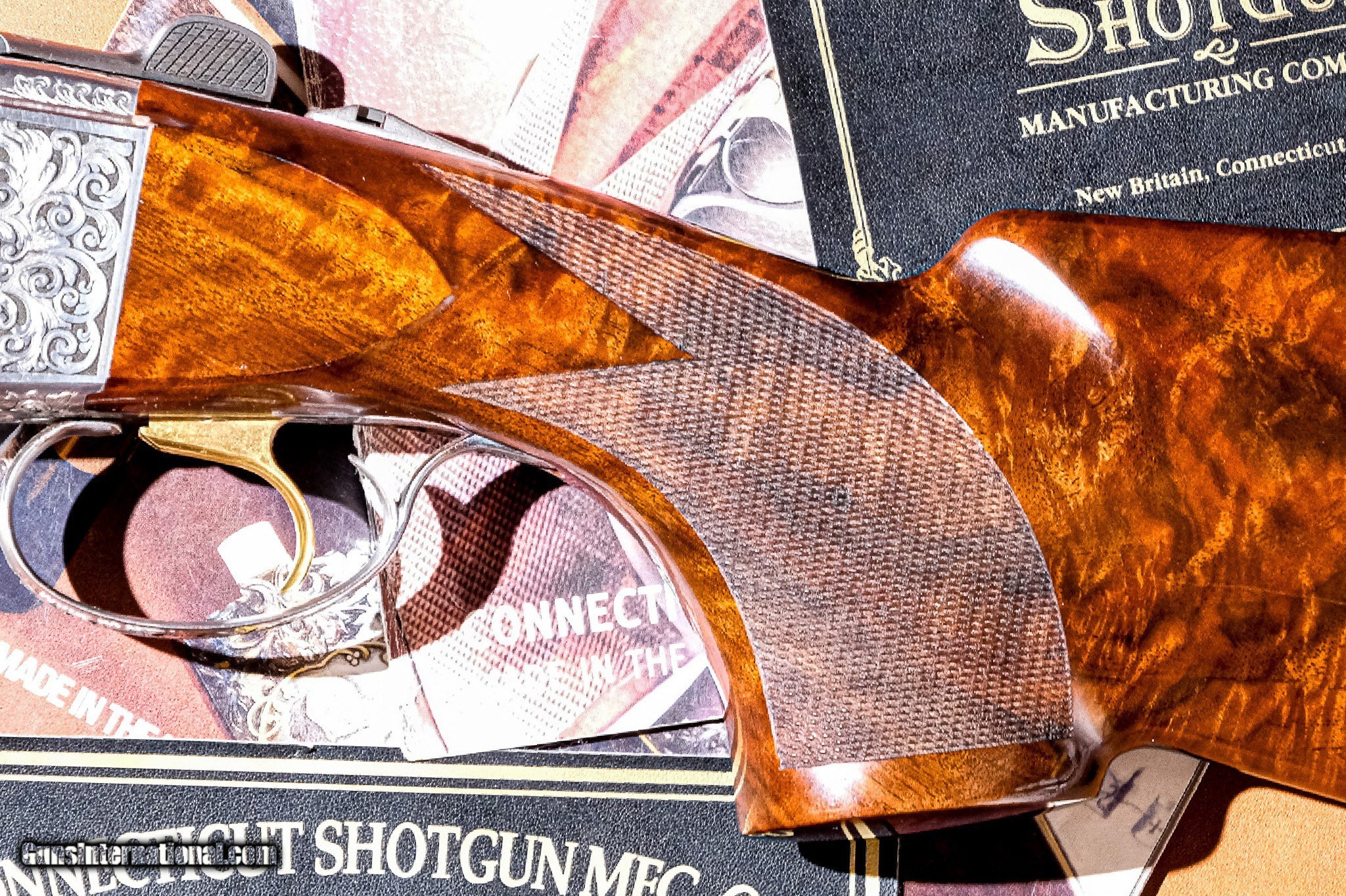 Description: CSMC - G1 Custom Scroll, O/U, Engraved By Bonsi, 12ga. 32" Barrels with Screw-in Choke Tubes. Target pistol grip, Galazan pad, heavily figured superb black walnut feather crotch. Engraved in Italy by Bonsi. Scroll with pheasant, setters, pointers, dogs all deep chisel engraved. High quality gun with exquisite scroll. There are many special-order features on this gun. The ultimate target gun. Warrantied for life to the original owner courtesy of Connecticut Shotgun. Inv: 86805 9 lbs. 0 oz. 14 ¾" x 1 ½" x 2 ¼" $13,500.00 We only sell direct; we use no dealers. You get the maximum value this way without any additional markup. All of our guns are made in the USA, in one facility, designed and built, with a lifetime warranty which no one else can offer. A dealer will sell you the gun he makes the most money on, which generally means less money going into the gun. Price: $13,500.00 Contact Seller |