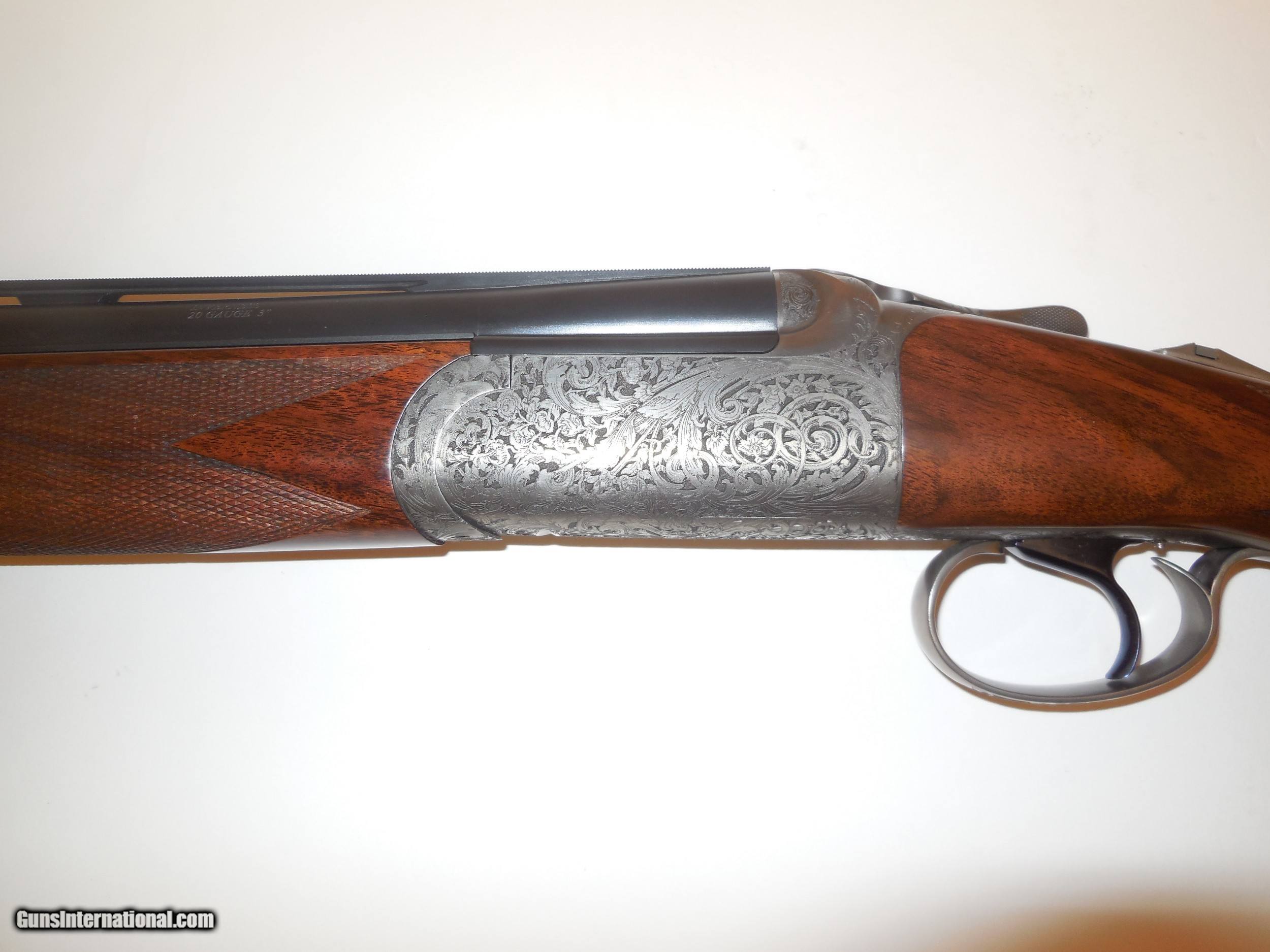 Description: Inverness – Deluxe Round Body, O/U, 20ga., 28” barrels, a round elegant, classic timeless design that is more than just the sum total of its parts, beautifully sculptured and elongated top and bottom tang, side ribs over the forearm, trigger plate action, file cut rib, TruLock chokes, gorgeous American Walnut, pistol grip stock, hunting forend, TruOil finish, Galazan thin red recoil pad, single selective trigger, Long tang trigger guard, automatic ejectors, automatic safety, vent rib, spectacular highly detailed ornamental engraving, the frame is French grey & plasma hardened. Available for immediate delivery. Base price - $12,500.00, options include: TruOil finish-$500.00, S&H - $50.00