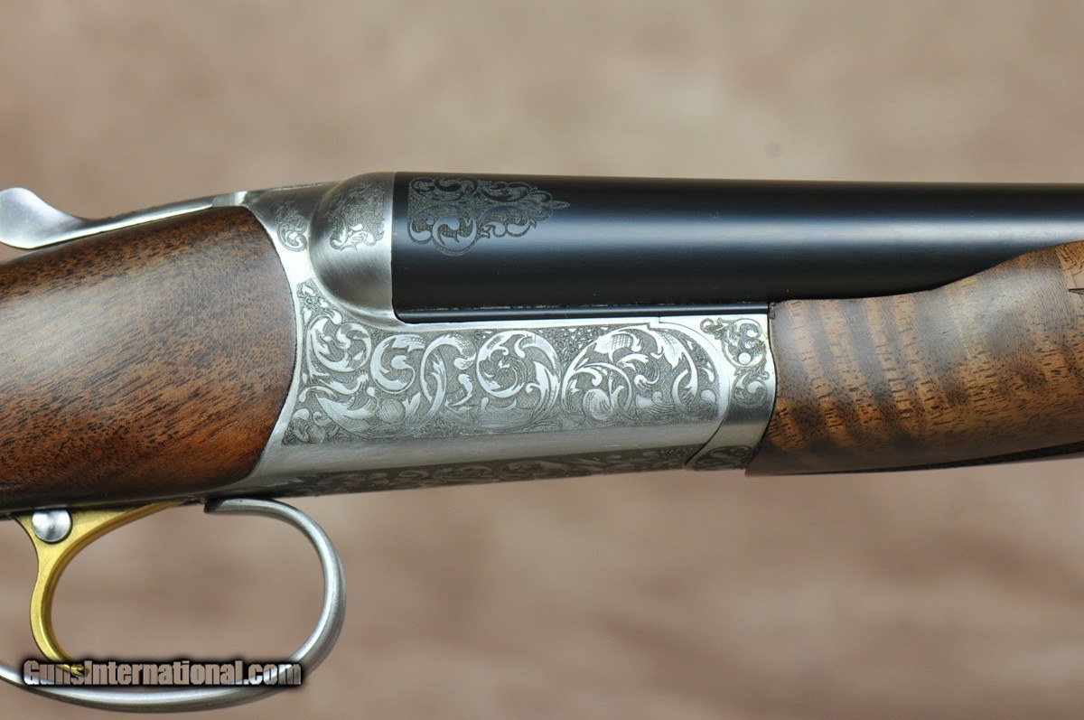 Description: Pre owned in "Like New" condition CSMC RBL launch 20 gauge. Features round action with nickel receiver. 28" Factory C/T barrels (4) chokes included. Flat concaved rib. Highly figure English stock with beaver tail fore arm. Stock dimensions are; 1 1/2' x 2 1/4". LOP 14 1/2". Over all weight 6 lbs 8 oz. Set includes factory hard case and accessories. Contact our Michigan location at 248-960-7262 for additional information. Refer to (081) SOLD |
