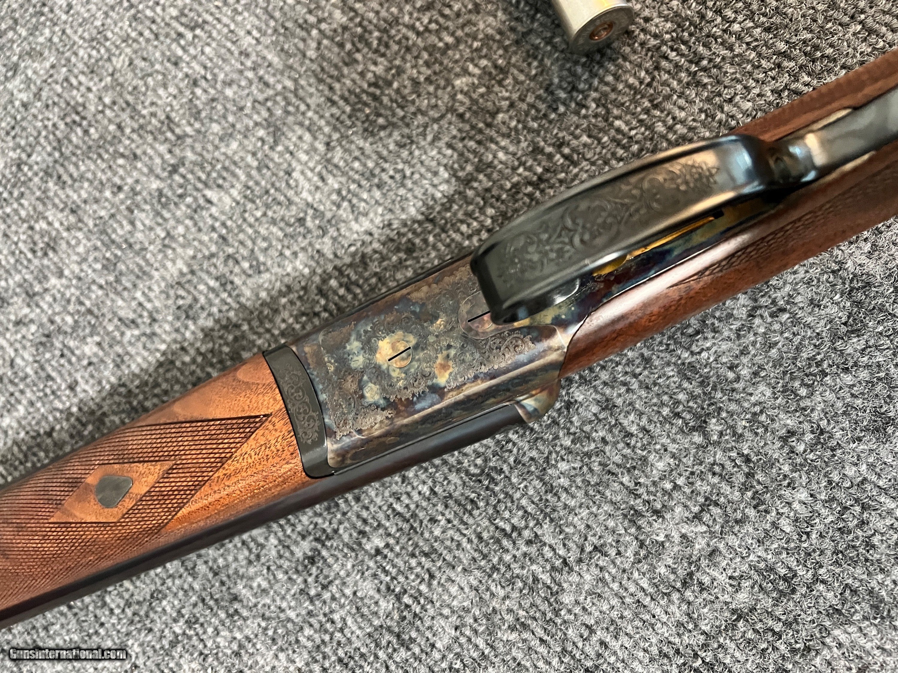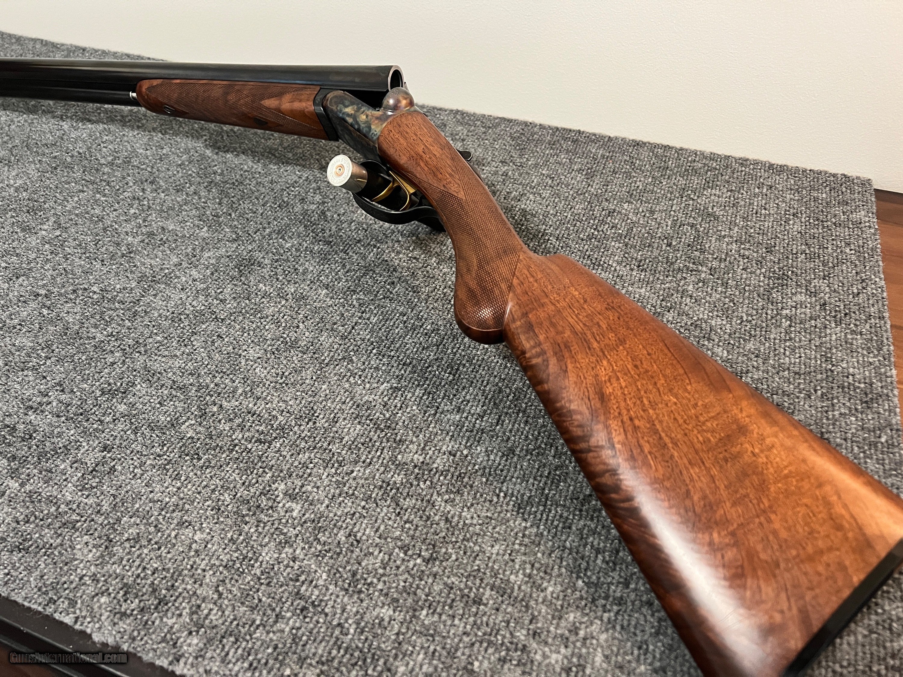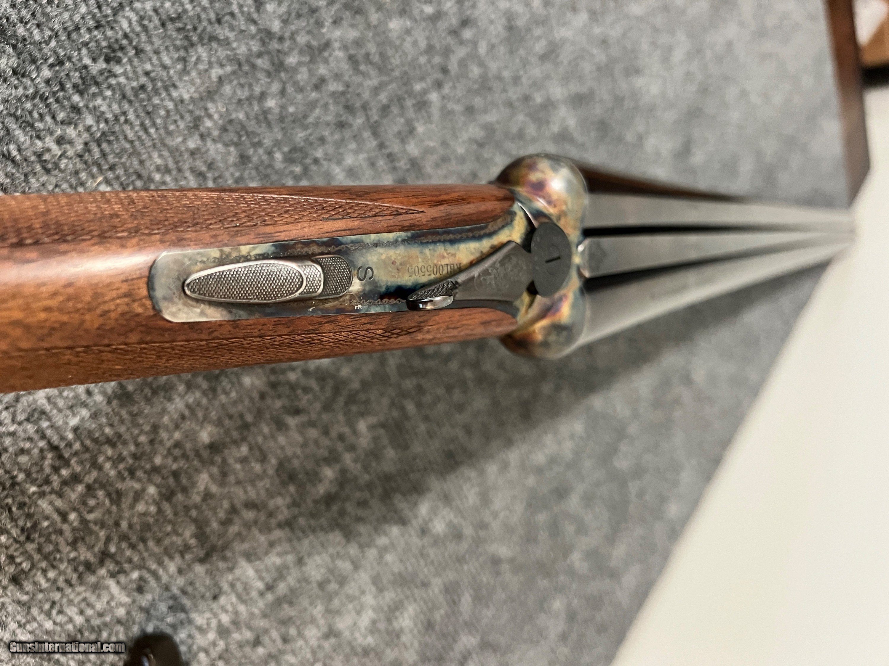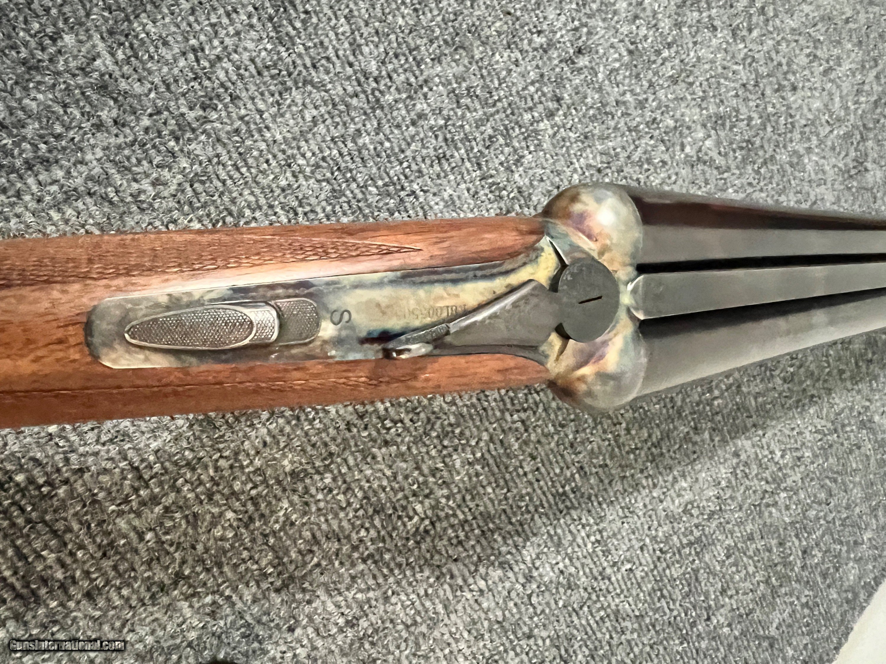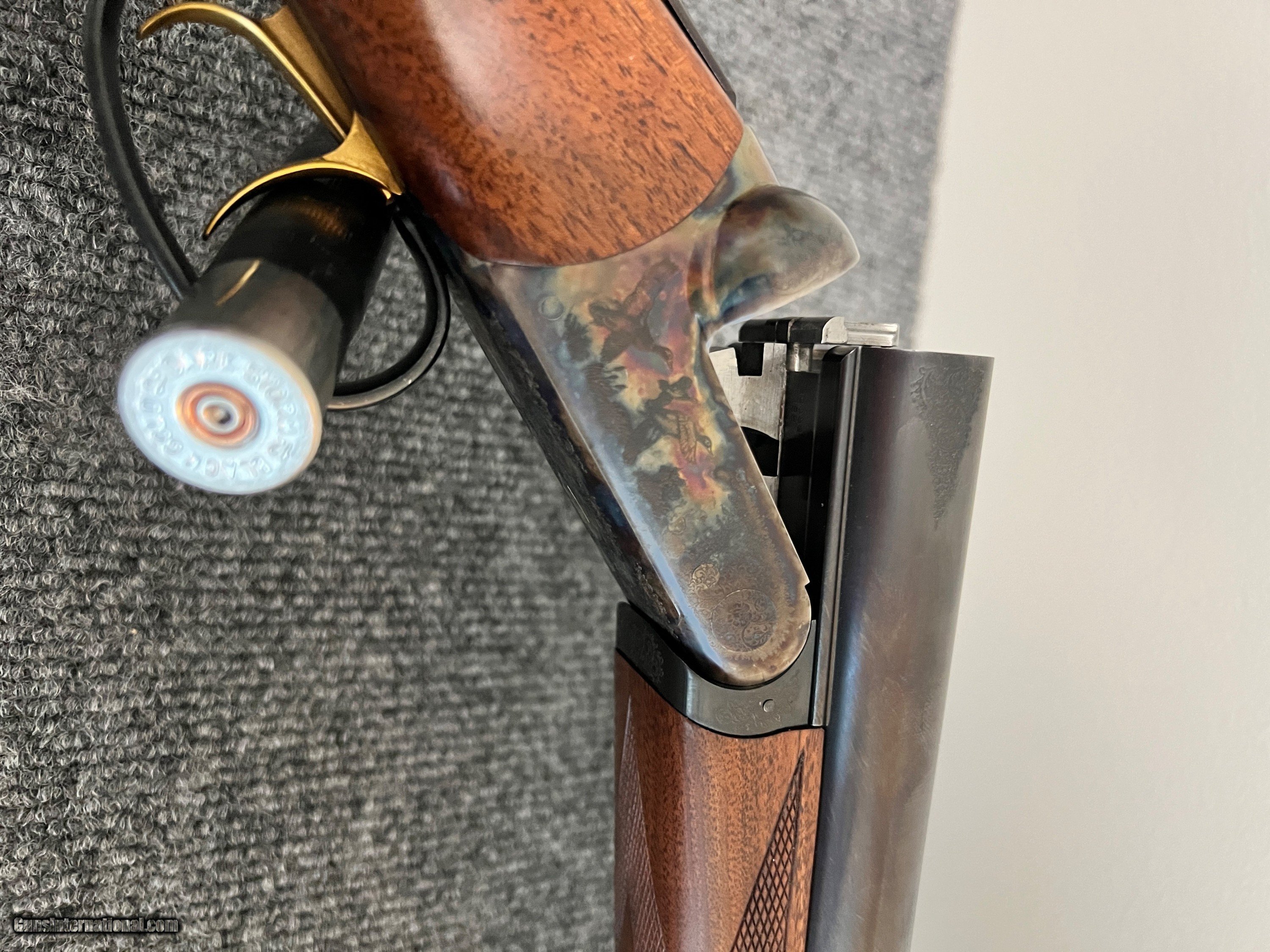 Description: As new CSMC RBL cased with 12 chokes. This would make a great sporting clays gun or perfect for Vintage style competions. Stock dimensions currently suit a taller person at 15 ¼ LOP from front trigger. DAH 2¼ DAC 1½ cast for RH. Weight I am guessing around 8lbs. The blueing at the muzzle is a bit light which maybe from the factory or is light case wear. This is an assisted opening gun that is a great addition. (Can be removed if required) Open to offers and trades for quality 28 or .410 over and unders Browning Beretta Rizzini or similar. SOLD Shotgun Gauge: 12 Gauge Manufacturer: CSMC Model: RBL Barrel Length: 30 Condition: As new Metal Condition: As new Wood Condition: As new Bore Condition: As new Triggers: Double Extras: 12 chokes Case: Yes Item Location: GA |