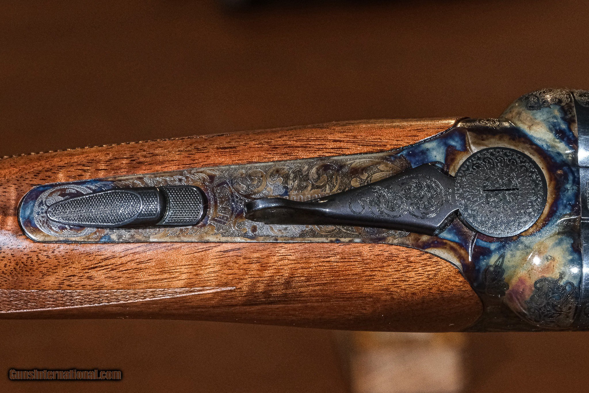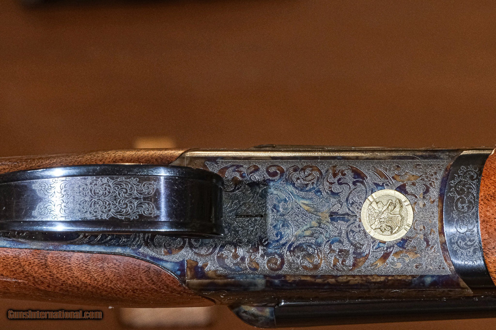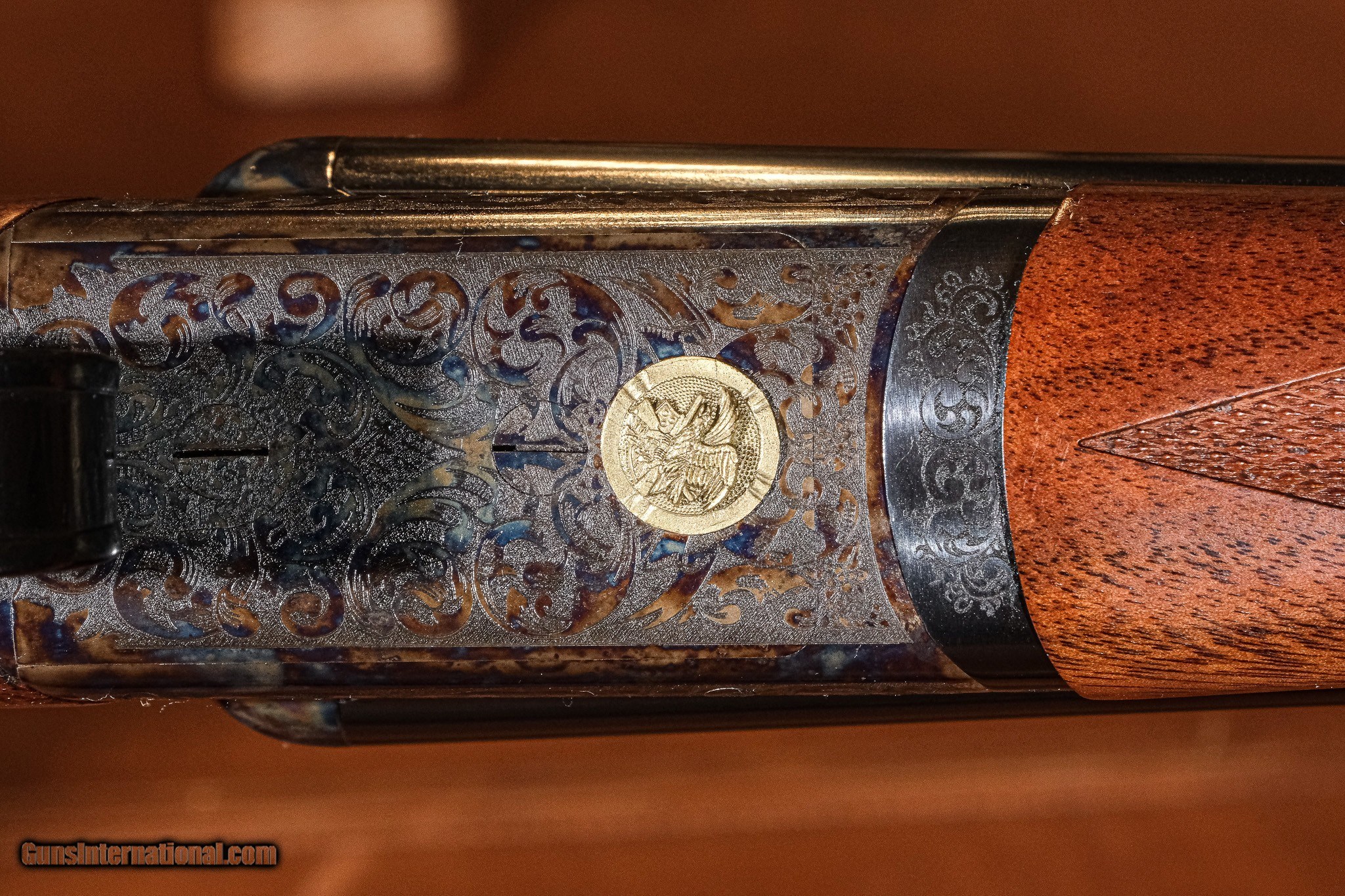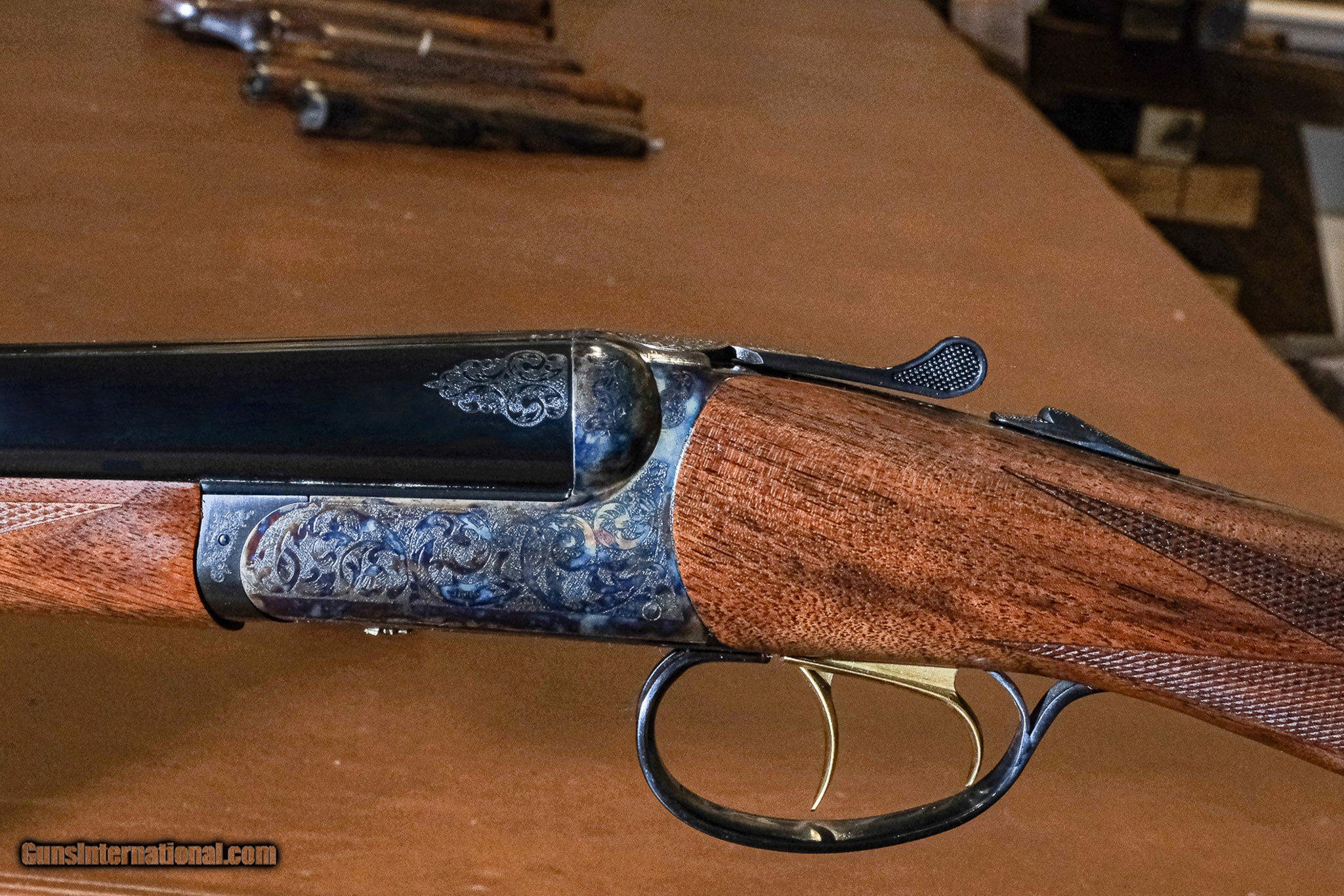 Description: RBL - SxS, NRA Edition, 20ga. 28" Barrels with Screw-in Choke Tubes. Straight grip, butt plate, 4x black walnut. NRA edition with logo on bottom of frame. Double rolled edge trigger guard, splinter forend, double trigger, 99% gun, reserve special ordered. Bone and charcoal case color, ornamental scroll engraving. 100% blue and wood finish. New unused gun. Inv: 69353 6 lbs. 3 oz. 14 7/8" x 1 5/8" x 2 ¾" $4,750.00 We only sell direct; we use no dealers. You get the maximum value this way without any additional markup. All of our guns are made in the USA, in one facility, designed and built, with a lifetime warranty which no one else can offer. A dealer will sell you the gun he makes the most money on, which generally means less money going into the gun. One thing we would like you to understand is that you are purchasing this gun directly from the manufacturer, which means huge savings when you consider the markup that distributors and dealers make. By the time you get the gun, the price is many times over the manufacturing cost. That money goes to your dealer and is not put into the product, or in most cases, a large advertising budget. Gun for gun, the value of our gun far exceeds anything in its price category. Nobody offers a lifetime warranty, and this is direct from the manufacturer straight to the original purchaser. Price: $4,750.00 Contact Seller |