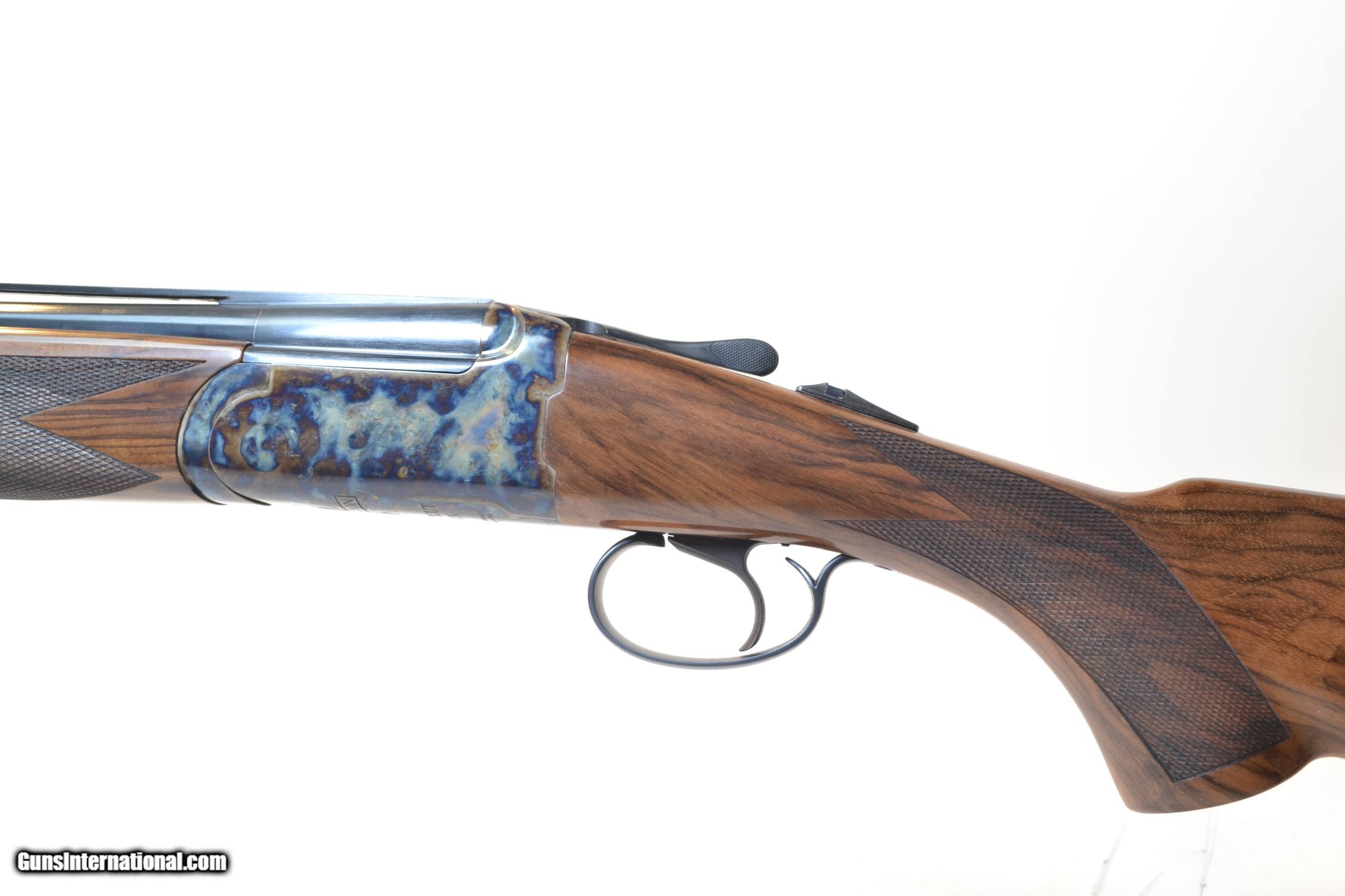 Description: CSMC - REVELATION 20g O/U ., 26” barrels, 5 screw in choke tubes (SK,IC,M,IM,F) Standard Walnut, pistol grip stock, high gloss finish, single selective trigger, automatic ejectors, automatic safety, vent rib, 3” chambers, spectacular bone & charcoal case coloring, excellent configuration. 100% brand new & unfired, available for immediate delivery. Inv# 45060 14 1/2” x 1 3/8” x 2 1/2” 6 lb. 0 oz. $1,995.00 Shipping to lower 48: $35.00 SOLD |