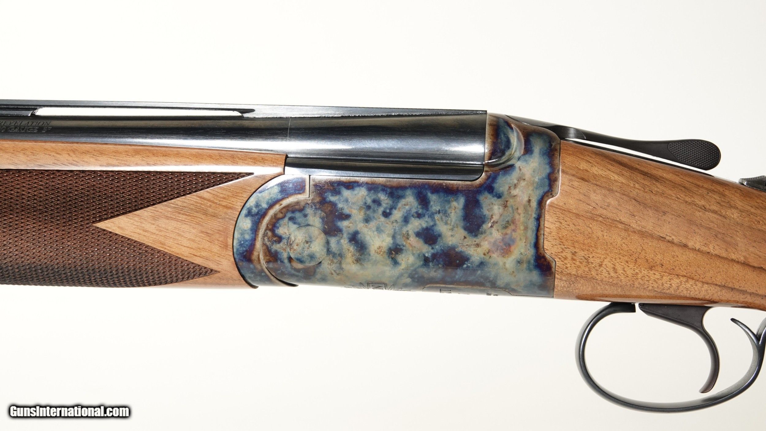 Description: CSMC - REVELATION 20g O/U ., 30” barrels, 5 screw in choke tubes (SK,IC,M,IM,F) Standard Walnut, pistol grip stock, high gloss finish, single selective trigger, automatic ejectors, automatic safety, vent rib, 3” chambers, spectacular bone & charcoal case coloring, excellent configuration. 100% brand new & unfired, available for immediate delivery. Inv# 46544 6lb. 4oz. 14 1/2” x 1 3/8” x 2 1/2” $1,995.00 Shipping to lower 48: $35.00 SOLD |