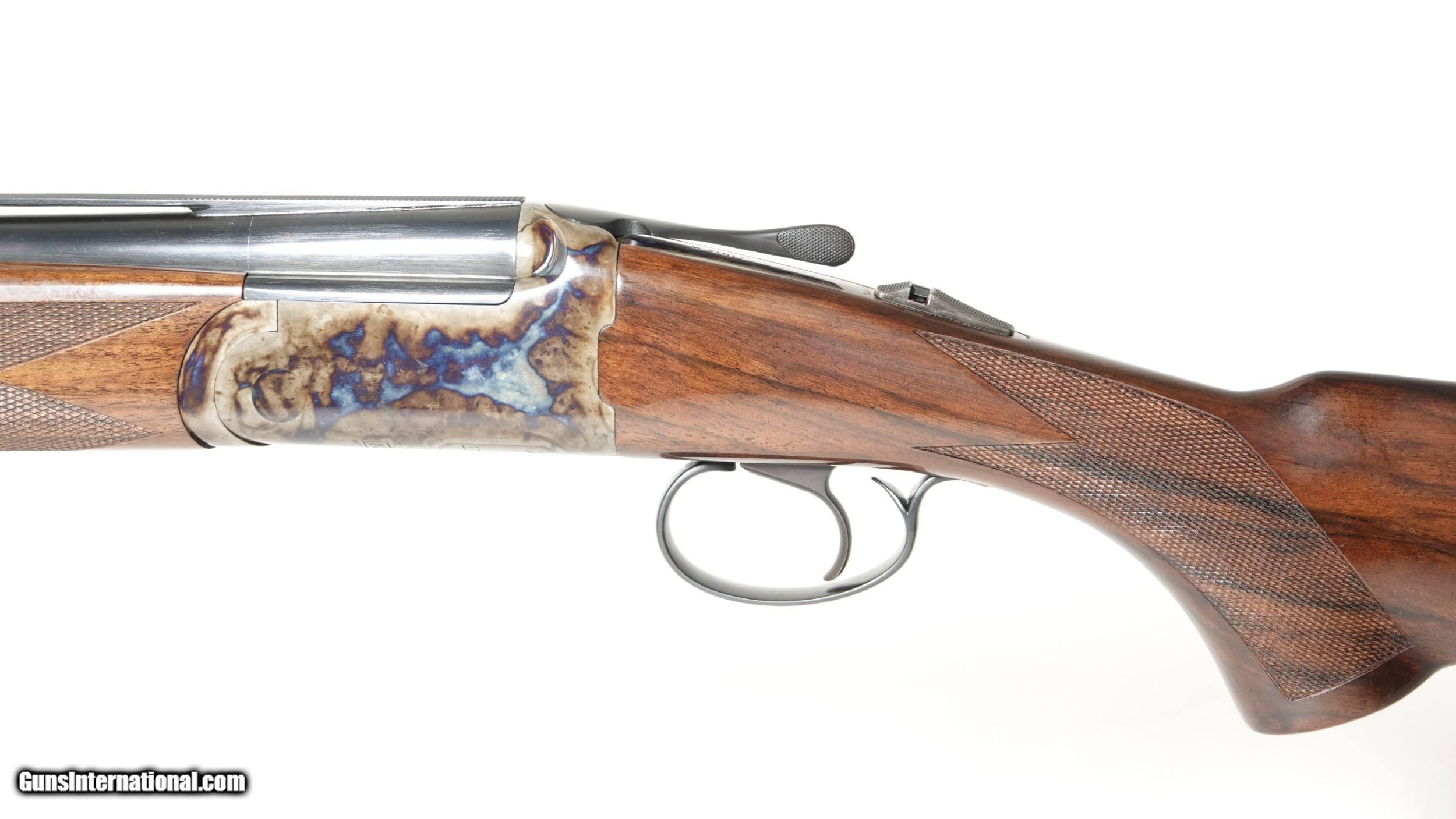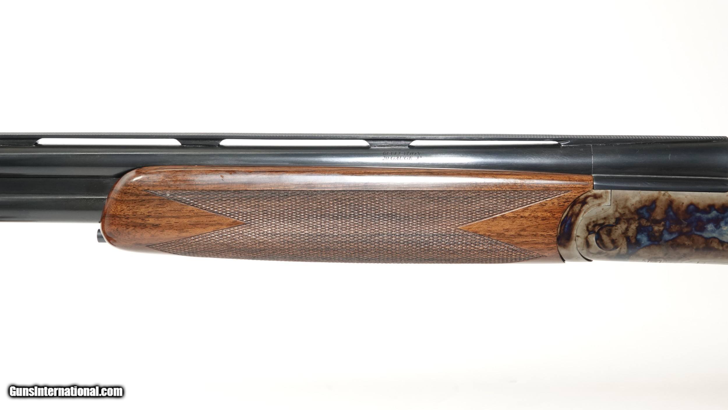 Description: CSMC - REVELATION 20g O/U ., 30” barrels, 5 screw in choke tubes (SK,IC,M,IM,F) Standard Walnut, pistol grip stock, high gloss finish, single selective trigger, automatic ejectors, automatic safety, vent rib, 3” chambers, spectacular bone & charcoal case coloring, excellent configuration. 100% brand new & unfired, available for immediate delivery. Inv# 46547 14 1/2” x 1 3/8” x 2 1/2” 6lb.6oz. $1,995.00 Shipping to lower 48: $35.00 SOLD |