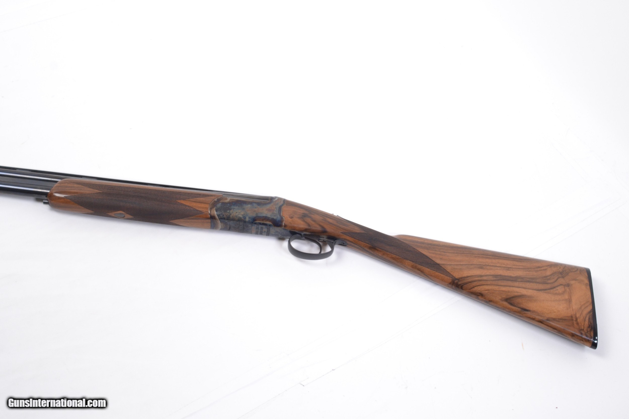 Description: CSMC - REVELATION 20g O/U ., 30” barrels, 5 Trulock choke tubes (SK,IC,M,IM,F) Deluxe Walnut, straight stock, high gloss finish, single selective trigger, automatic ejectors, automatic safety, vent rib, 3” chambers, spectacular bone & charcoal case coloring, excellent configuration. 100% brand new & unfired, available for immediate delivery. Inv# 44360 6 lb. 6 oz. 14 1/2” x 1 3/8” x 2 1/2” $2,345.00 Shipping to lower 48: $35.00 SOLD |