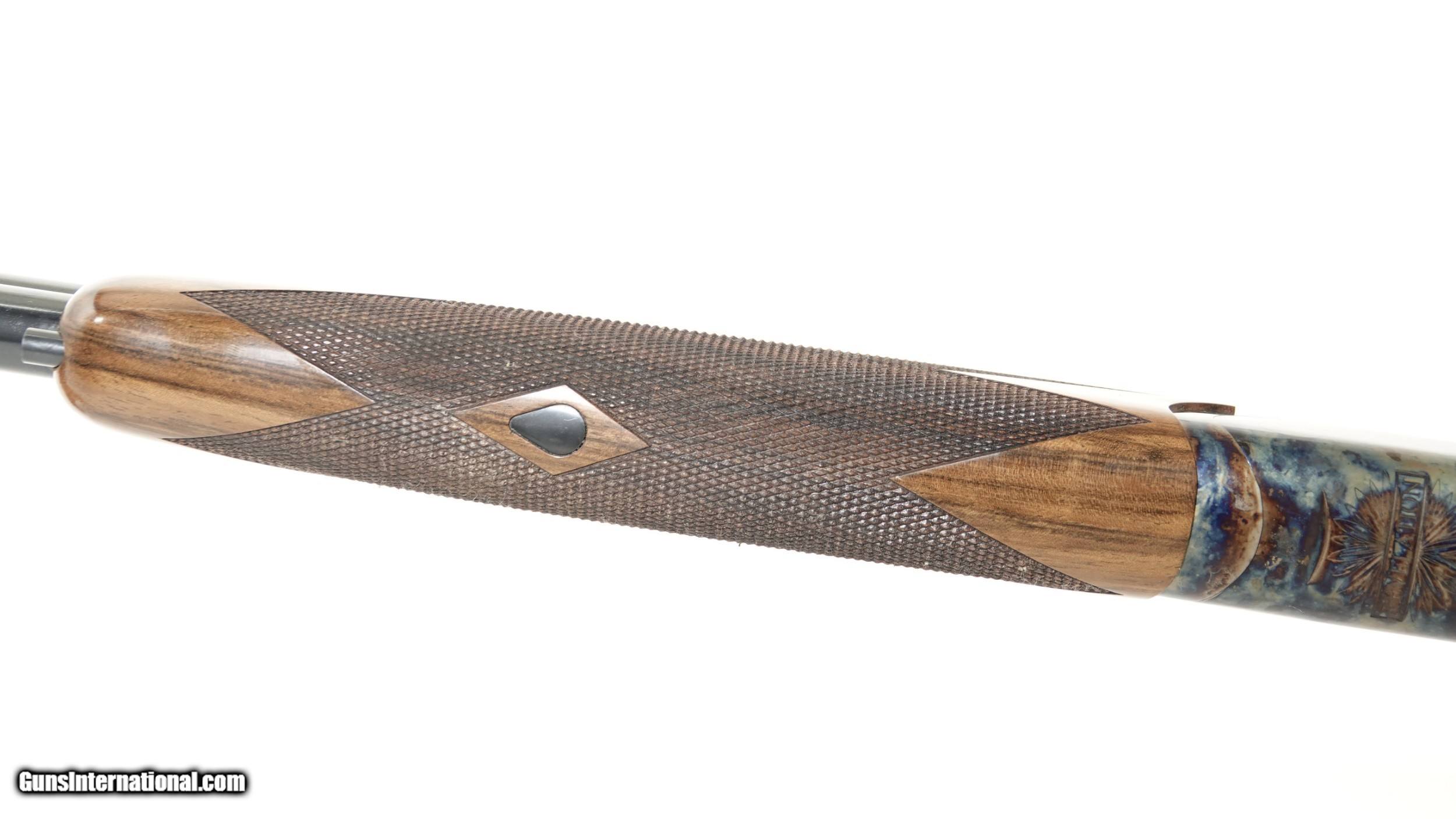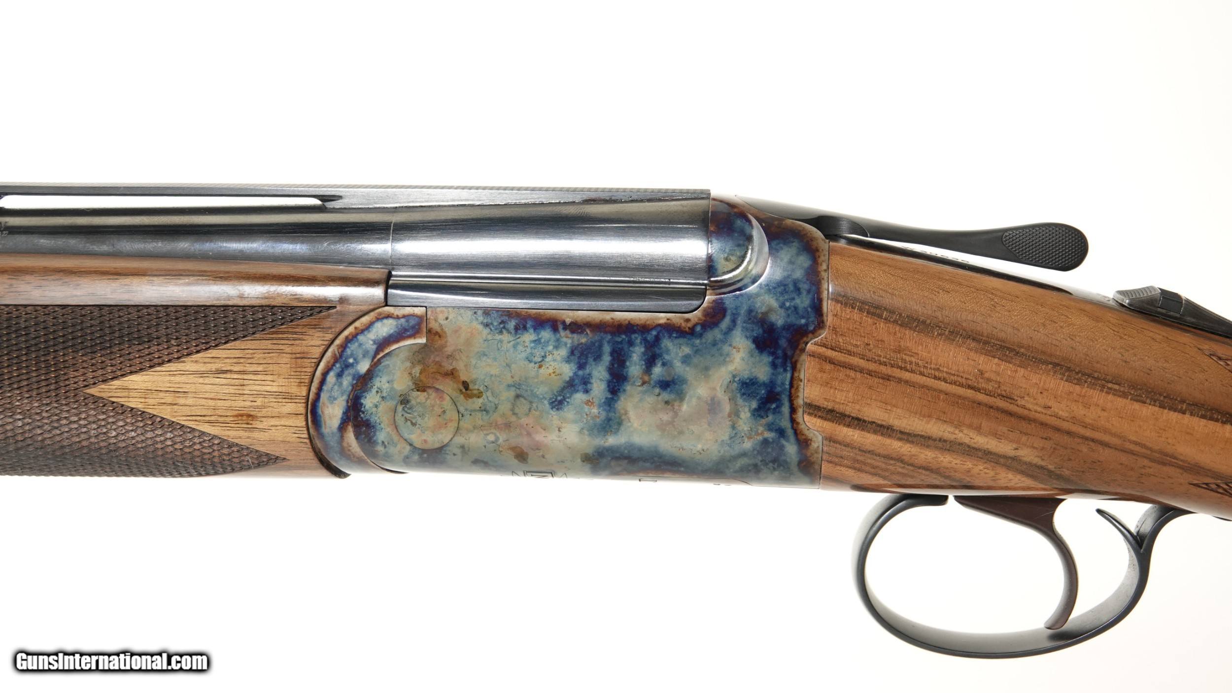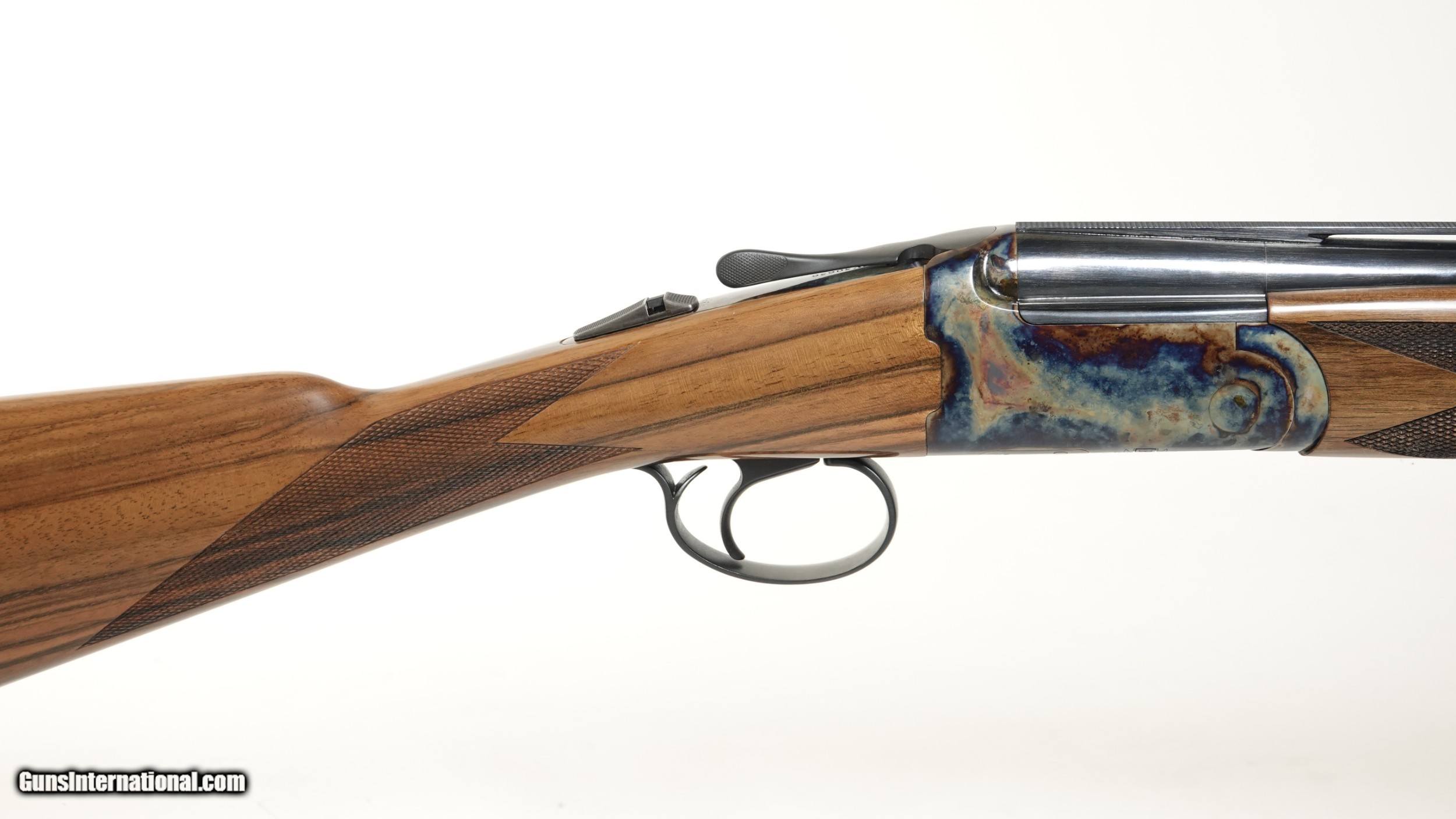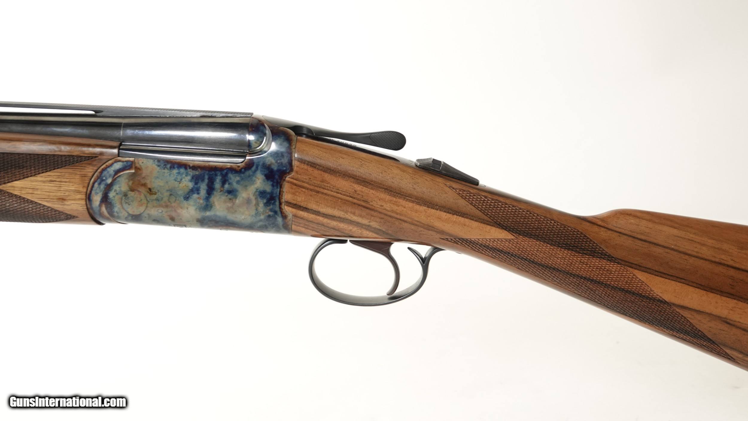 Description: Revelation - 20ga. 30” barrels with 5 screw in choke tubes (SK,IC,M,IM,F) Deluxe Walnut, straight grip stock, high gloss finish, single selective trigger, automatic ejectors, automatic safety, vent rib, 3” chambers, spectacular bone & charcoal case coloring, excellent configuration. 100% brand new & unfired, each gun is completely handmade in the USA by the finest gunsmiths in the world, available for immediate delivery. Inv# 46688 14 1/2” x 1 3/8” x 2 1/2” 6 lbs. 2 oz. $2,345.00 SOLD |