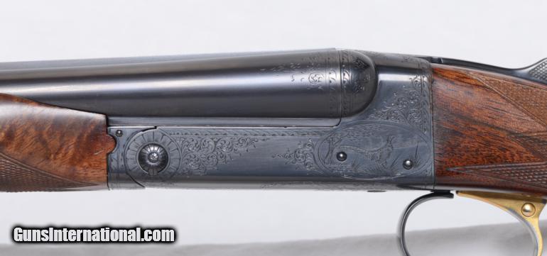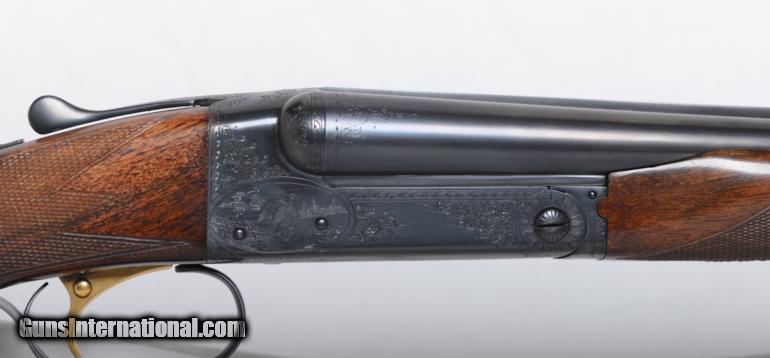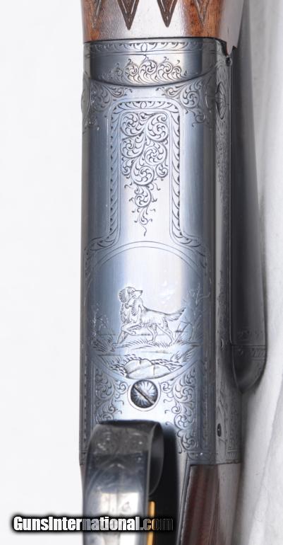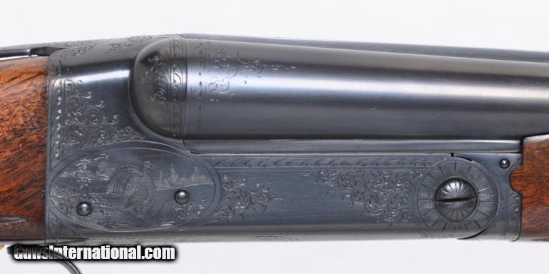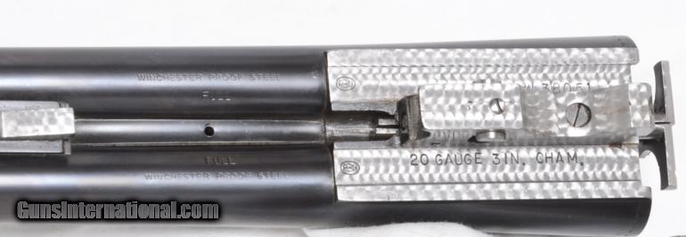 Description: SALE PENDING Winchester Model 21 20 gauge SxS shotgun by CSMC. This gun was factory engraved in an attractive Grade V pattern with fine scroll and vignette game scenes. The wood is fabulous. The barrels are 30” long and have F/F chokes measuring a true .030 and .030. The straight grip stock is 14 ¾” LOP over factory leather pad, 1 ½” DAC and 2 ¼” DAH with a neutral to slight LH cast. Weighs: 6 lbs. 15 oz. Factory take-down case. Serial number W38051 SOLD |