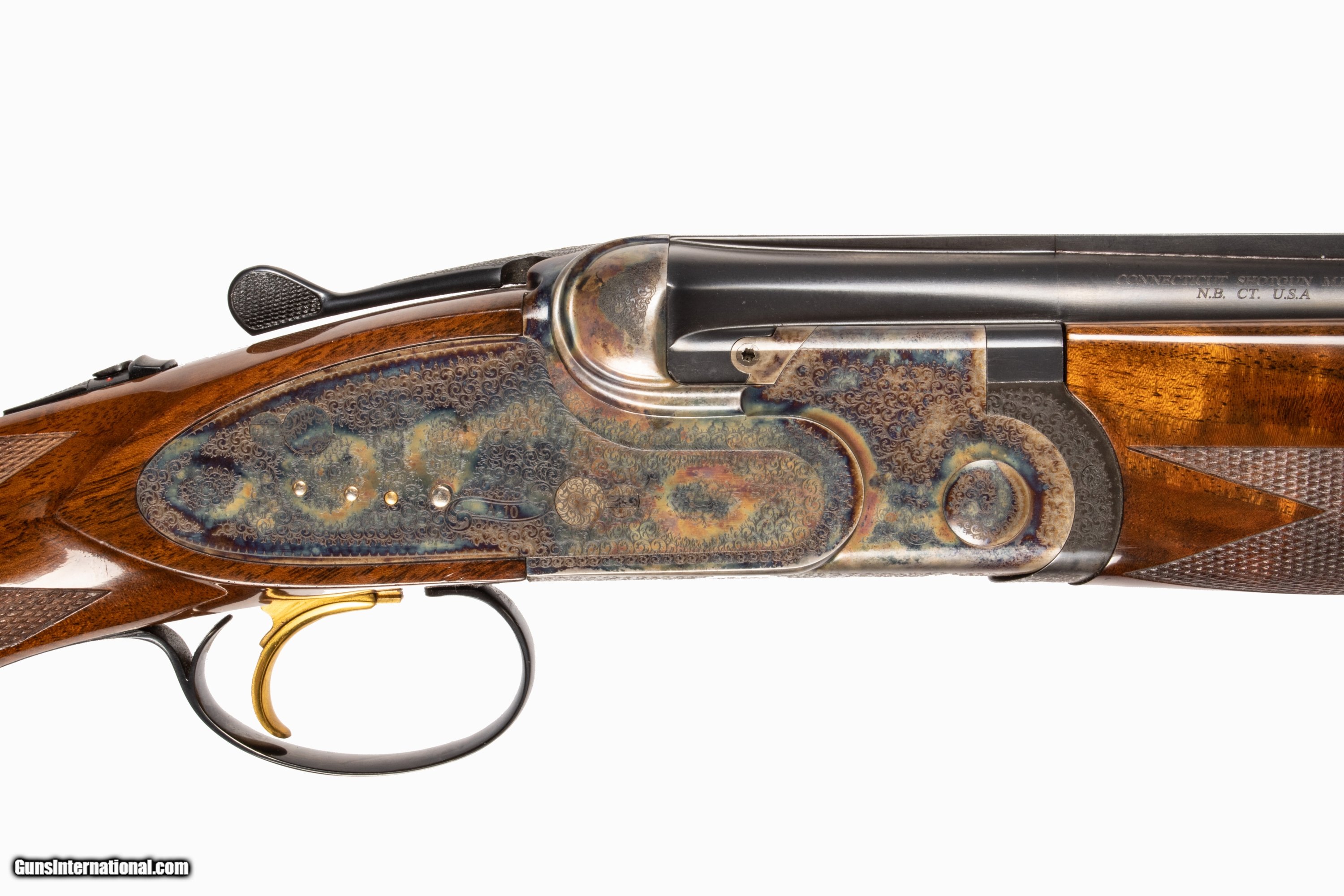 CT Shotgun Mfg A10 chambered for 3 inch 12 gauge shells with 32 inch barrels bright & shiny bore case screw-in chokes case hardened receiver & light scroll engraving walnut pistol grip stock and gold inlet numbering on the rib of the barrel and the top of the action release. This is a used firearm that is in excellent condition and is covered by Dury's Lifetime Warranty.