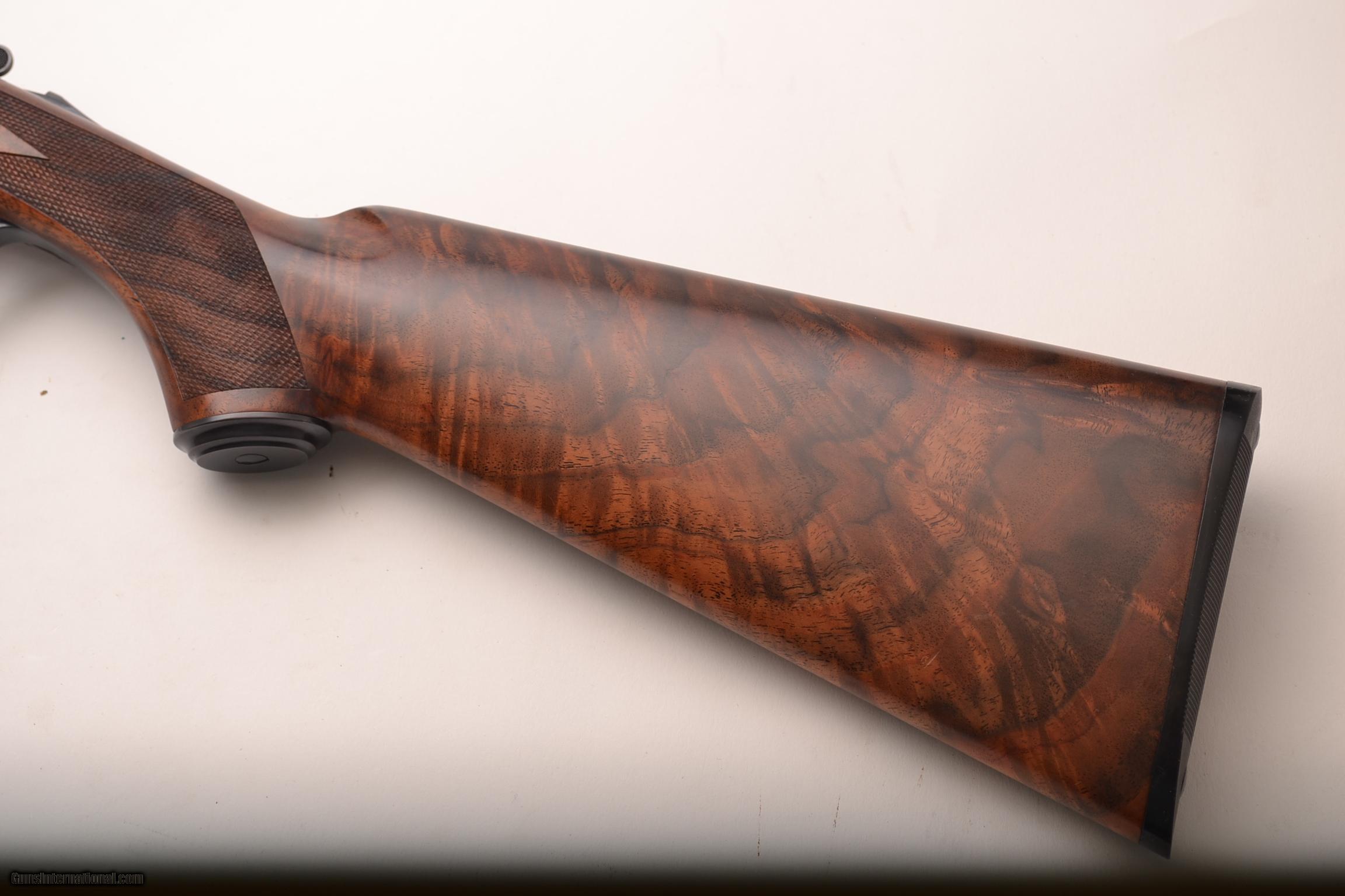 Description: RBL 20 - Rose & Scroll, 20ga., 30” barrels, , , solid game rib, Exhibition American wood, pistol grip stock, plastic butt pad, beavertail forend, single trigger, automatic ejectors, game scene engraving over spectacular case coloring. Base - $3,795.00, options include: SST $175, Beavertail $175, Exhibition American wood - $900, S&H - $50.00. Inv# 18874 6lbs. 8oz. 14 1/4” x 1 ½” x 2 3/8” $5,095.00 SOLD |