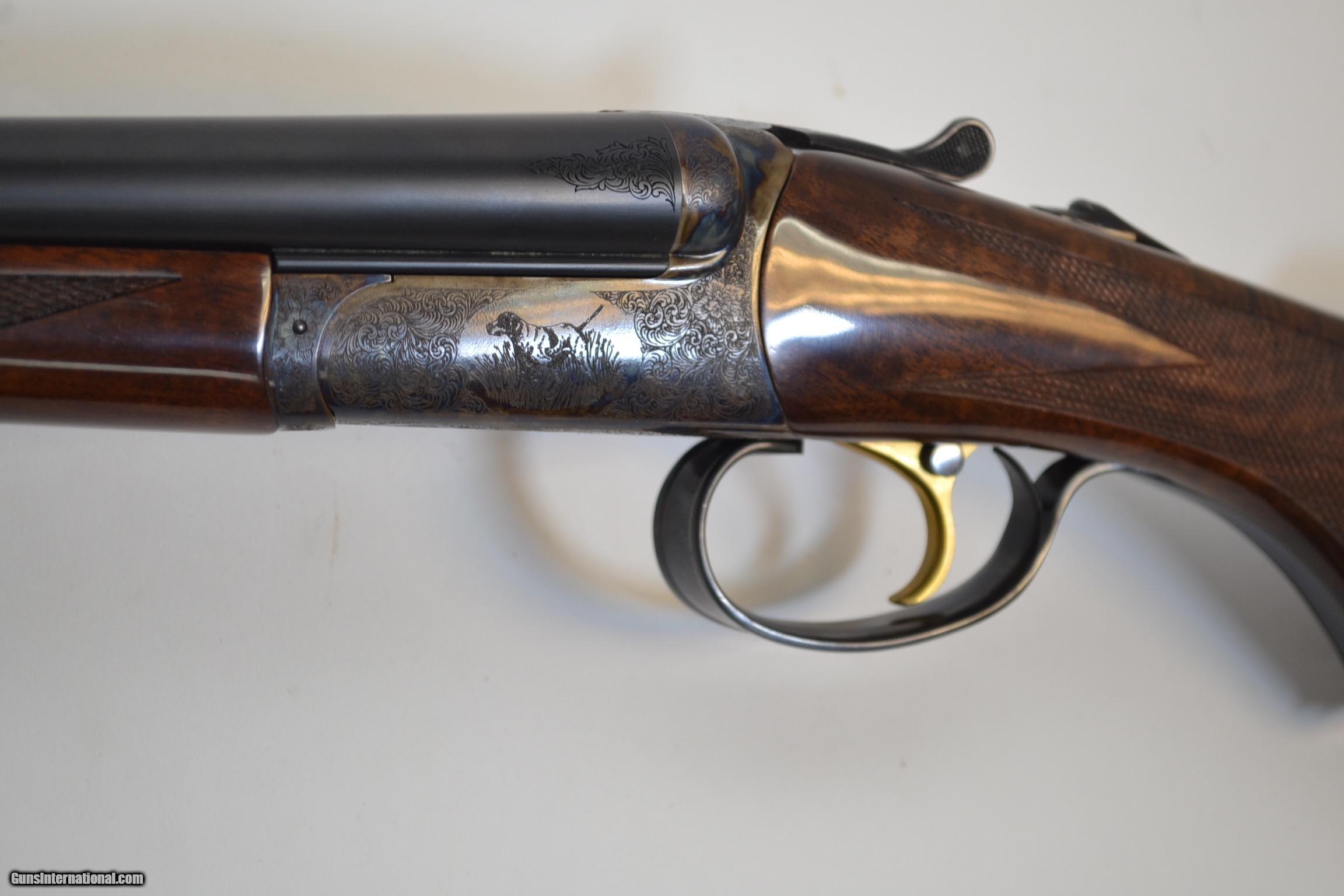 Description: RBL 28 - Reserve, 28ga, 26” barrels, Fixed chokes F/F can be adjusted for customer specifications, beautiful Exhibition grade American walnut pistol grip stock, Splinter forend, TruOil finish, hard butt plate, single trigger, automatic ejectors, automatic safety, solid game rib, dogs on point surrounded full coverage scroll engraving over magnificent case coloring, this model has very limited availability, 100% new and unfired available for immediate delivery, includes case and accessories. Base price - $4995.00, options include: Exhibition American wood - $900, SST $175, TruOil finish - $500, S&H-50.00.