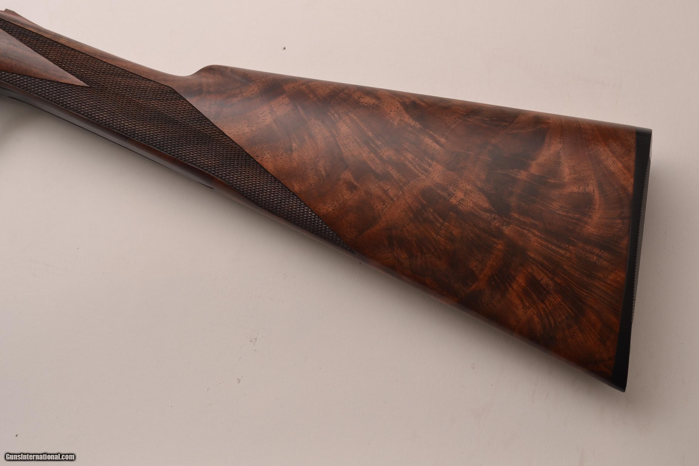 Description: RBL 28 - Rose & Scroll, 28ga., 26” barrels, fixed chokes, SK/IC, solid game rib, Exhibition American wood, straight grip stock, plastic butt pad, splinter forend, double triggers, automatic ejectors, game scene engraving over spectacular case coloring. Base - $4,995.00, options include: Exhibition American wood - $900, S&H - $50.00. Inv# 35606 6lbs. 4oz. 14 1/4” x 1 ½” x 2 3/8” $5,945.00 SOLD |
