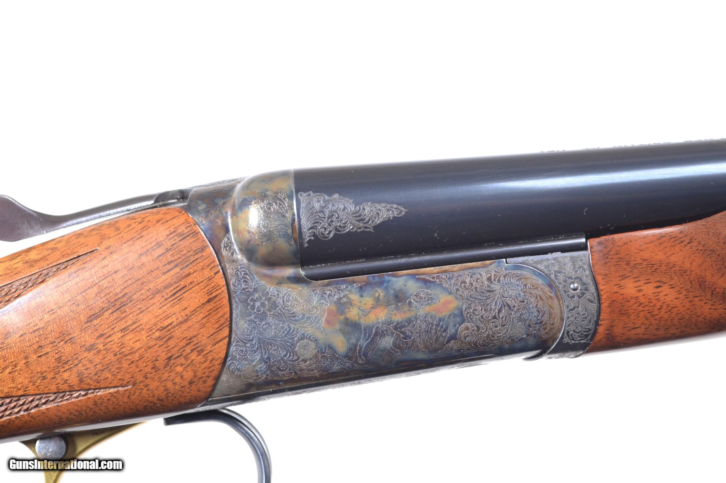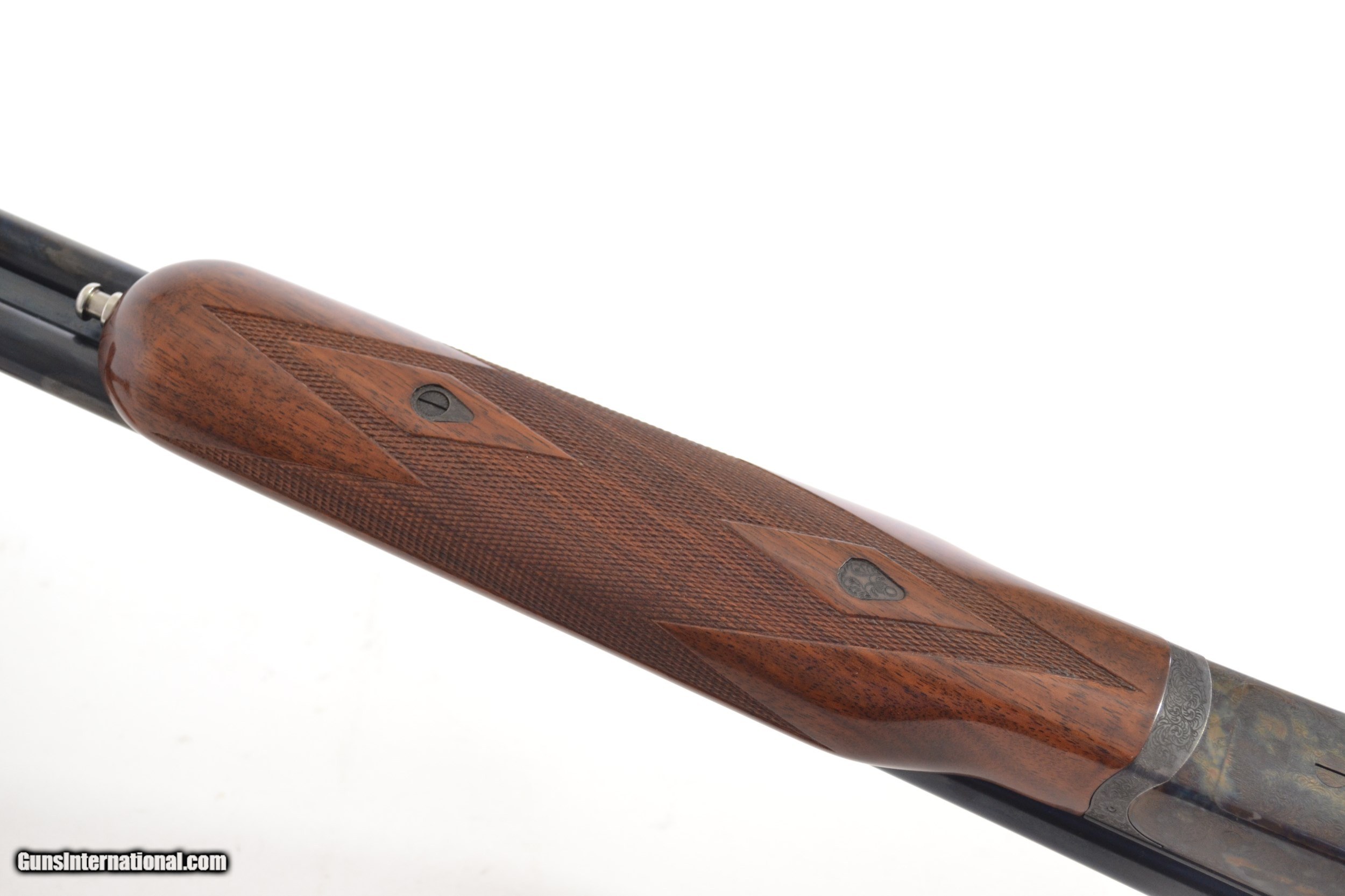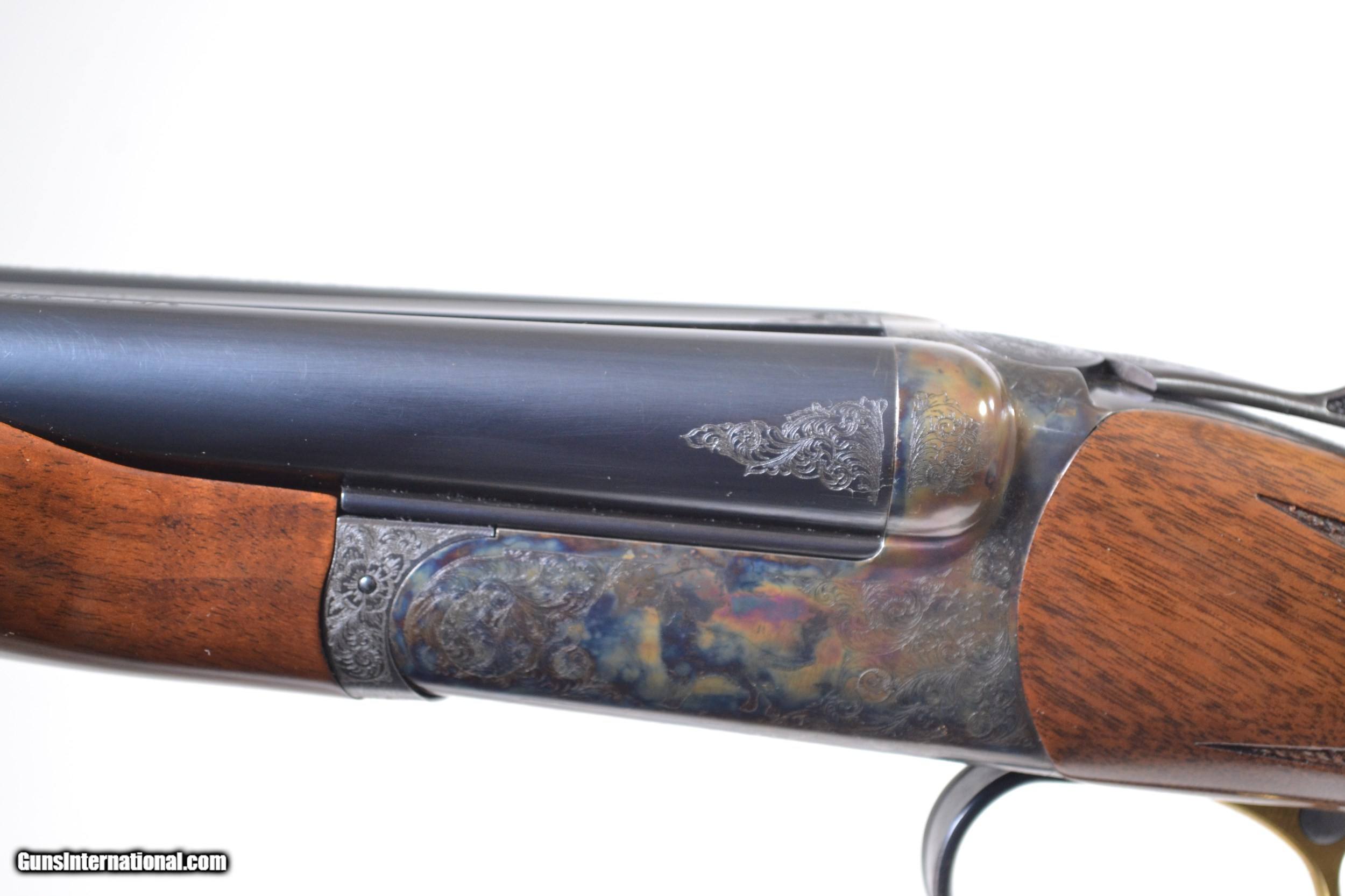 Description: RBL 28 - .28ga., 30” barrels, Skeet/IC choked, beautiful 3x feathercrotch American walnut long tang metal capped pistol grip stock, beavertail forend, factory butt plate, single selective trigger, automatic ejectors, automatic safety, Truoil finish, solid rib, beautifully engraved pointer & setter scenes over a bone and charcoal case colored receiver. 100% new and unfired, available for immediate delivery. Base - $4999, 3x Wood - $350, beavertail - $175, SST - $175, S&H - $50. 6lbs. 2 oz. 14 ¾” X 1 ½” X 2 3/8” $6,249.00 SOLD |
