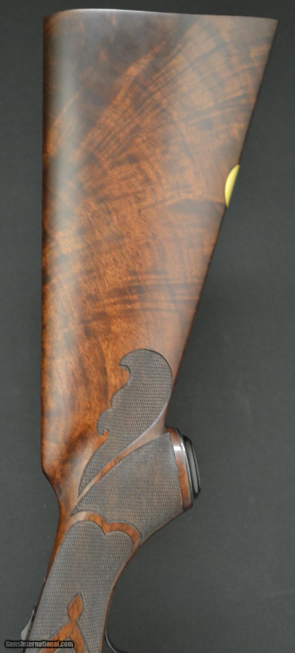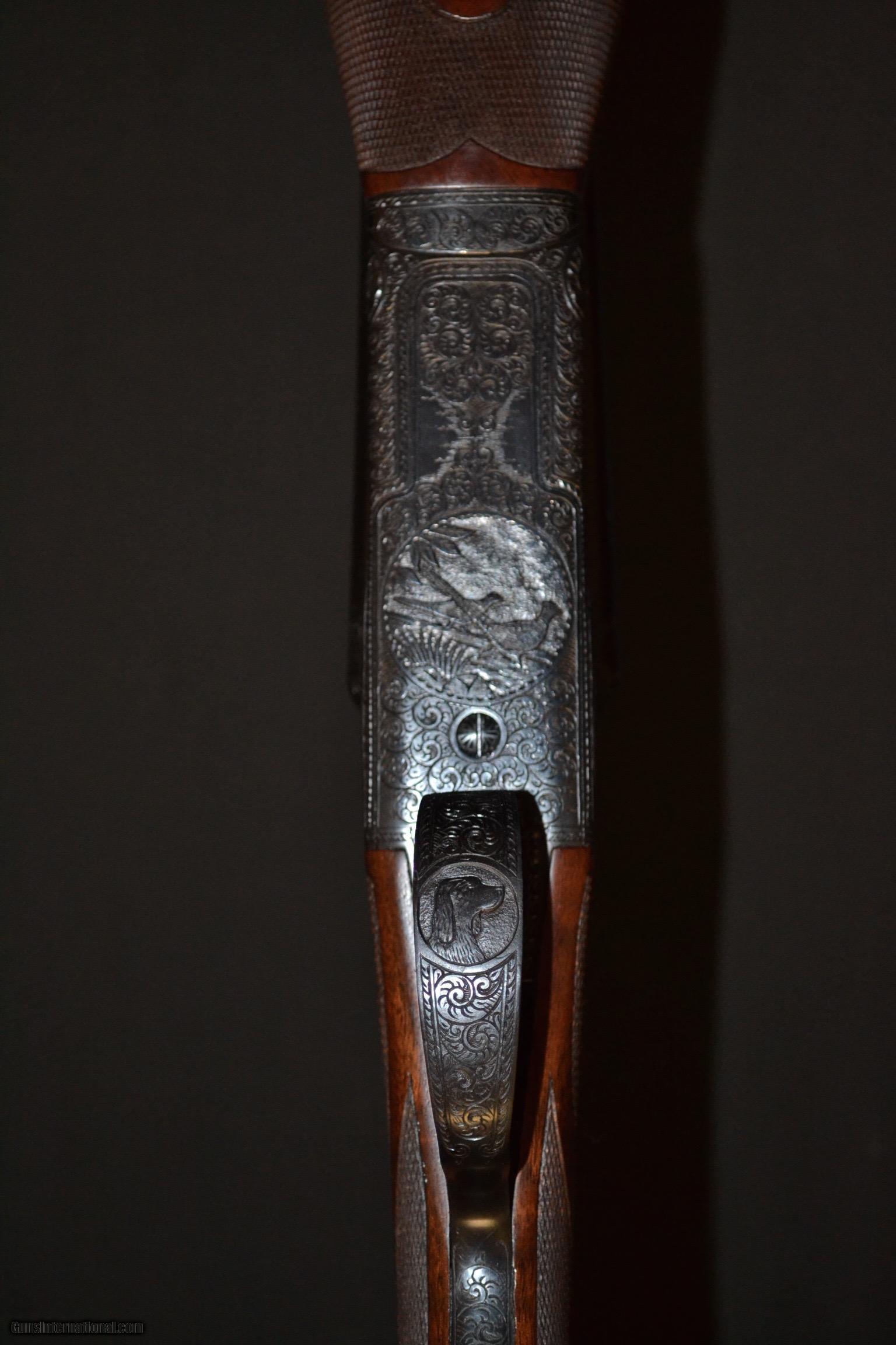 Description: Winchester Model 21 Factory letter pigeon grade #6 engraving. 20ga. 28” barrels choked WS1/WS2. Fantastic, super rare factory #6 Pigeon Grade 20ga. Factory Vent rib, deep gorgeous engraving. Rib is marked custom built Pigeon Grade. Capped pistol grip, checkered butt, an unbelievable 3 dimensional piece of old grove black American feather crotc. Unbelievable no excuse, 100% new gun. Inventory # 29385 LOP 14” Price $28,995 SOLD |