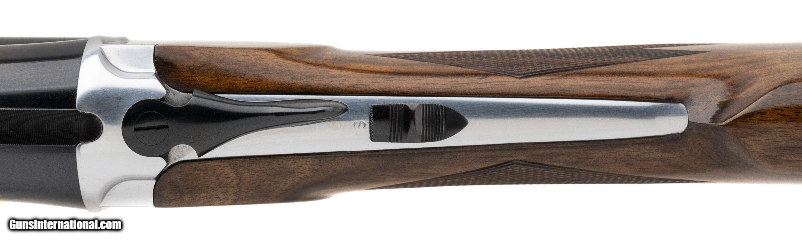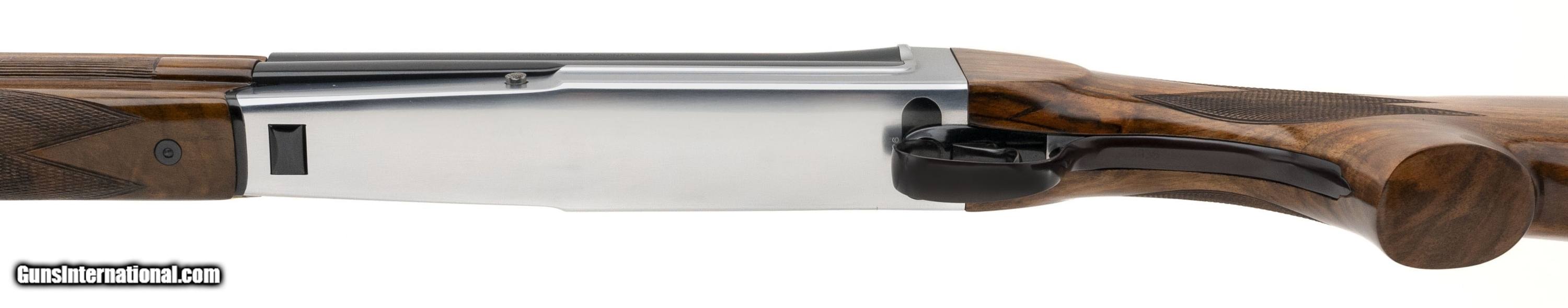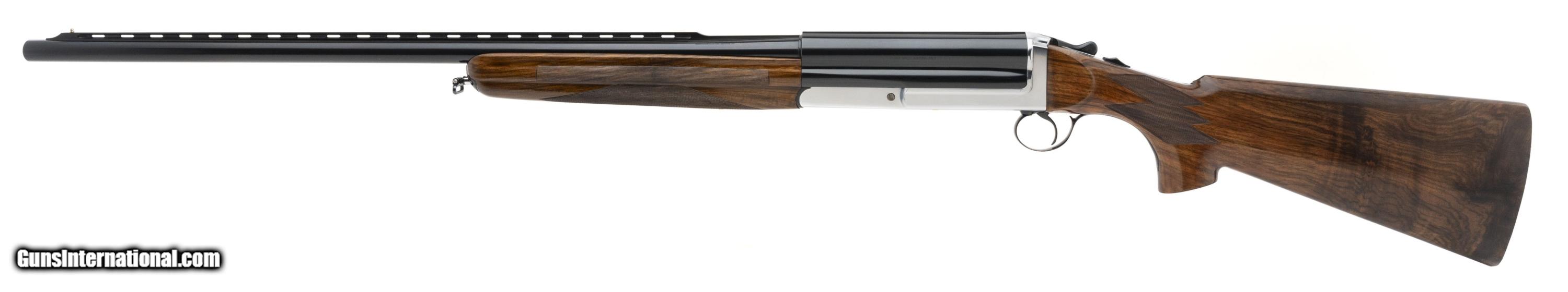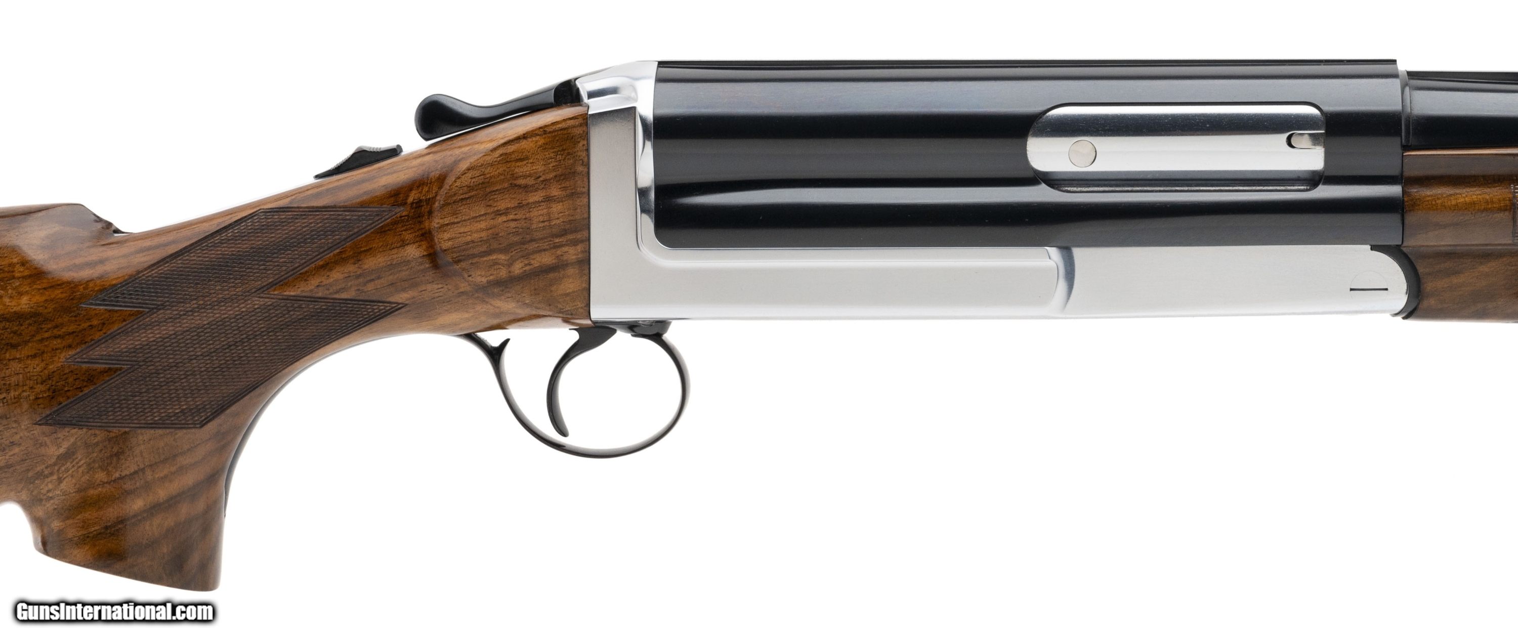 Description: "SN: 9936. Modern production break open semi auto 12 gauge with a 28"" vent rib barrel with single bead sight, 3"" chamber and removable choke. Magazine has a total capacity of 8 and can be reduced to 5 or 3 rounds as it currently is. High polished receiver with a blued barrel and nicely figured walnut furniture with an oil finish in very good plus condition with only some very light handling marks on the wood. 15 1/8"" LOP to a checkered butt, 1 1/2"" to 2 1/4"" drop and a total weight of 8 lbs 13 oz. Comes with factory case and extra chokes. SOLD |